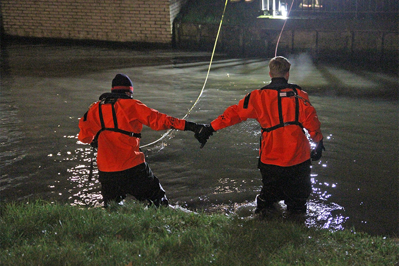 De brandweer kwam met spoed ter plaatse. Twee brandweermannen in waadpakken hebben in de sloot enkele zoekslagen gemaakt, op zoek naar een slachtoffer. Nadat de eigenaresse van het fietsje in kennis was gesteld gaf zij aan dat er niemand in het water lag, kort daarna werd de zoekactie gestaakt.