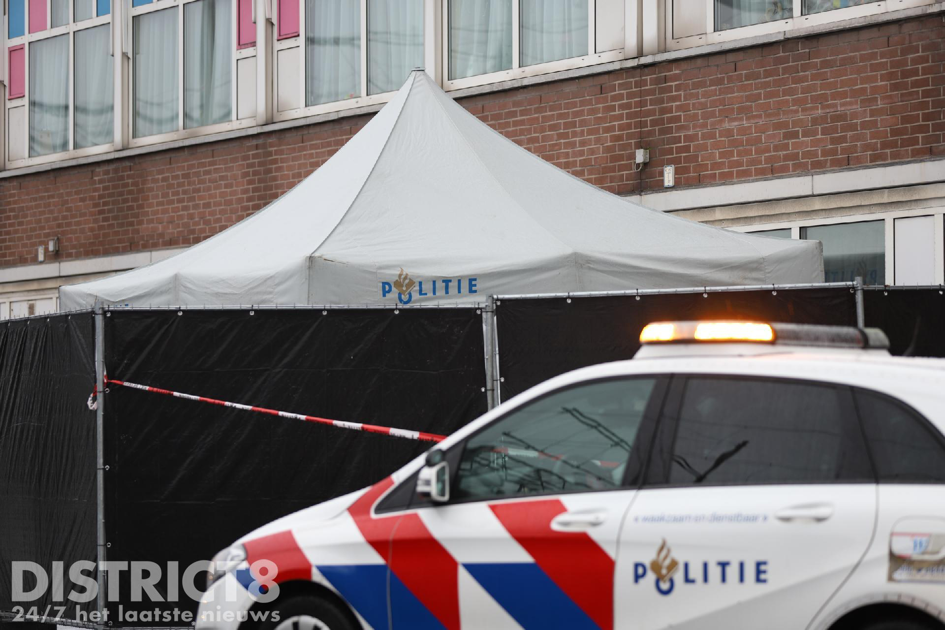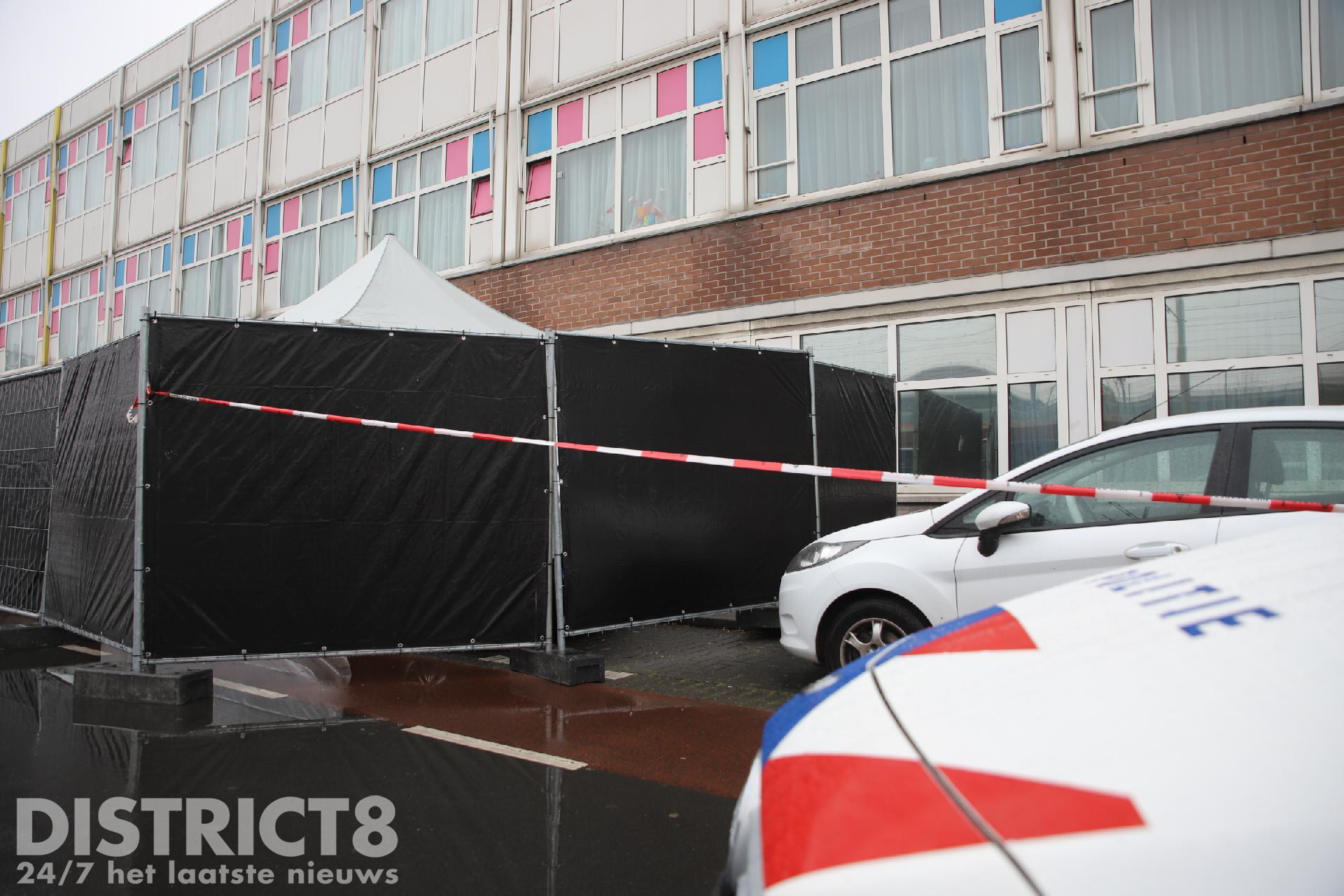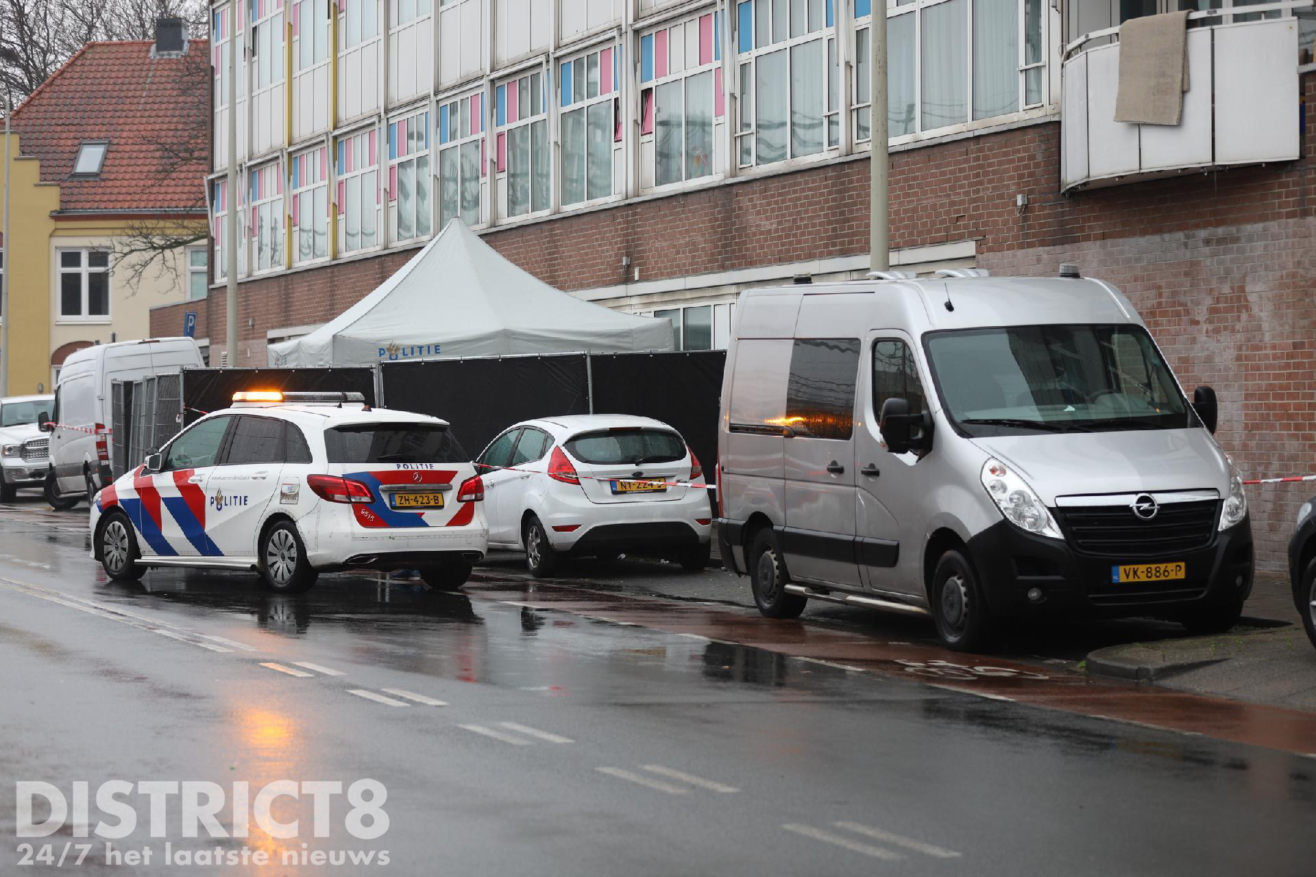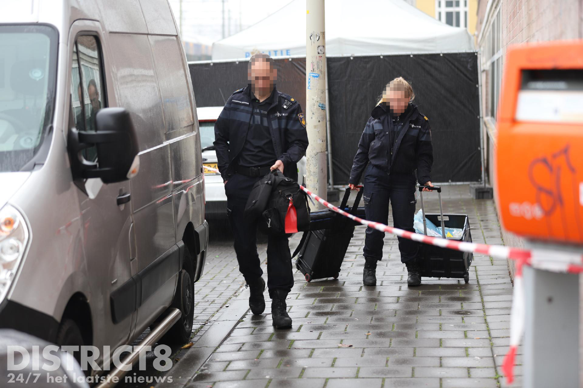Op de stoep is een tent geplaatst om sporen veilig te stellen, medewerkers van de FO (Forensische Opsporing) doen ter plaatse onderzoek. De politie laten weten dat de oorzaak van de val nog niet bekend is.
