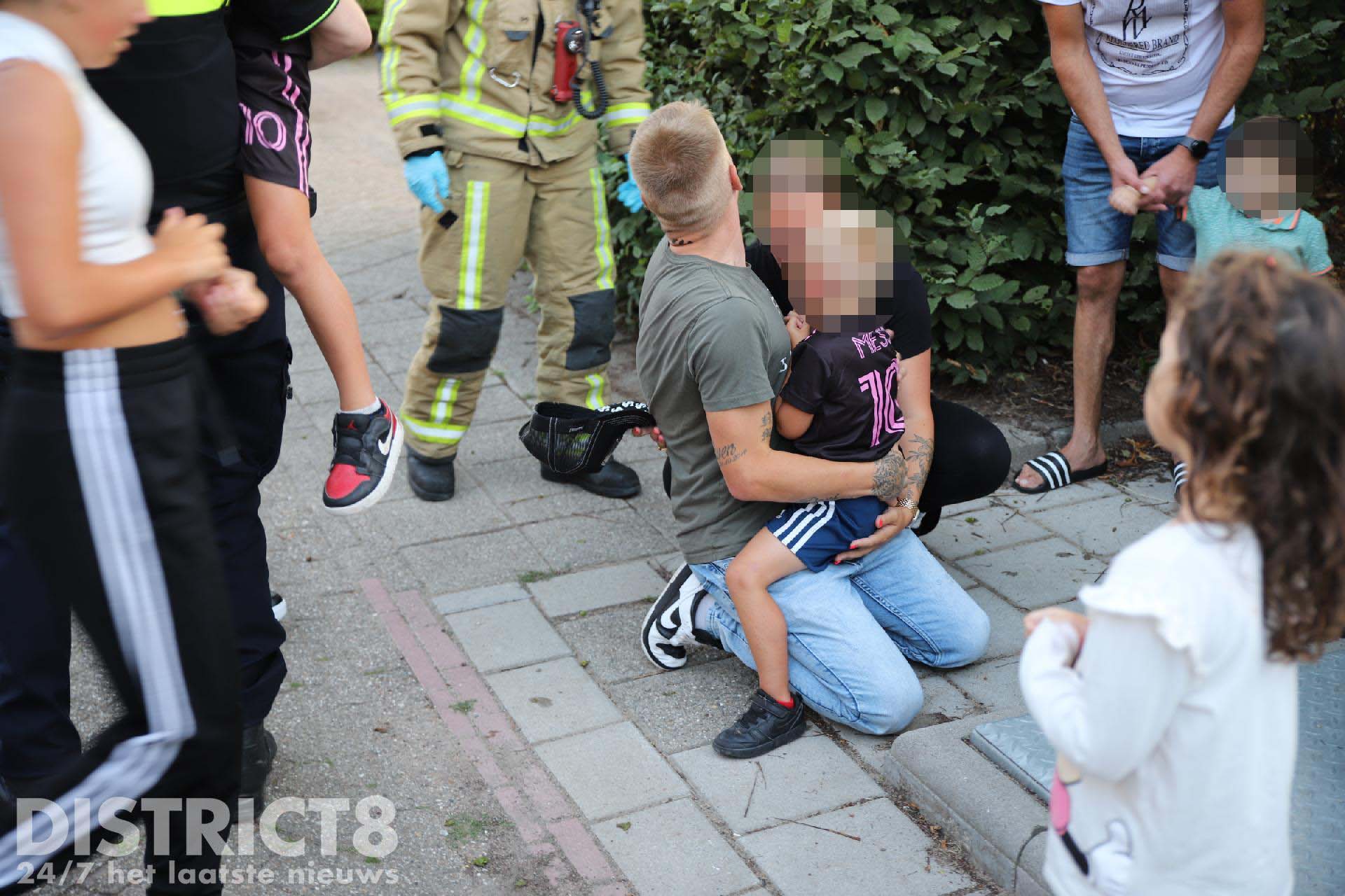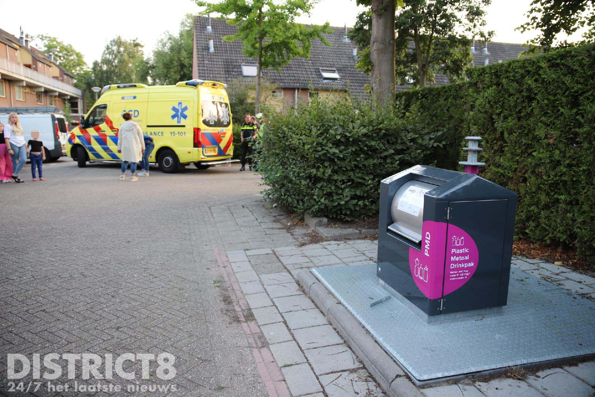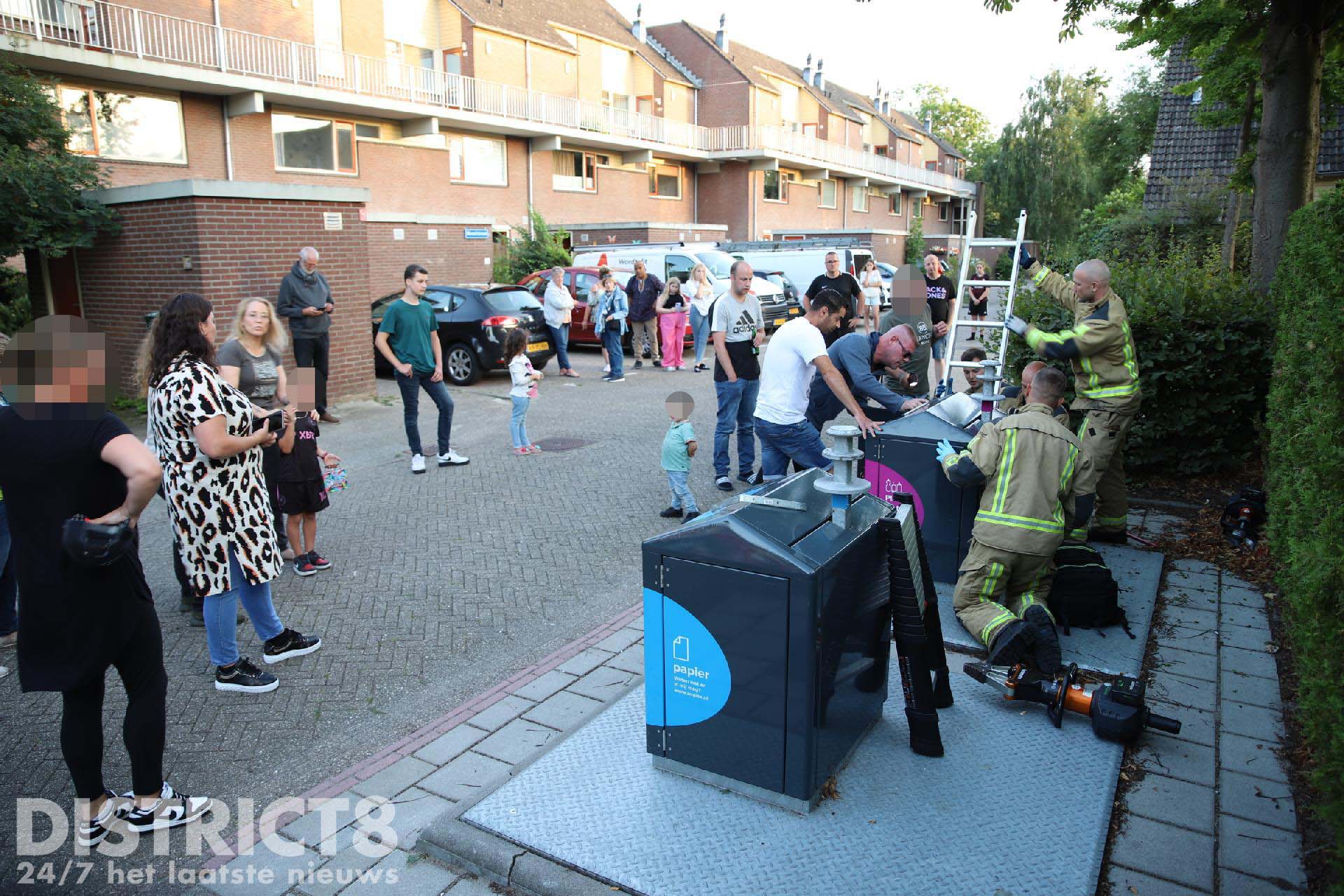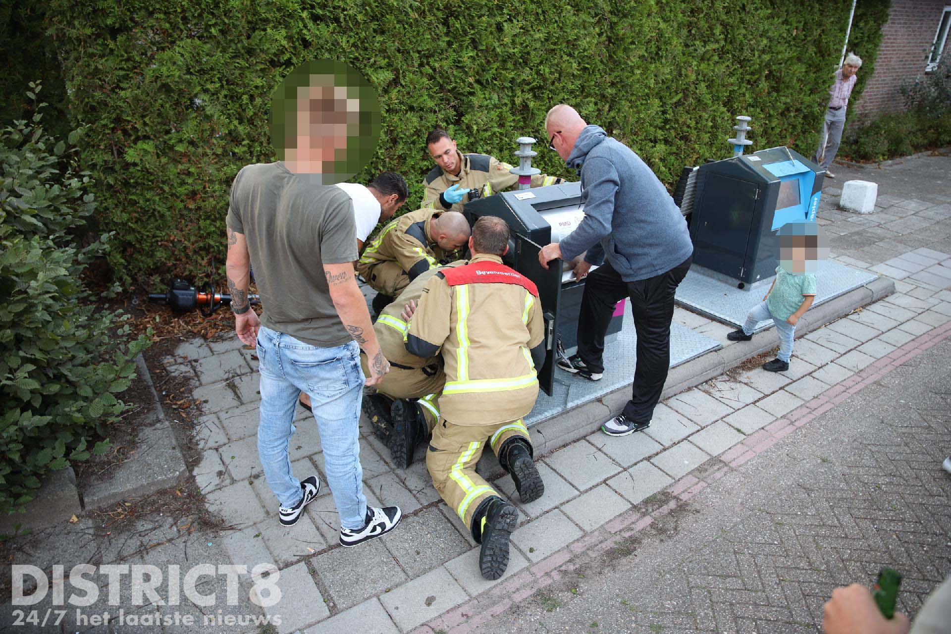 De brandweer heeft het kindje uit de container weten te halen en deze werd even onderzocht in de ambulance. Wonder boven wonder bleek een ritje naar het ziekenhuis niet noodzakelijk.