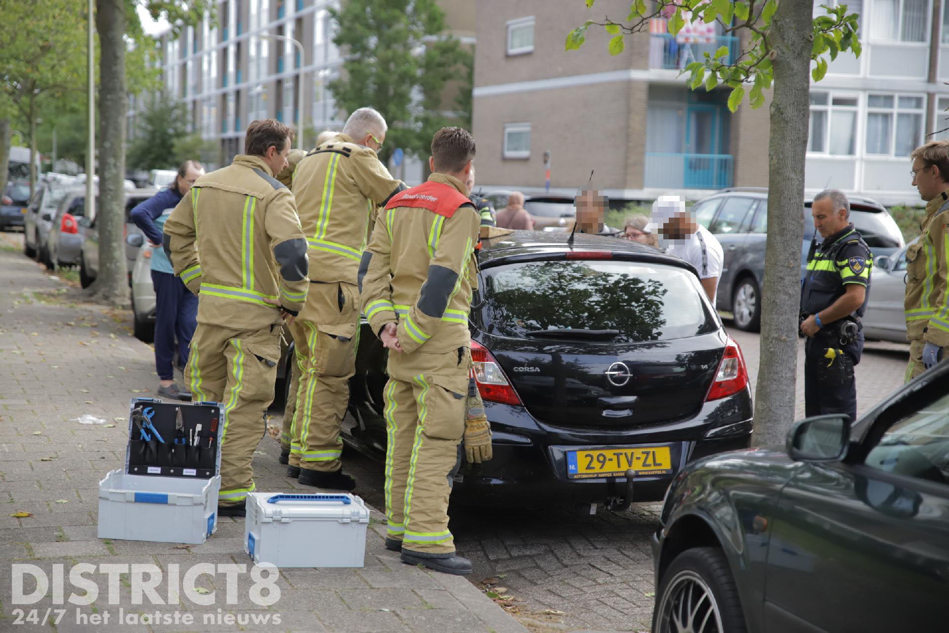De politie heeft geprobeerd de auto te openen, maar nadat dit niet lukte is de brandweer ingeschakeld.