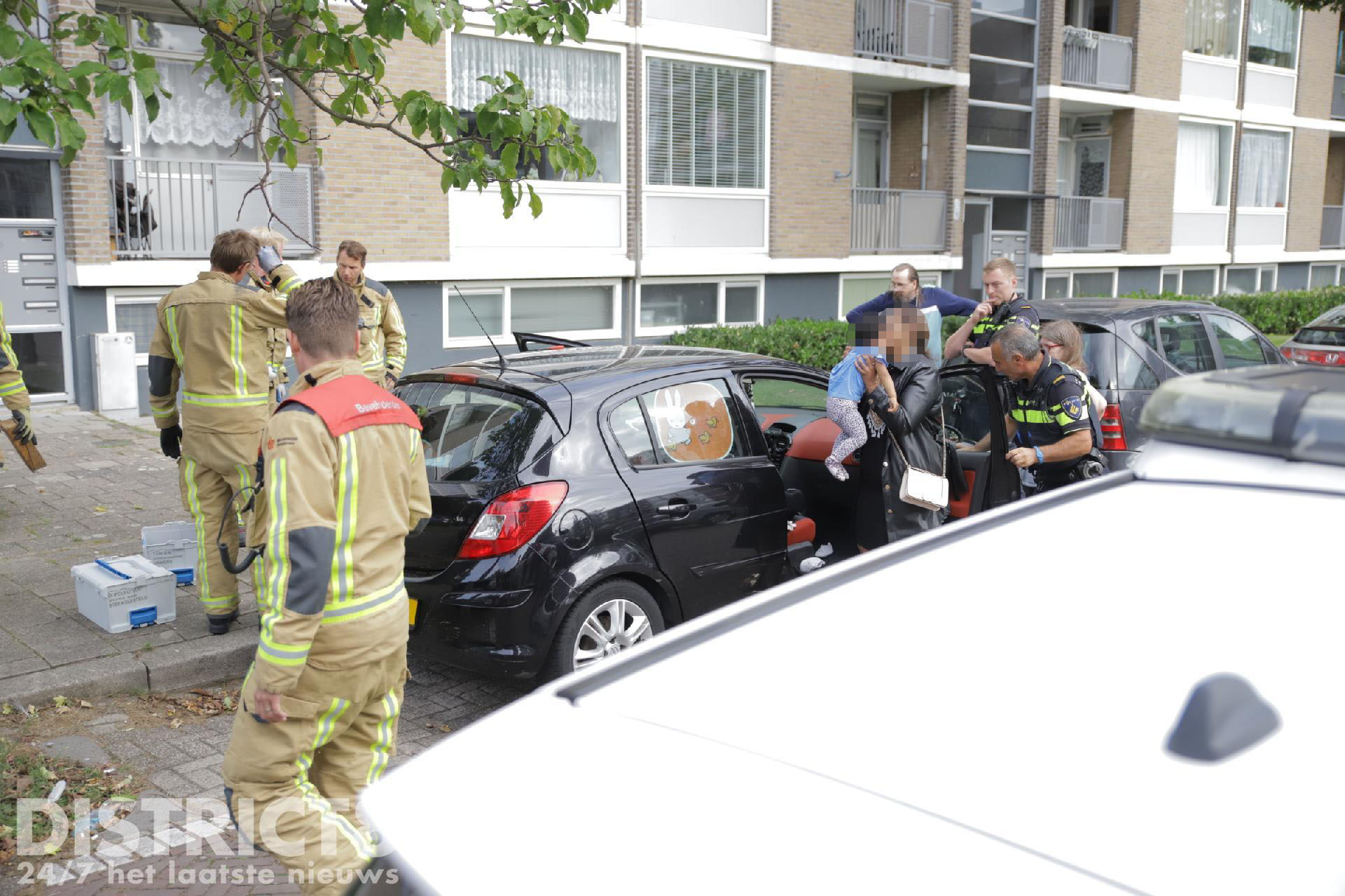 Door nog onbekende oorzaak ging een geparkeerde auto op slot. Dit was nog niet zo ernstig, alleen bleek het kindje van de ouders nog in de auto te zitten.