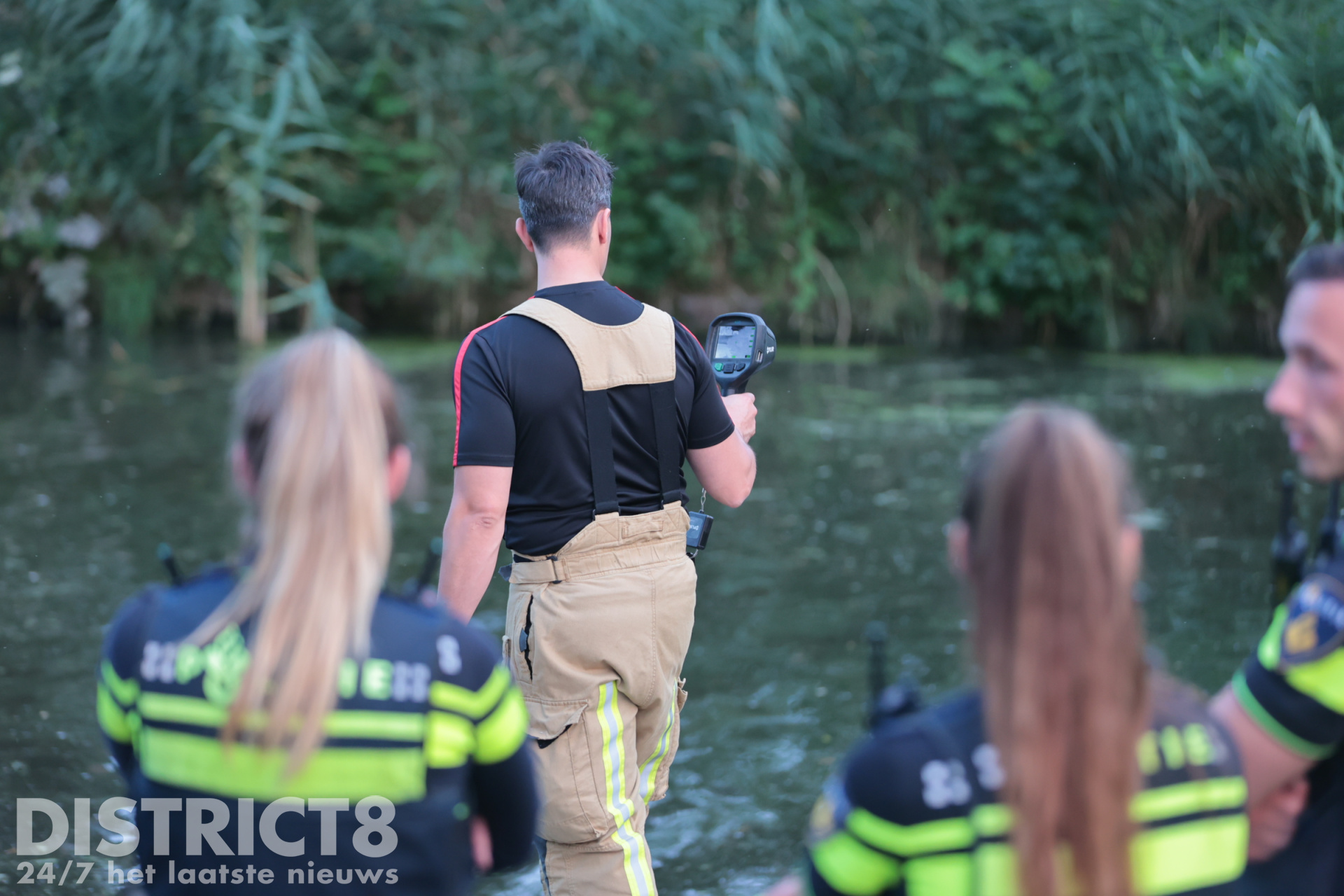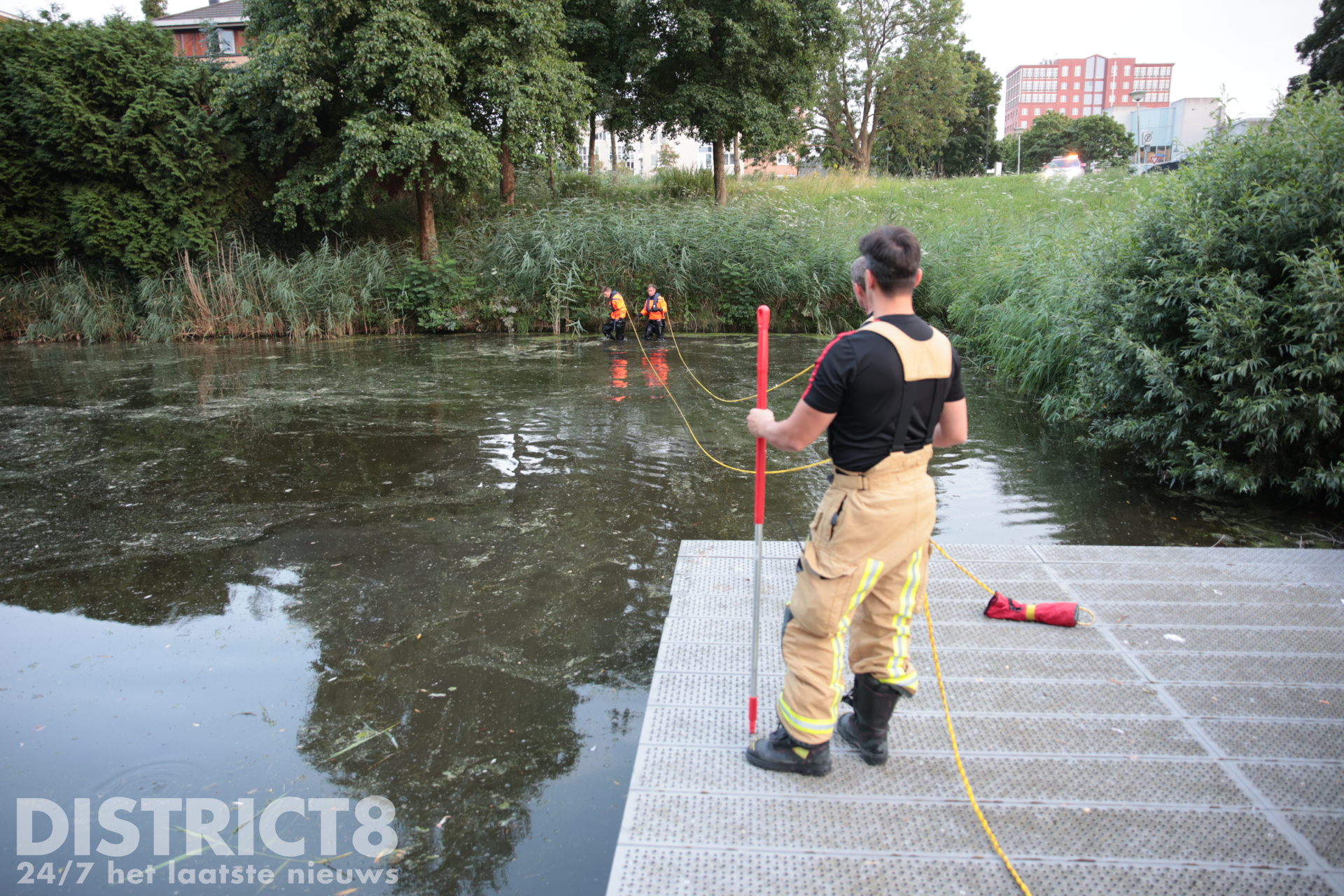 De bemanning van de ter plaatse gekomen tankautospuit is in waadpakken het water ingegaan om zoekslagen te maken. Ook het duikteam van kazerne Centrum is ter plaatse gekomen en heeft met een duiker het water doorzocht. Een brandweerman is ondertussen met behulp van een warmtebeeldcamera het water aan het afzoeken naar zogeheten hittebronnen.