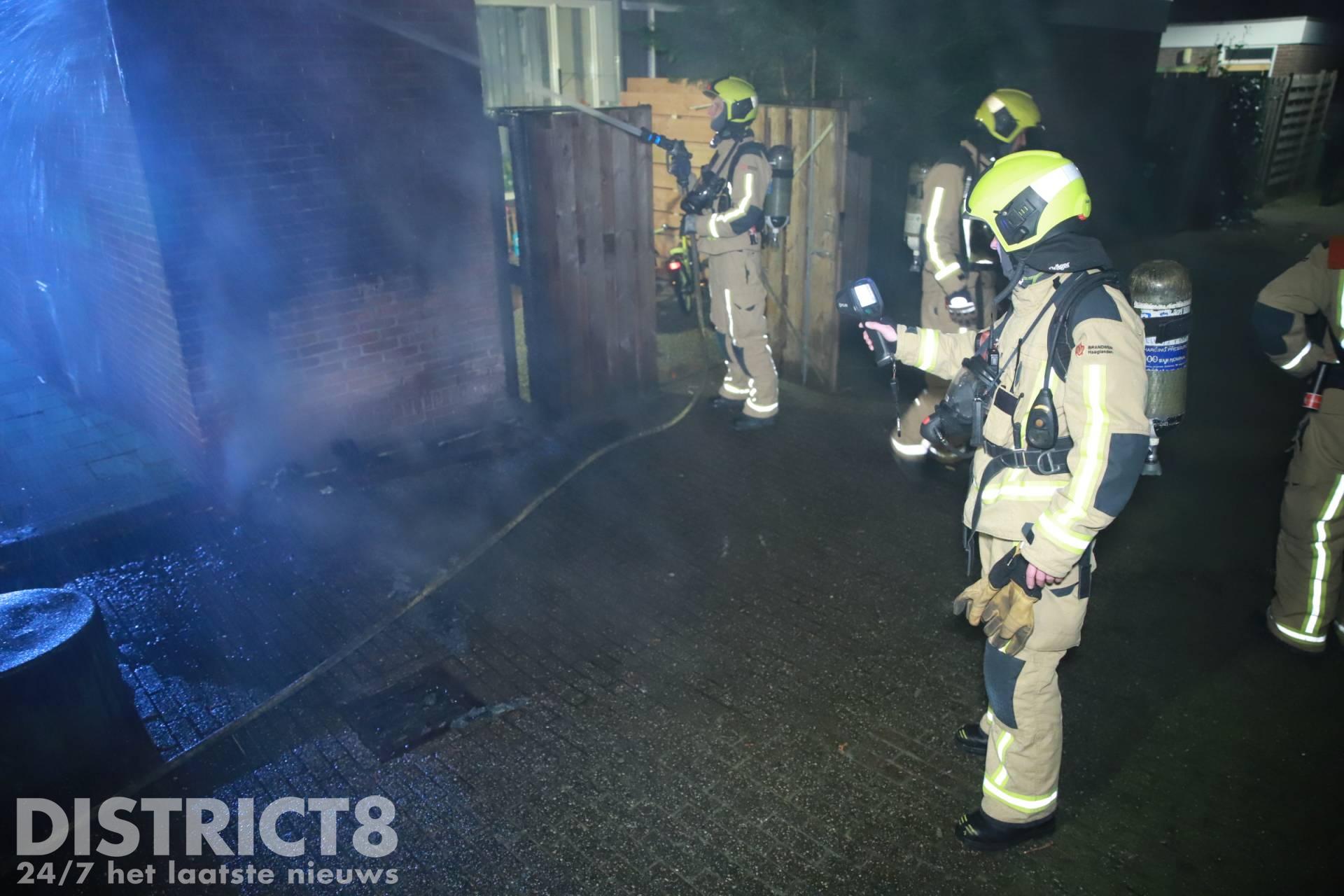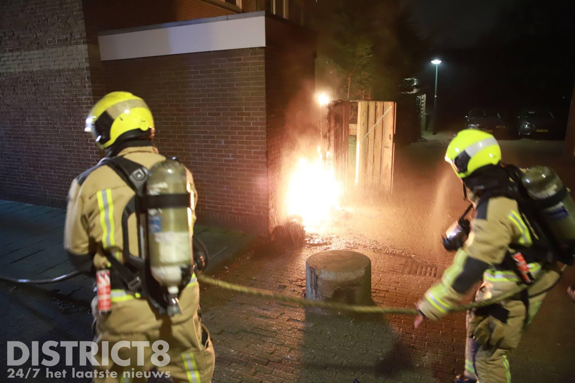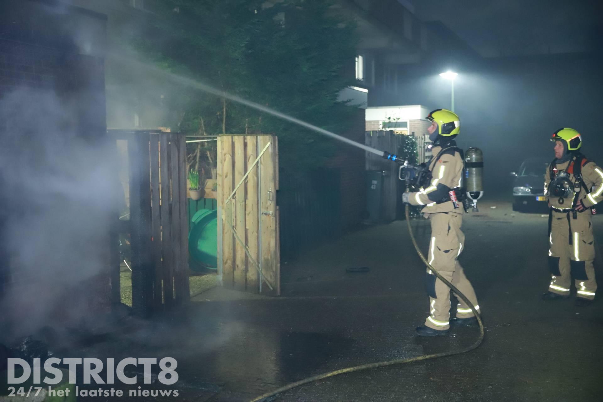 De kliko’s stonden tegen een schutting en een schuurtje aan, welke daardoor beide vlam vatte. De brandweer was snel ter plaatse. Ze konden voorkomen dat het vuur oversloeg naar binnen.