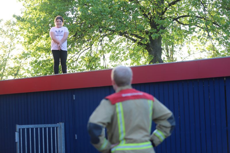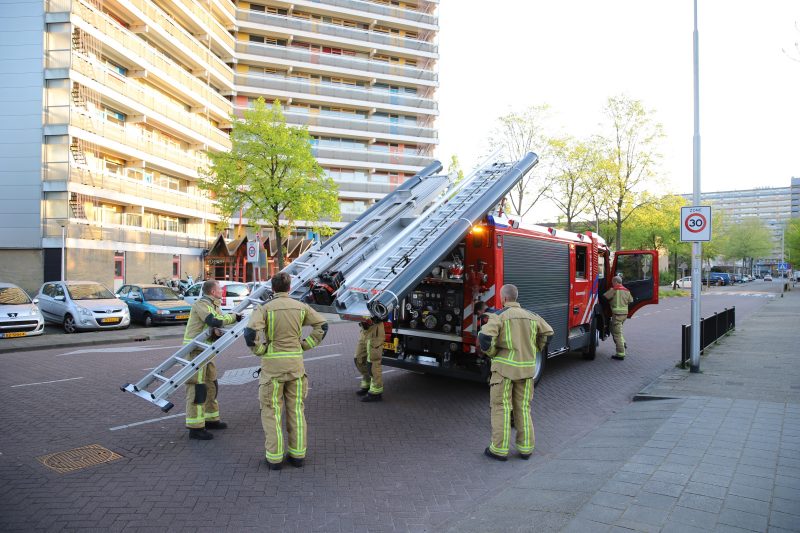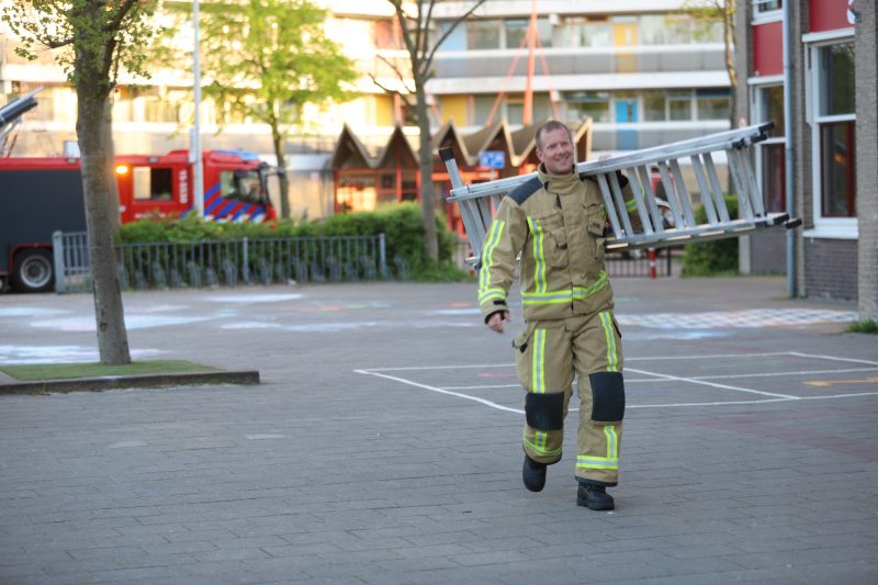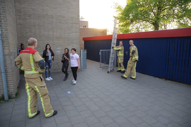 De brandweer kwam zonder spoed ter plaatse en heeft met een ladder het meisje van de fietsenstalling gehaald.
