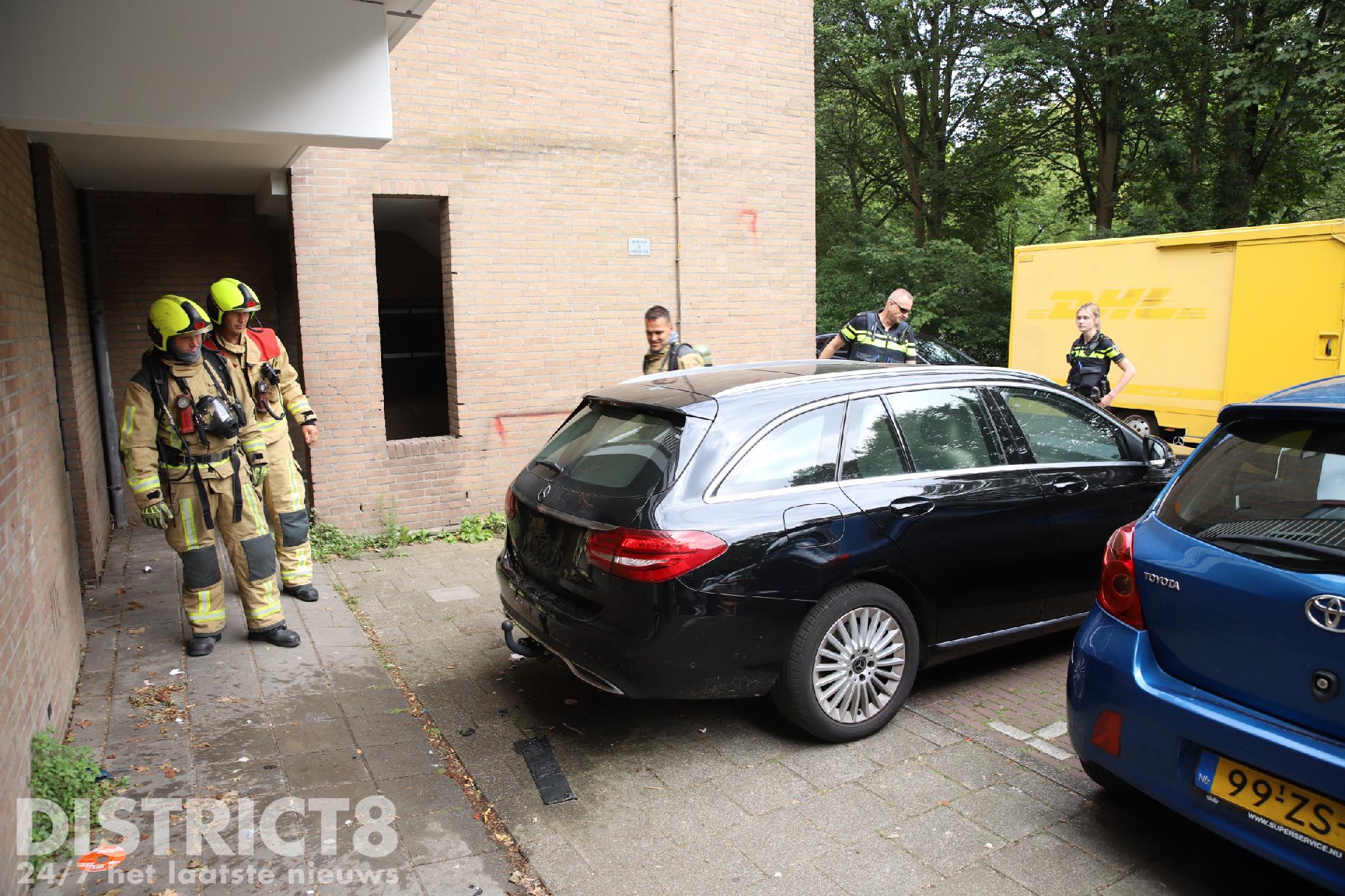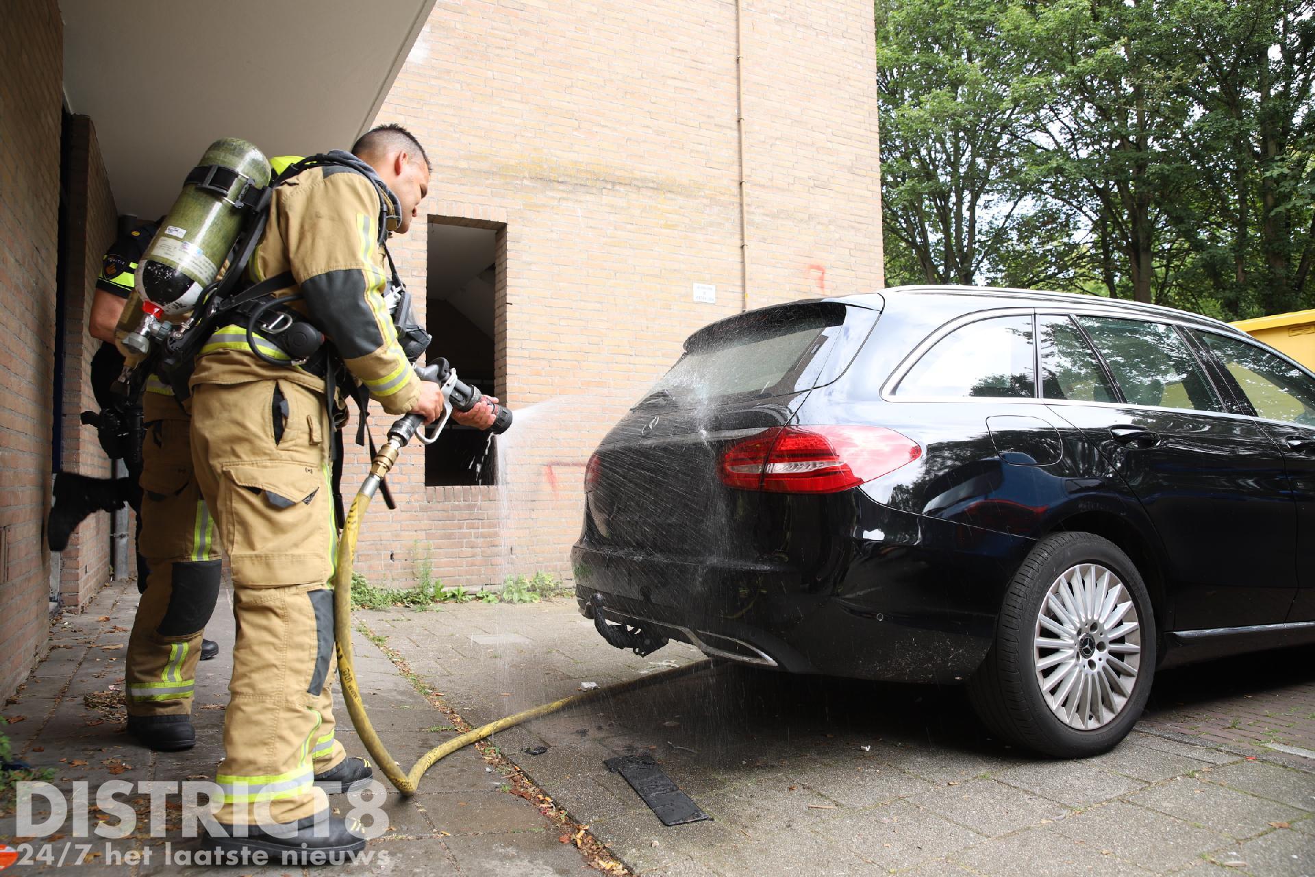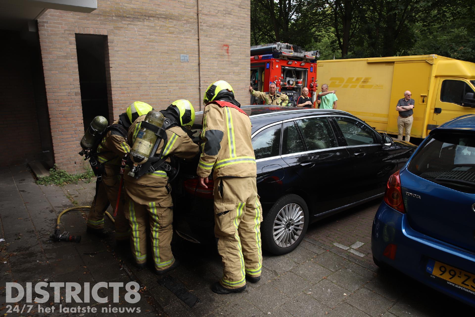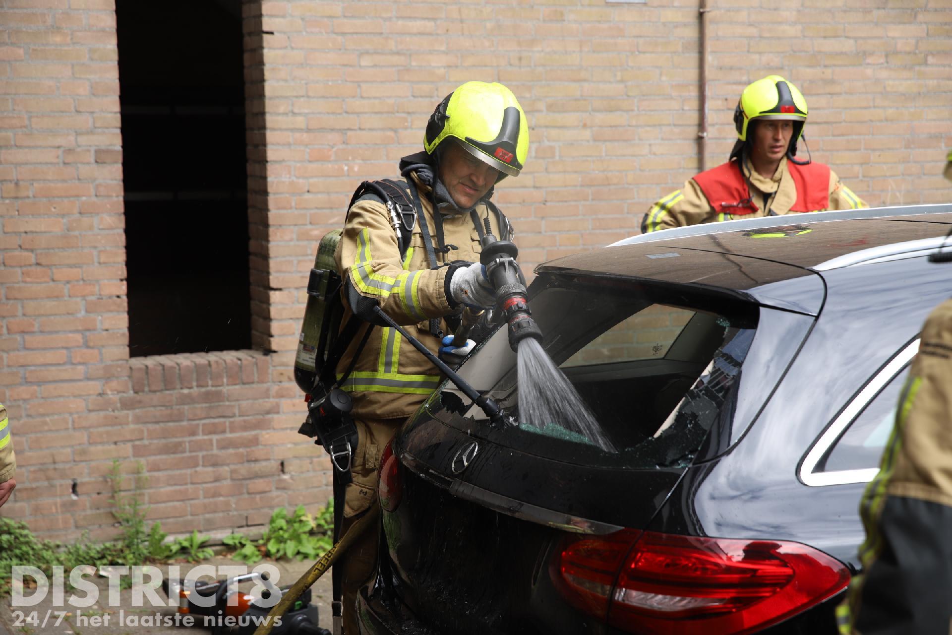 Toen de brandweer ter plaatse kwam, werd duidelijk dat de brand nog niet volledig geblust was. Omdat de eigenaar van de auto niet thuis was werd besloten om de achterruit van de auto eruit te halen. Hierdoor kon de brandweer het vuur volledig blussen.