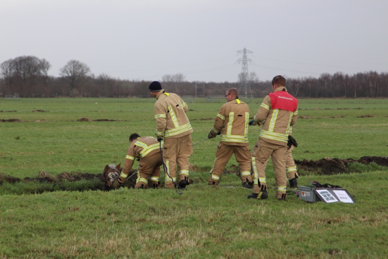 Schiedam – Zondagmiddag ontdekte omstanders dat er aan de Harreweg een paard in de sloot terecht was gekomen. Het dier kon er niet zelfstandig uitkomen. De hulp van de brandweer werd ingeroepen. Met mankracht werd de viervoeter uiteindelijk uit de modderige sloot getrokken.