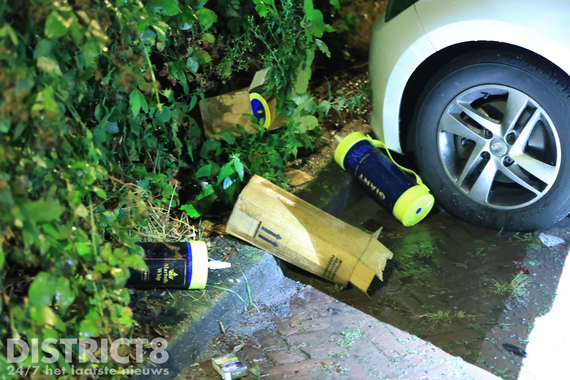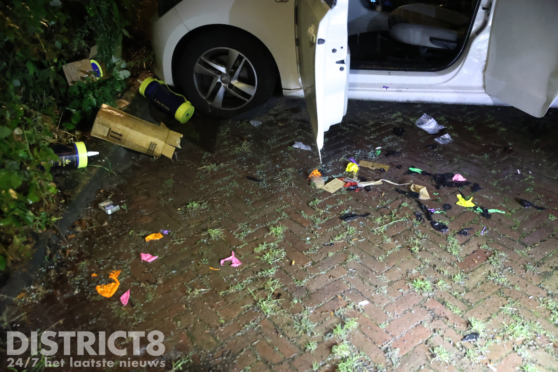 De politie ging in de Coevordenstraat in gesprek met de melder. Terwijl dit gesprek bezig was troffen agenten aan de achterzijde in de Boekelostraat twee heren aan in een auto. In de auto lagen meerdere flessen lachgas en ook ballonnen. Eén van de heren had tevens de zijruit van de auto vernield.