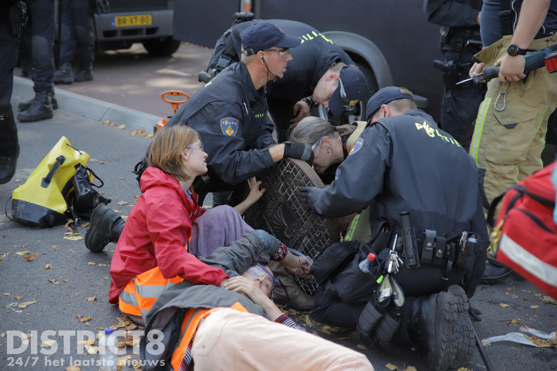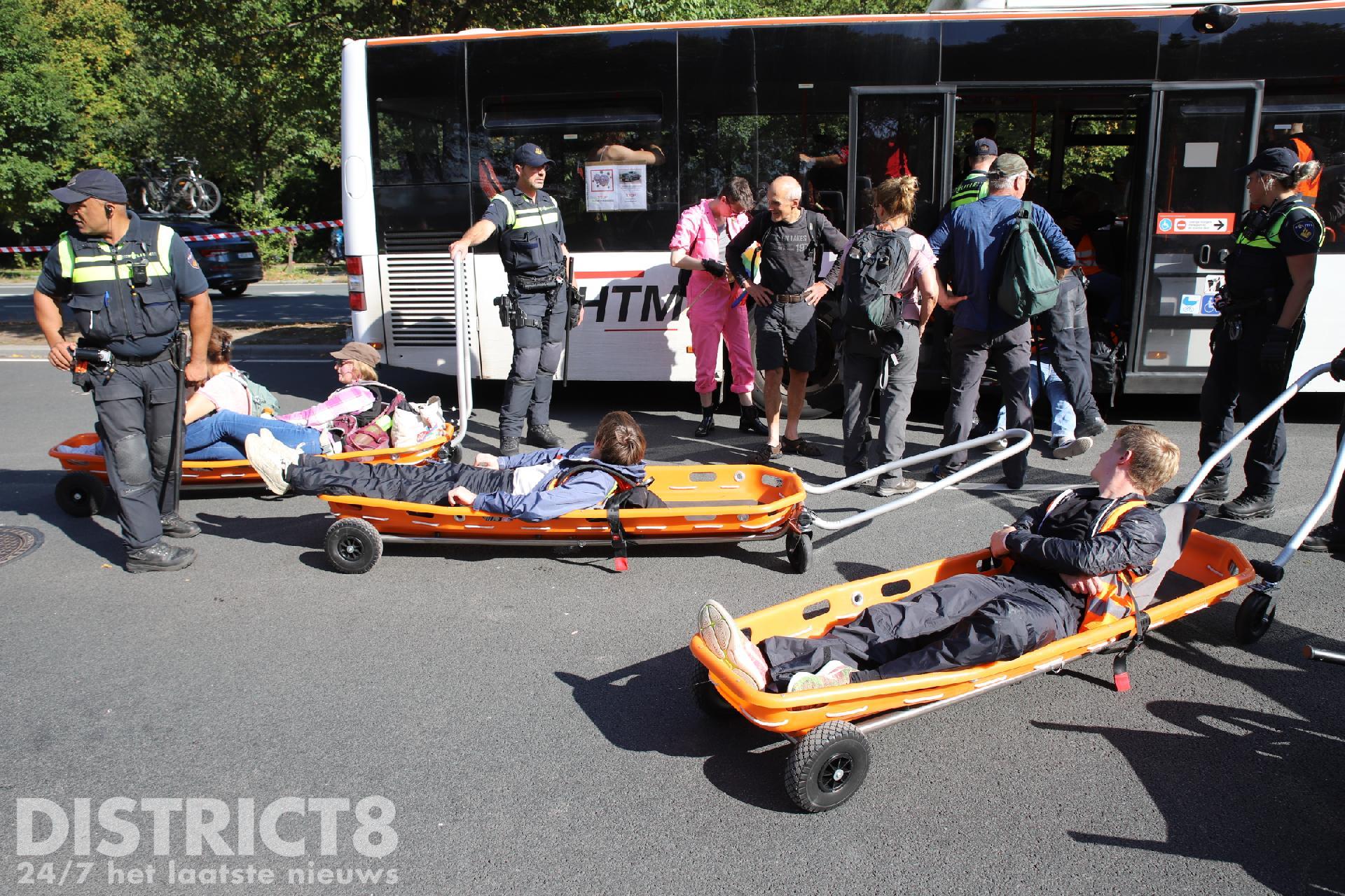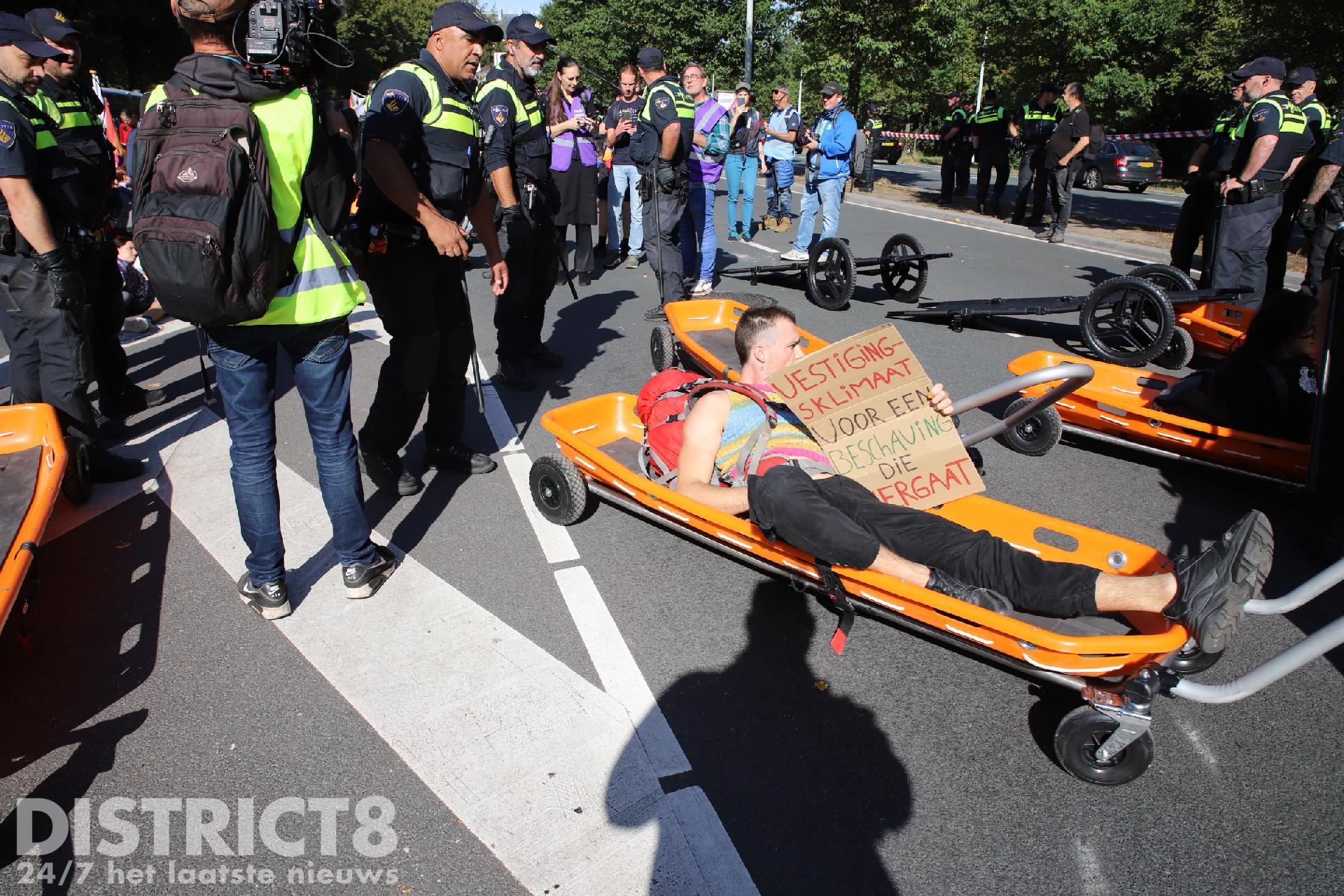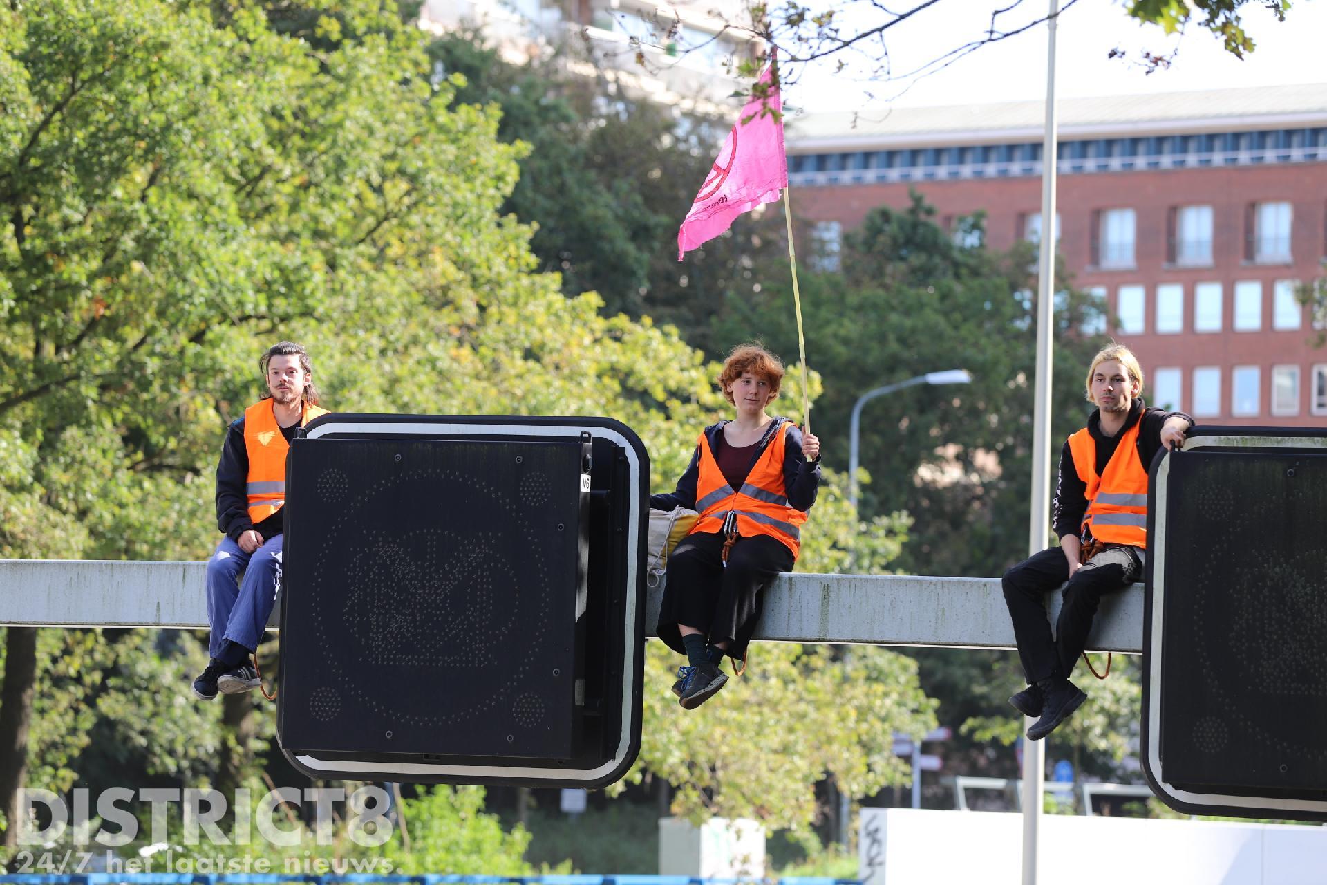 De brandweer heeft samen met de brandweer een viertal Duitse activisten van een portaal boven de A12 in Den Haag gehaald. De activisten klommen rond het 14:00 uur op het portaal net voor de tunnelbak stad uit. Nadat de activisten aan het begin van de Utrechtsebaan allemaal bevrijd waren kon de focus verplaats worden op de personen op het portaal.