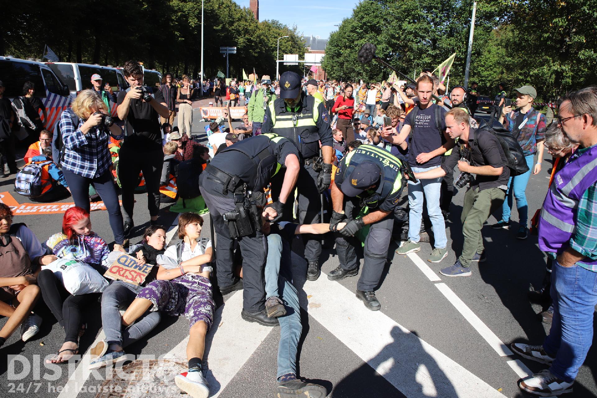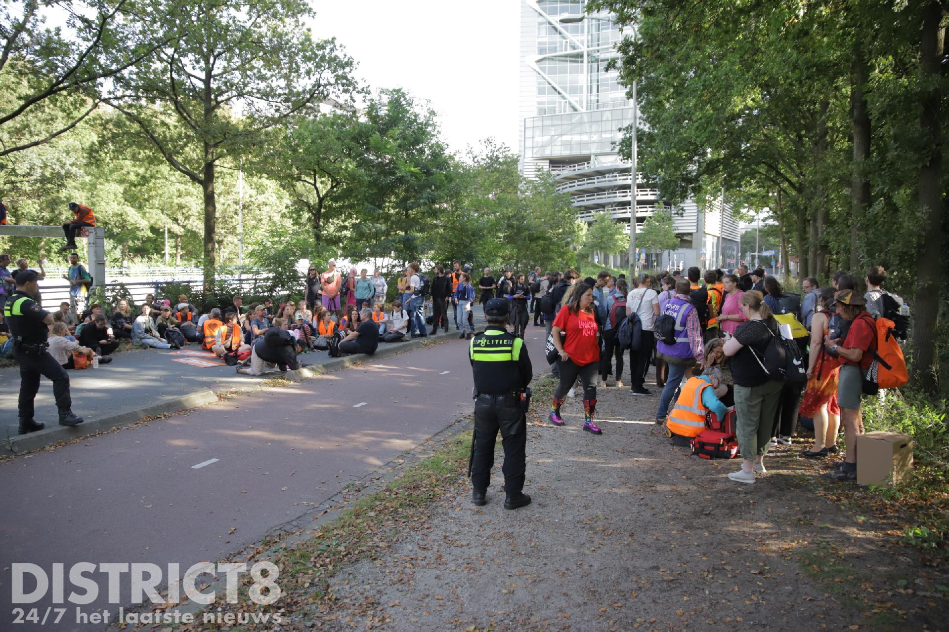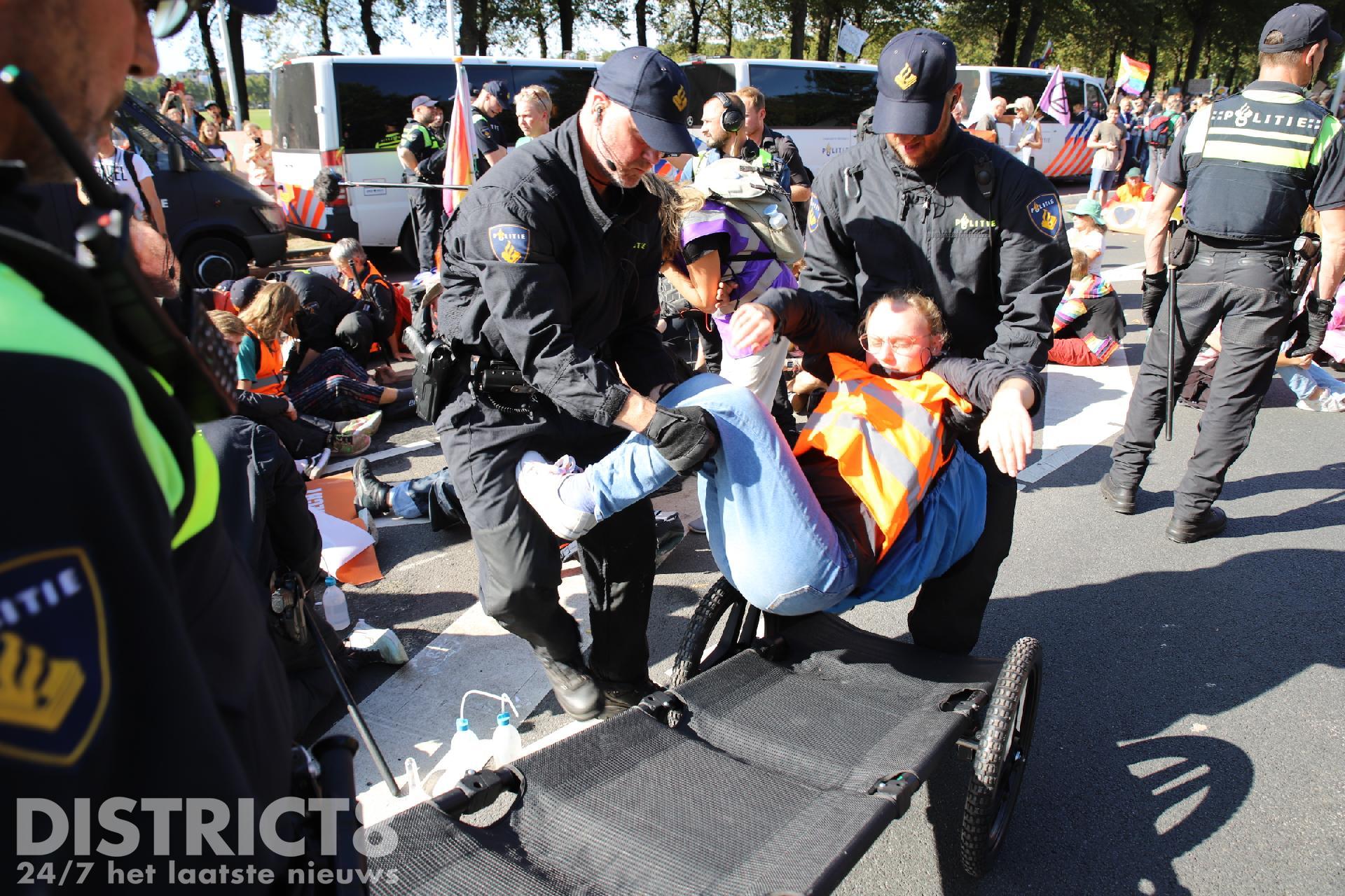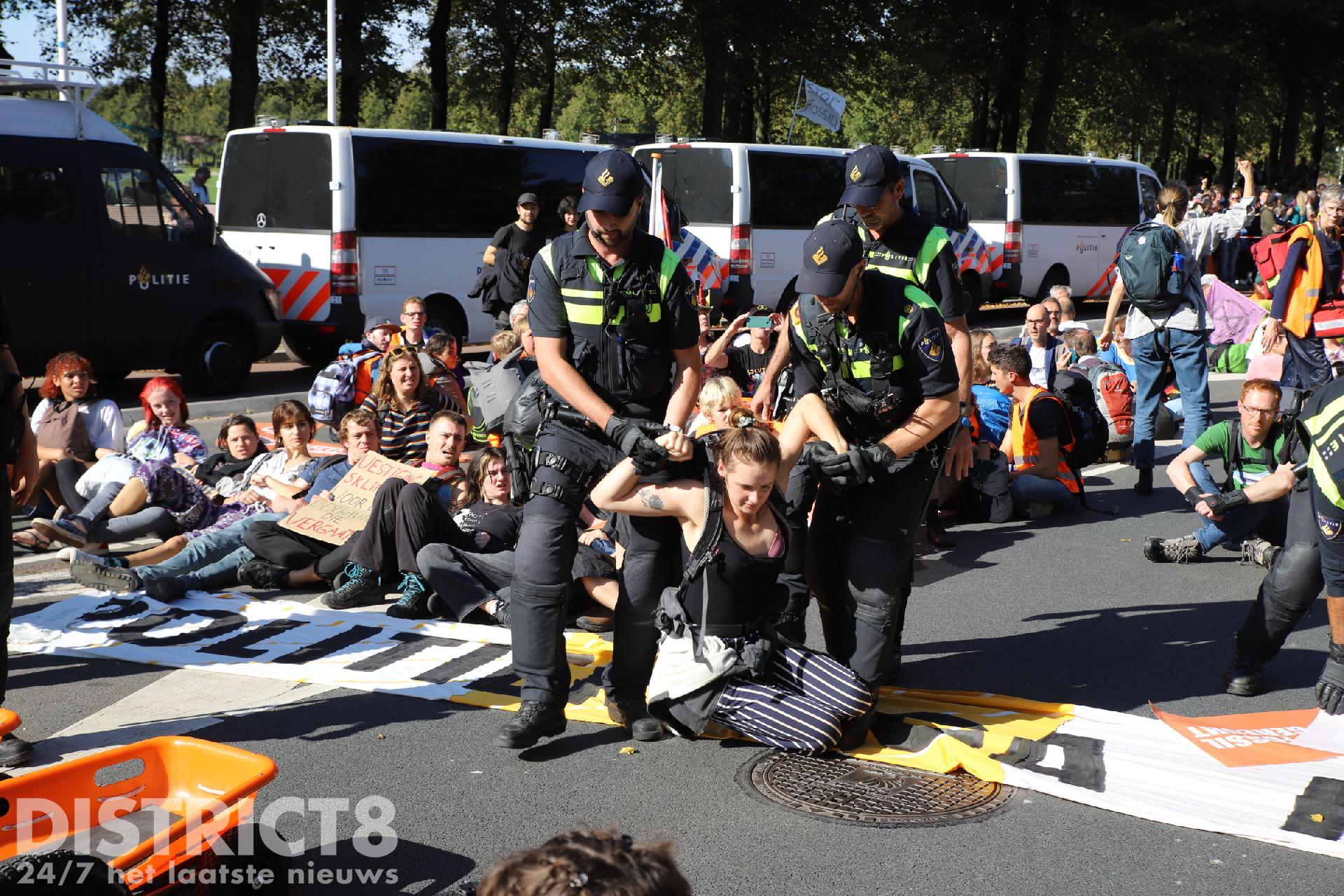 De brandweer heeft samen met de brandweer een viertal Duitse activisten van een portaal boven de A12 in Den Haag gehaald. De activisten klommen rond het 14:00 uur op het portaal net voor de tunnelbak stad uit. Nadat de activisten aan het begin van de Utrechtsebaan allemaal bevrijd waren kon de focus verplaats worden op de personen op het portaal.