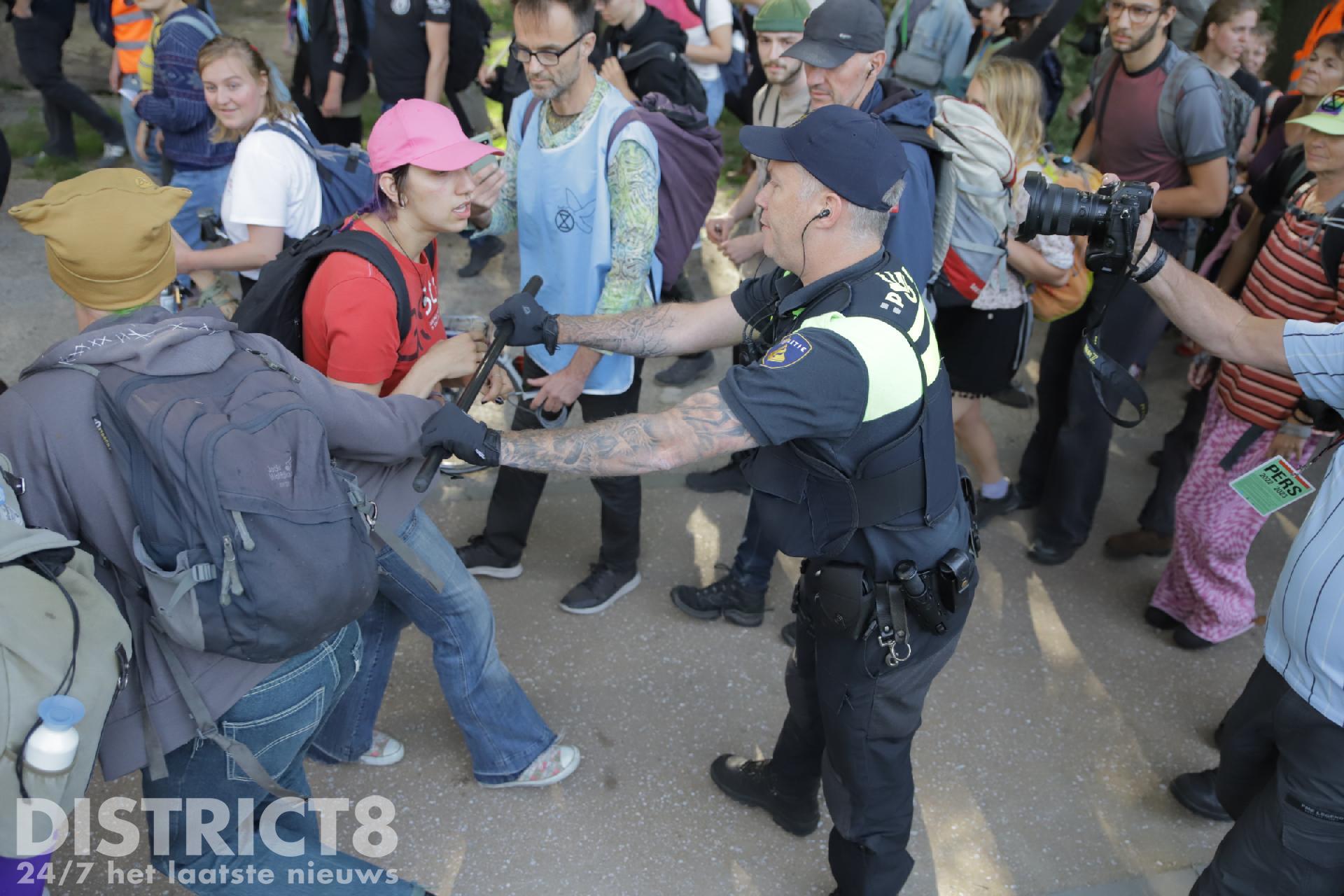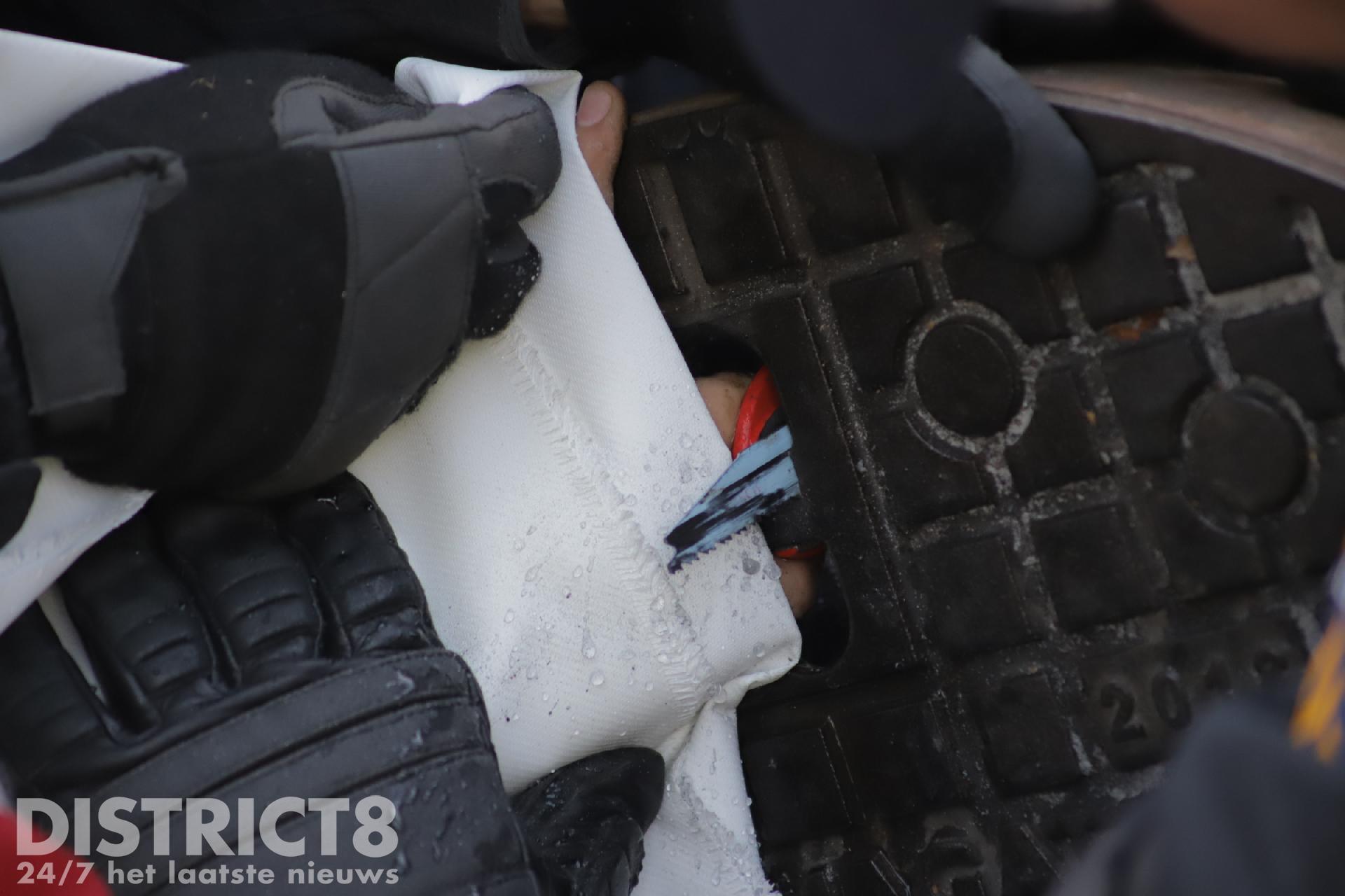 De brandweer is ter plaatse gevraagd om te helpen met het bevrijden van de demonstranten die zich vast hebben gemaakt in de putten, hiervoor worden de putten deels ontmanteld en gesloopt.