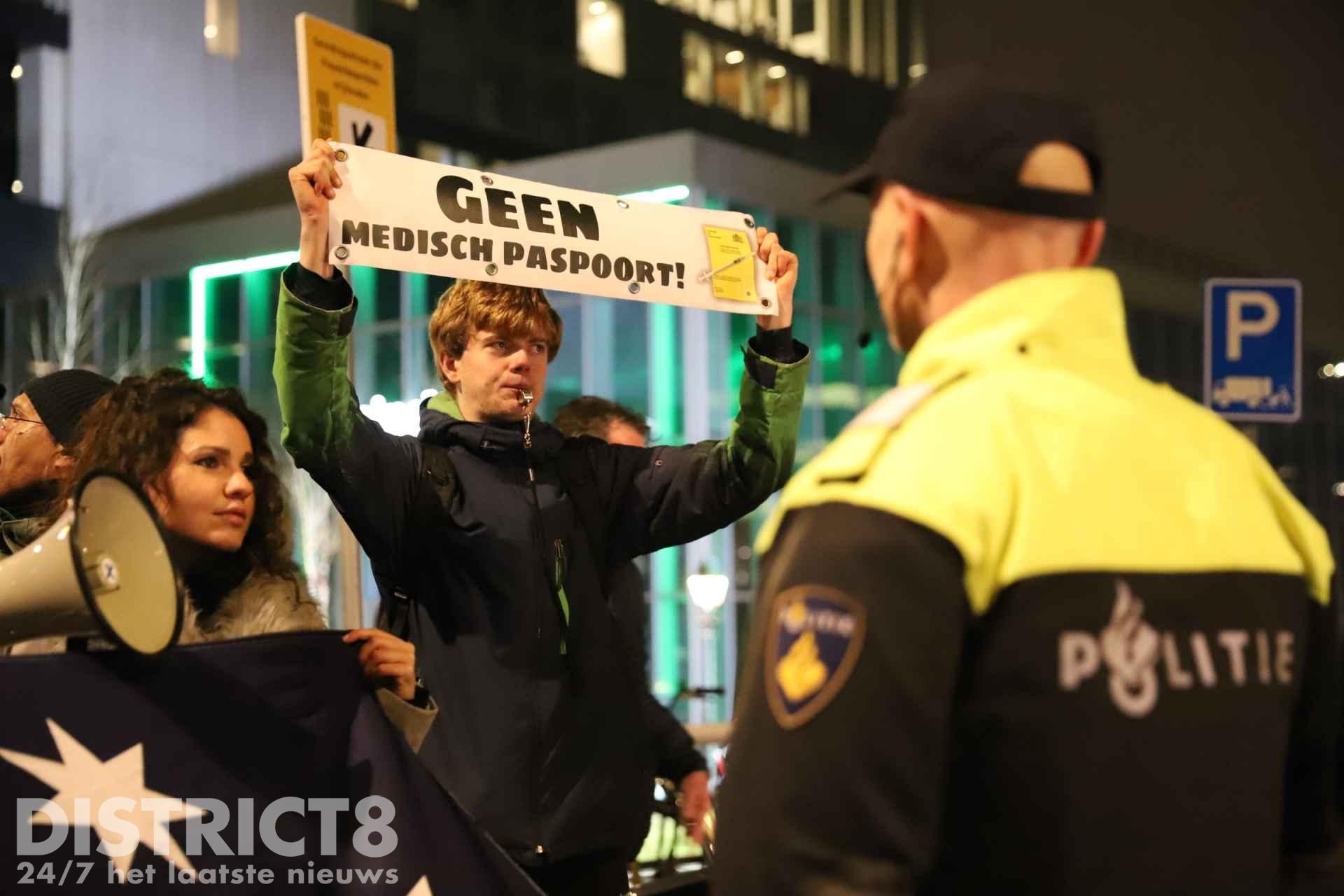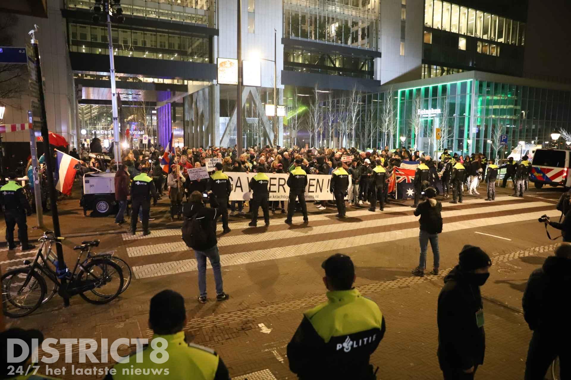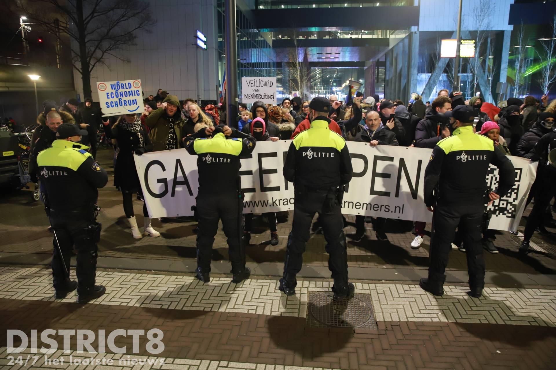 Den Haag – Op de Turfmarkt in Den Haag werd vanavond opnieuw gedemonstreerd tegen de corona maatregelen tijdens de persconferentie van het kabinet.