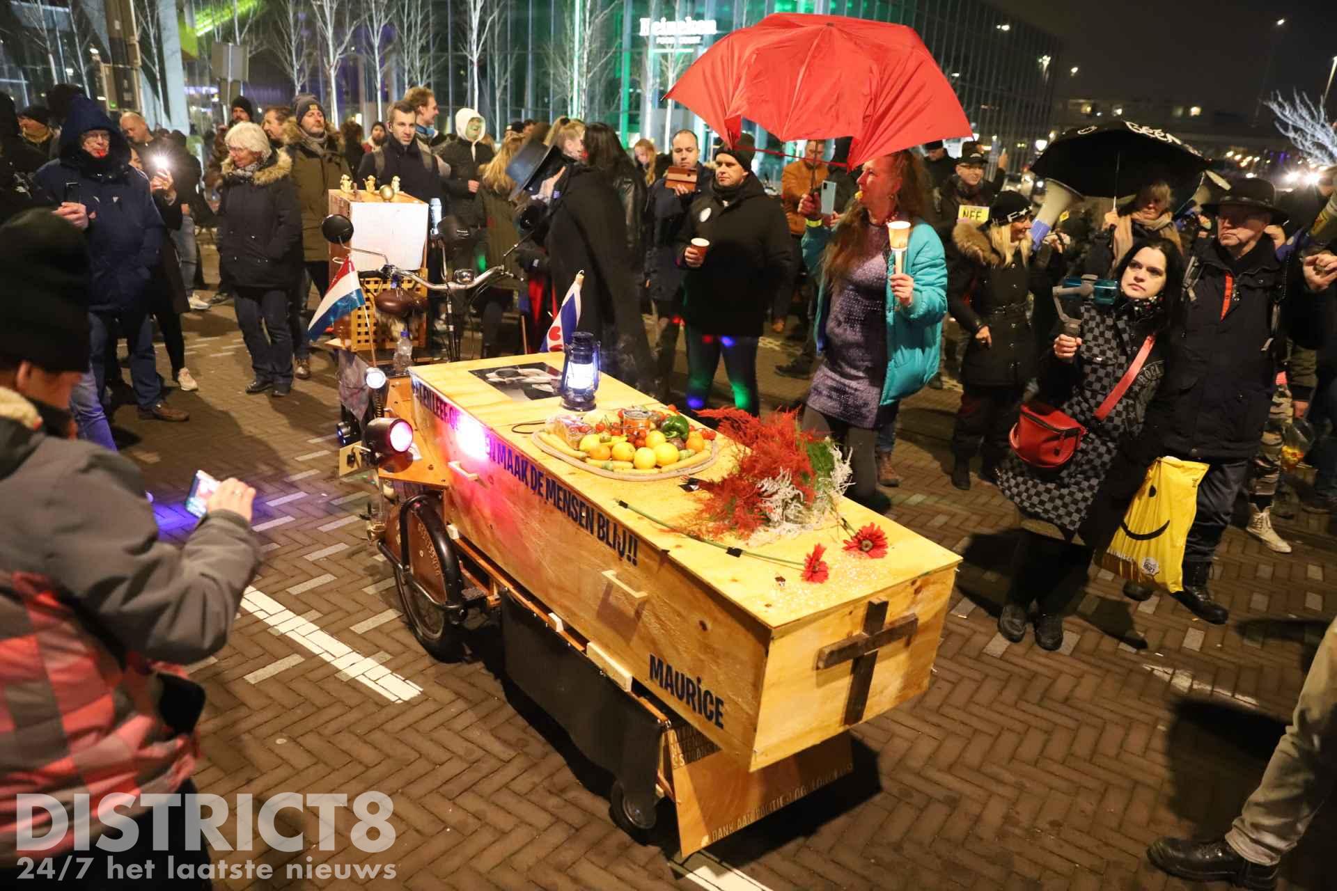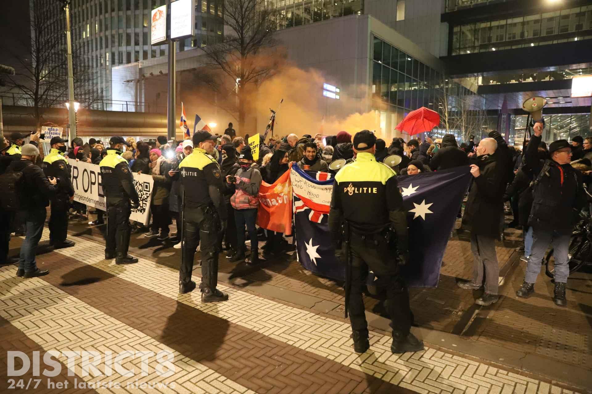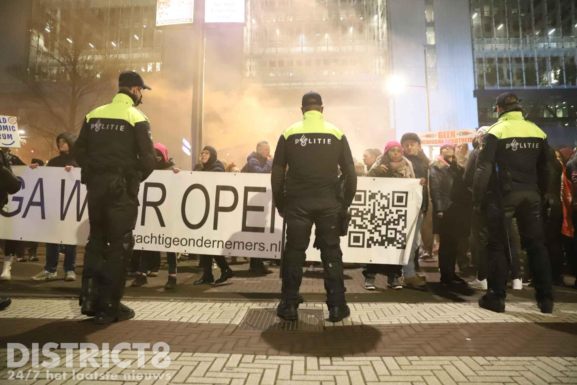 Den Haag – Op de Turfmarkt in Den Haag werd vanavond opnieuw gedemonstreerd tegen de corona maatregelen tijdens de persconferentie van het kabinet.