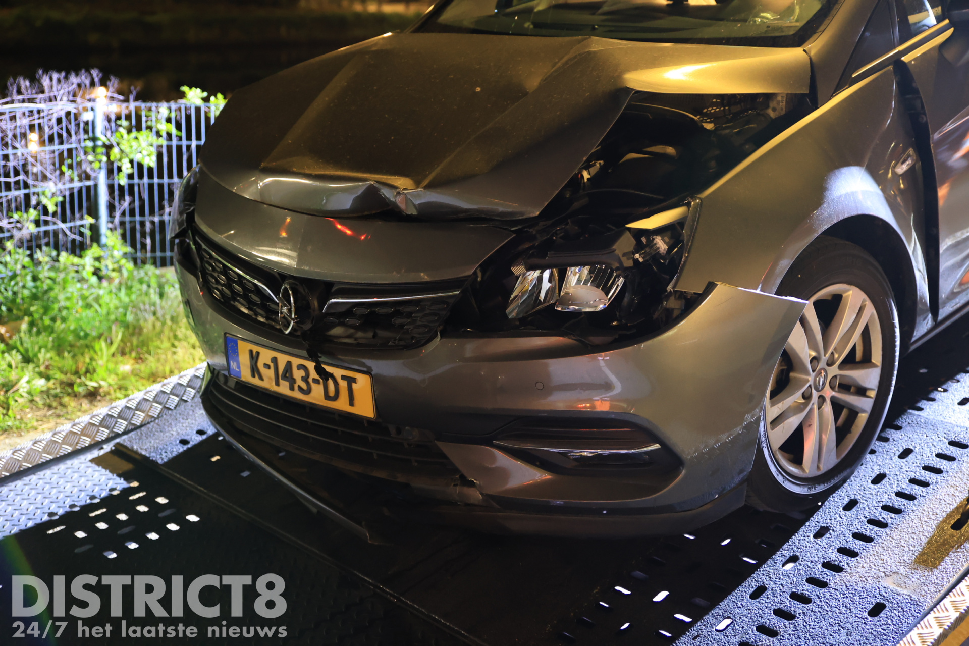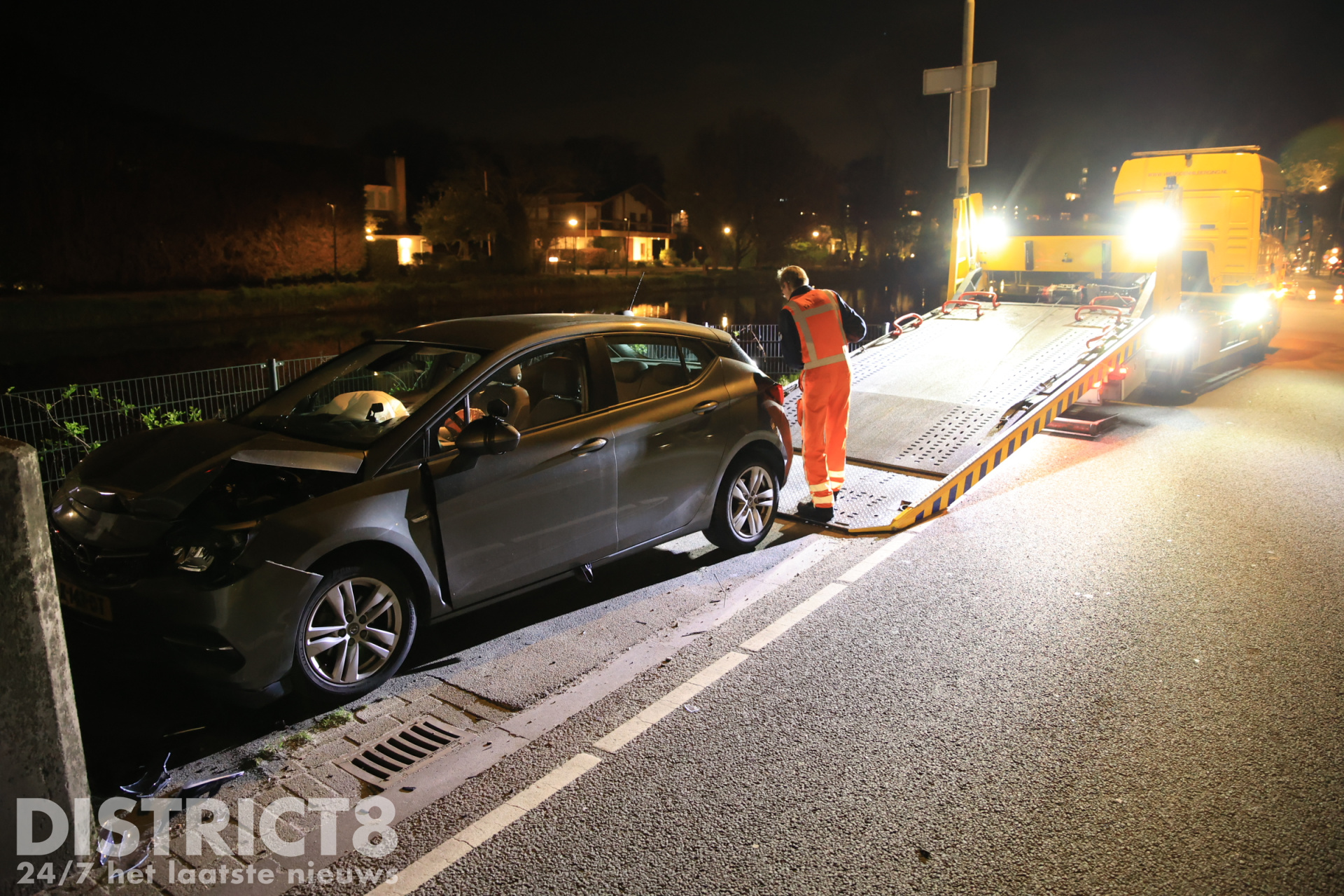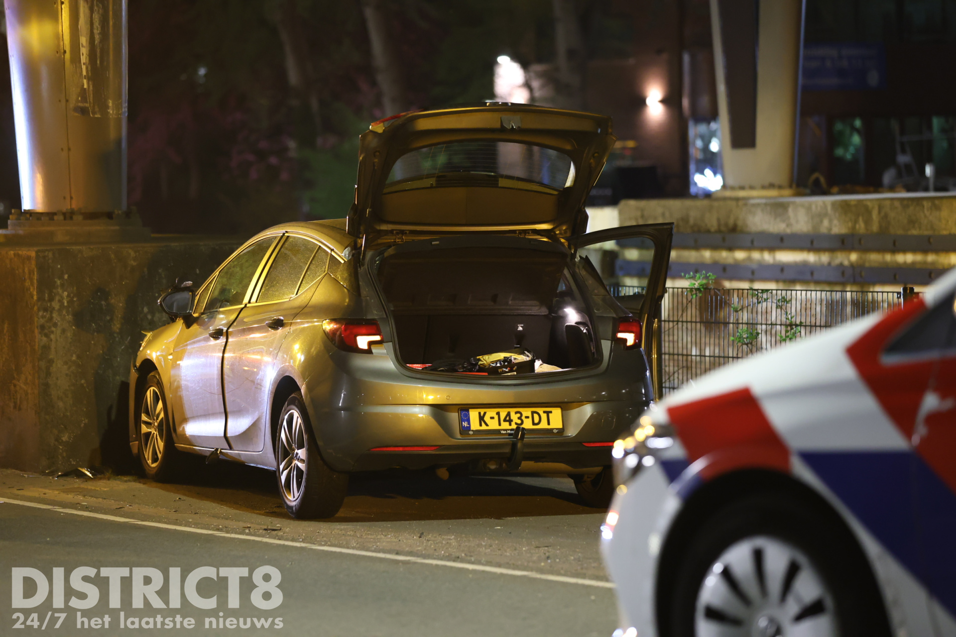 Lesauto botst tegen betonnen pijler van brug Westvlietweg Den Haag
