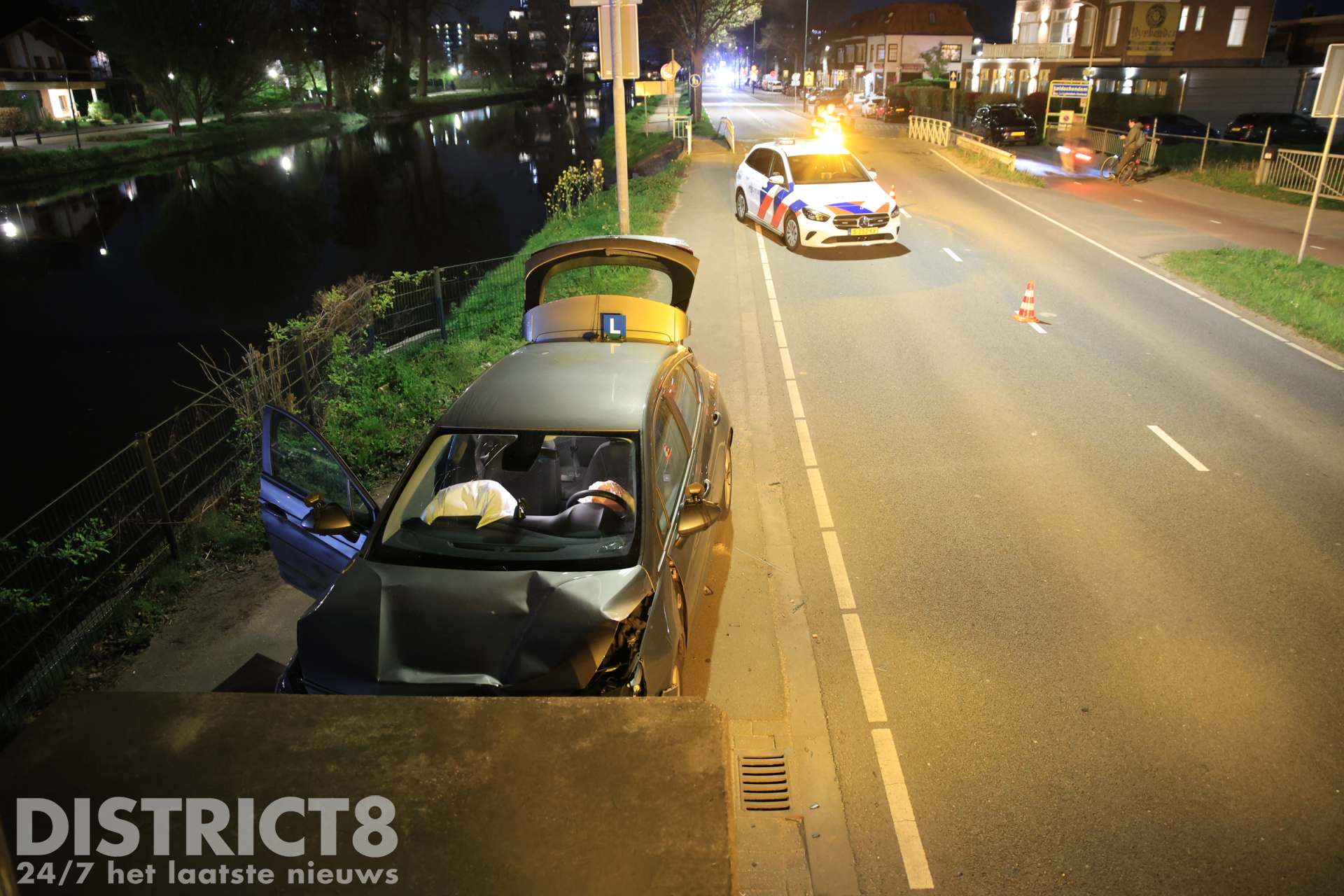 Ter plaatse bleek een lesauto tegen een betonnen pijler van een brug te zijn gereden. Er bleek bij aankomst van de brandweer geen sprake van brand te zijn, hierop is de brandweer weer teruggekeerd naar de kazerne.
