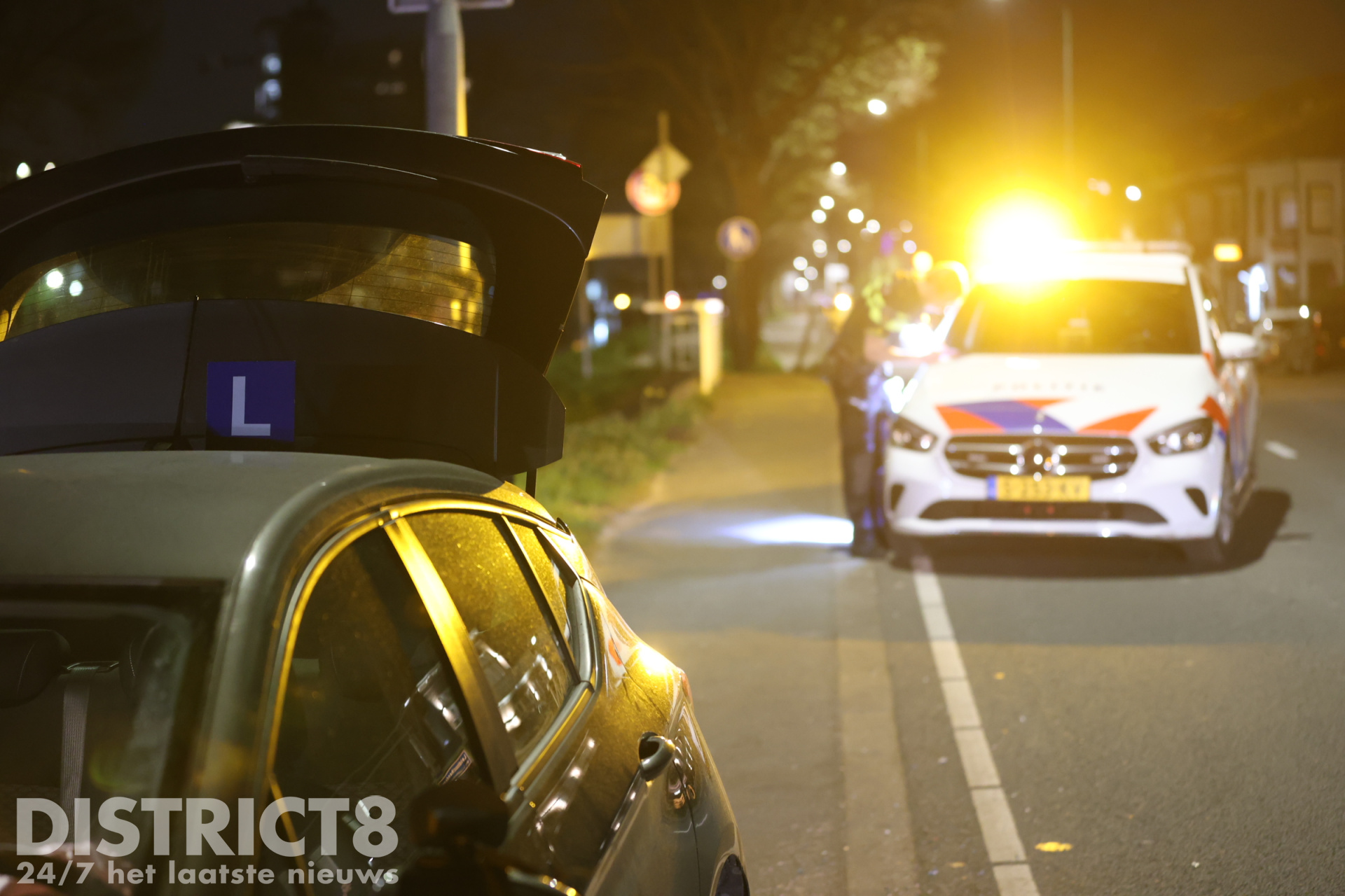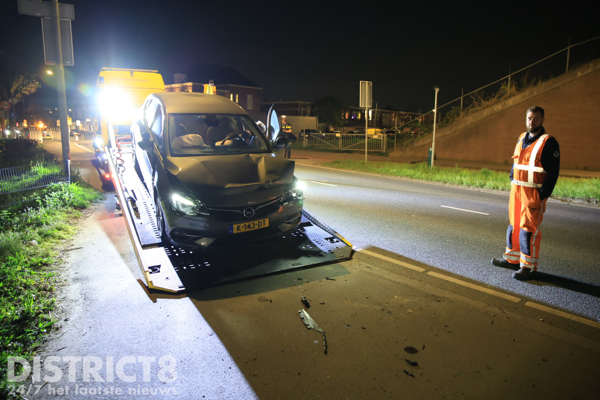 De weg was tijdelijk afgesloten vanwege het ongeval. Een sleepwagen heeft het lesvoertuig uiteindelijk afgesleept.