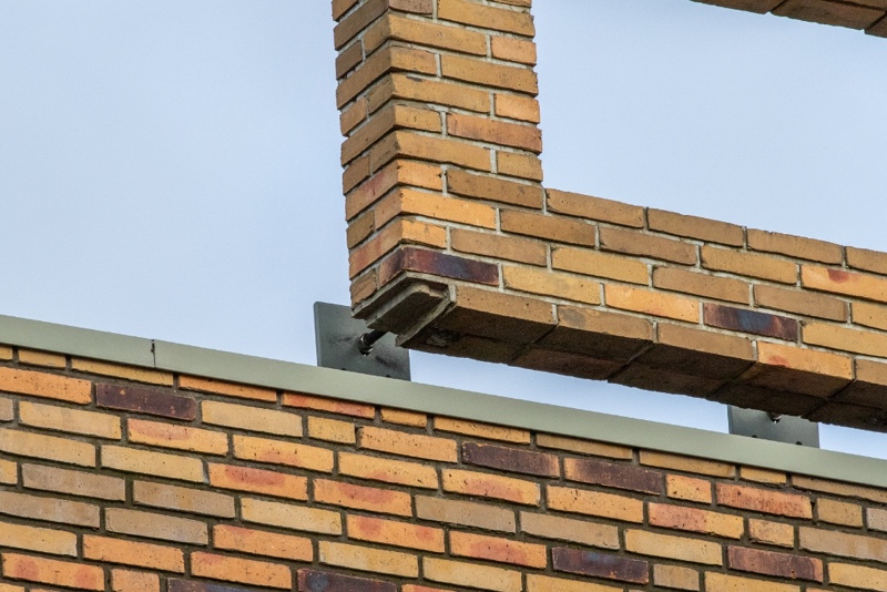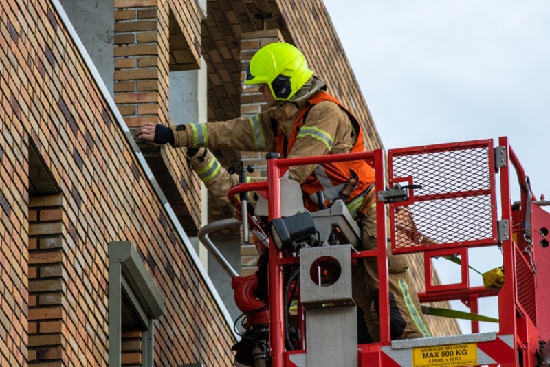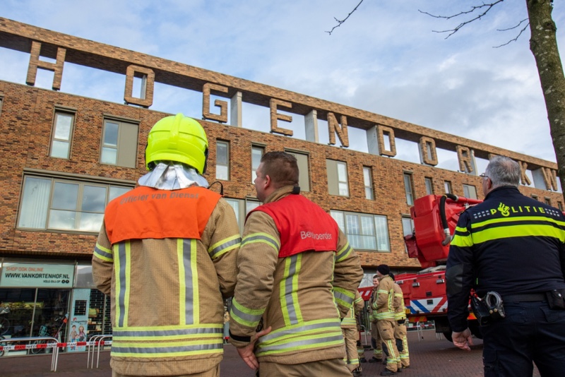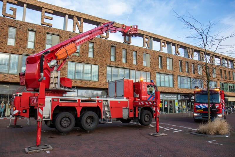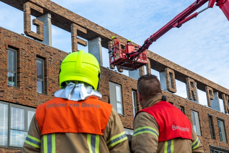 Met een klap viel de steen kapot op de grond. Omdat het gevaar bestond dat er mogelijk nog meer steen los waren geraakt werd de brandweer ingeschakeld. Met behulp van de hoogwerker werden diverse andere letters gecontroleerd.