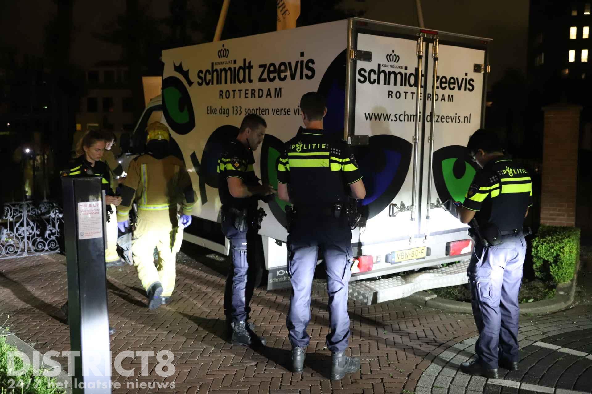 Een berger van Vreugdenhil heeft het busje na enkele pogingen los weten te krijgen en meegenomen. De visproducten zijn elders overgeladen.