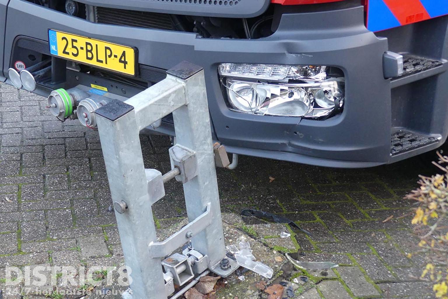 De bestuurder is door het ambulancepersoneel behandeld, en naar het ziekenhuis vervoerd voor verder onderzoek. De chauffeur van de brandweerwagen zag een paaltje over het hoofd toen zijn naar de kazerne reden, het voertuig heeft hierdoor schade.