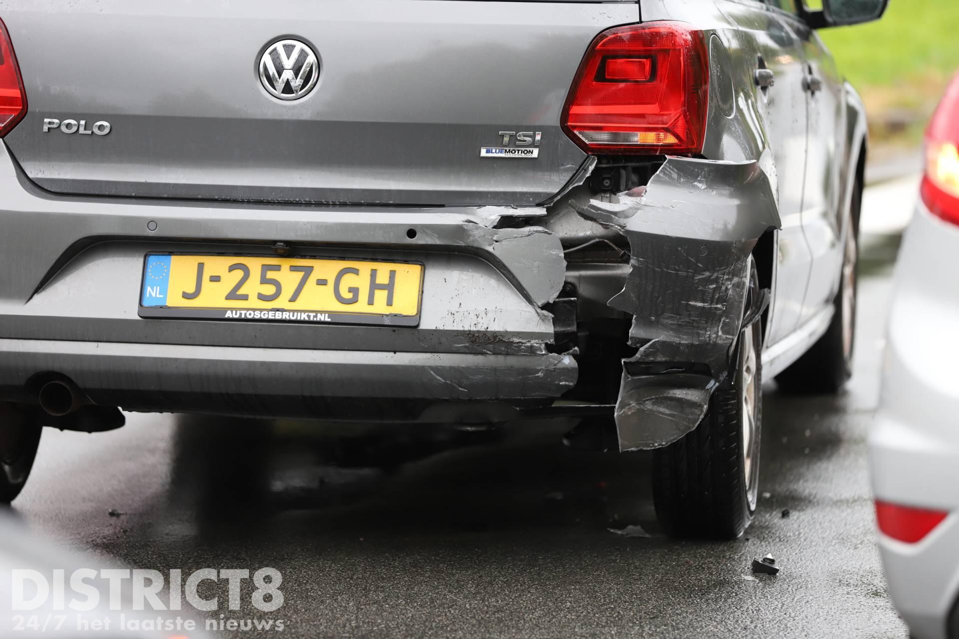 De voorste auto wilde stoppen voor een overstekende voetganger, de auto die er achter reed had dit niet door en klapte achterop de auto die stopte. Door de klap raakte één van de inzittenden lichtgewond.