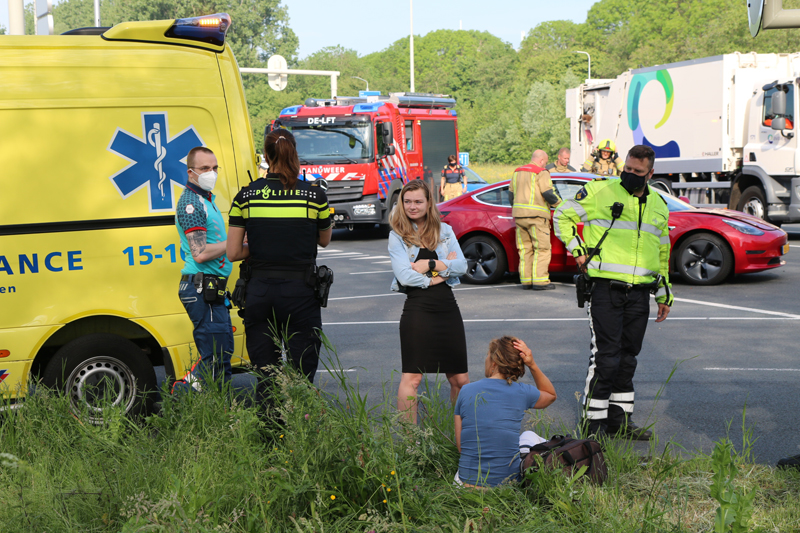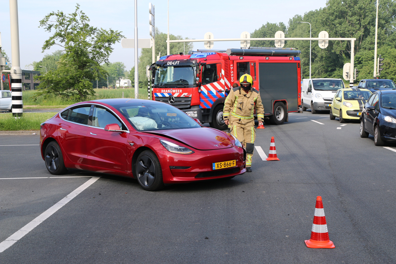Delft – Op de Kruithuisweg in Delft heeft vrijdagochtend een ongeval plaatsgevonden tussen een auto en een vrachtwagen. Alle inzittende van beide voertuigen konden zelfstandig hun voertuig verlaten. Bij het ongeval liep de inzittende van de Tesla lichte verwondingen op.