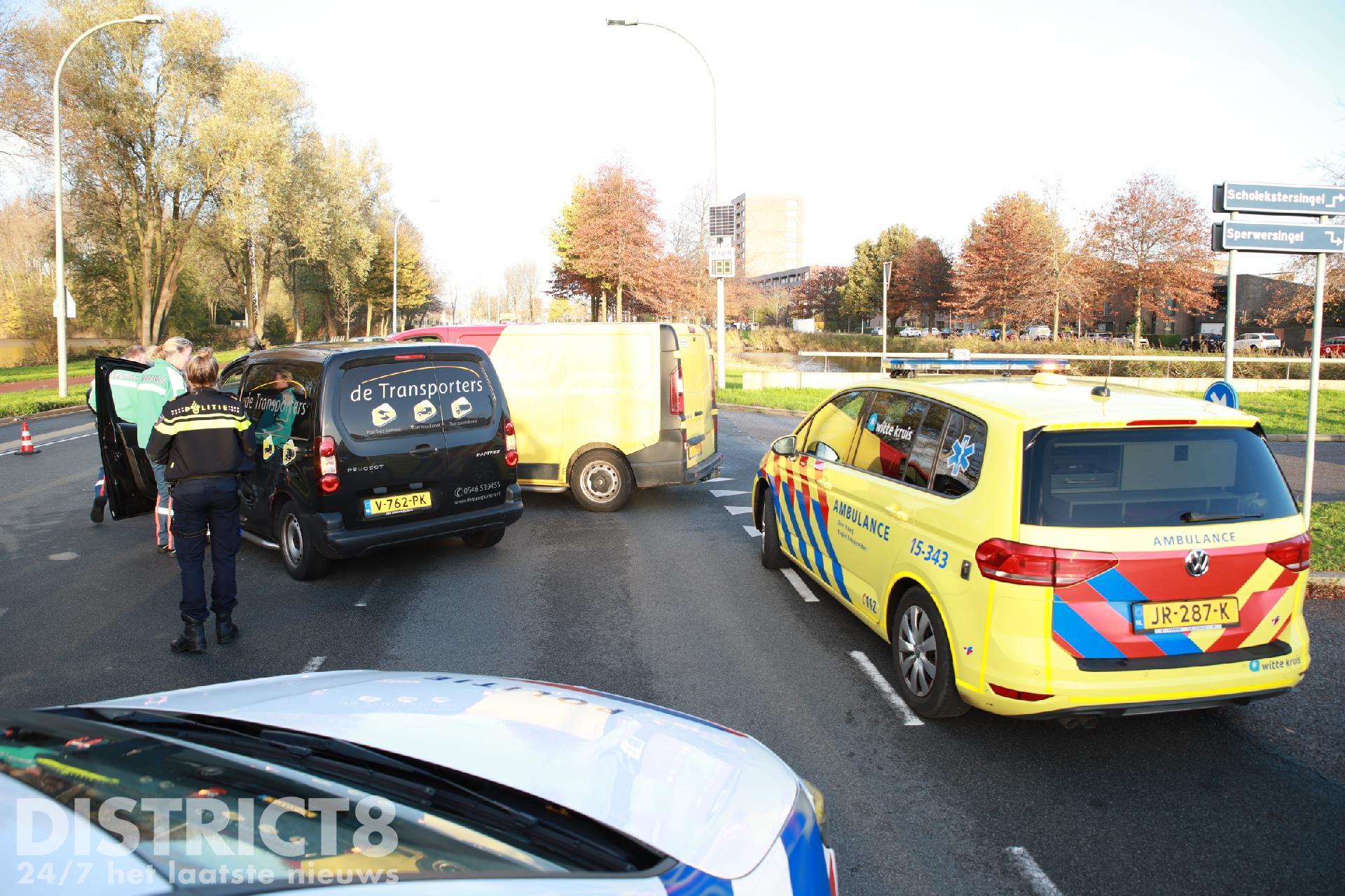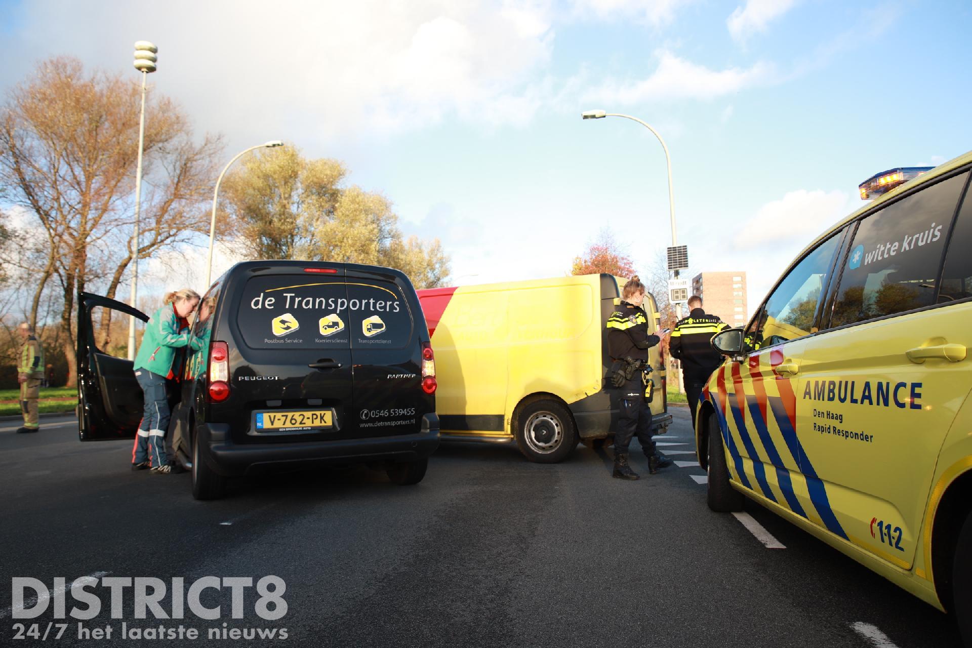 Den Haag – Vrijdagmiddag 25 november zijn de bestuurders van twee bestelbusjes gewond geraakt bij een aanrijding. Op de kruising van de Ypenburgse Boslaan met de Scholekstersingel ging het mis en kwamen beide in botsing.