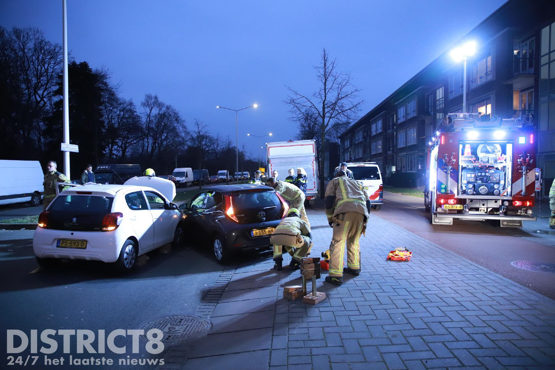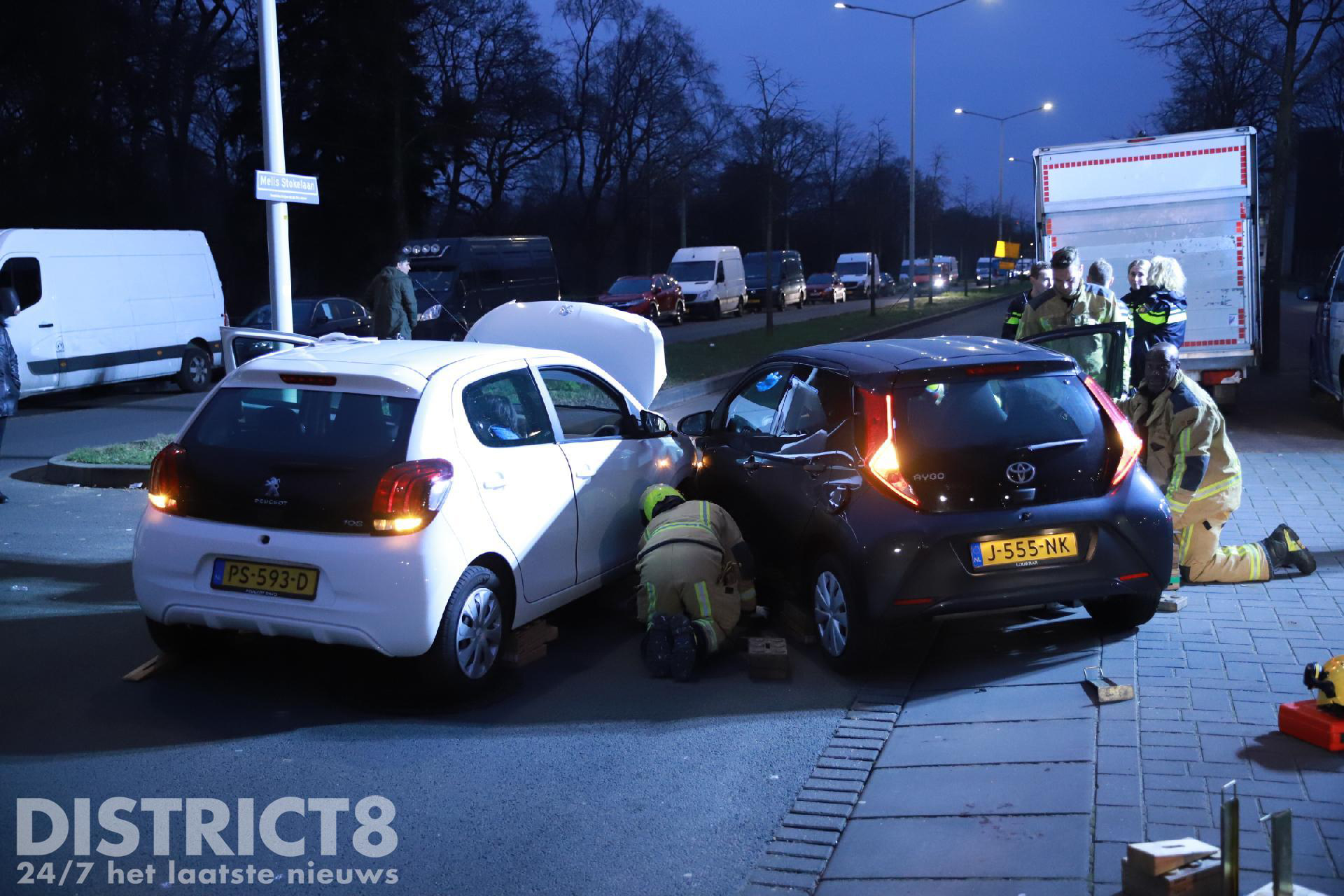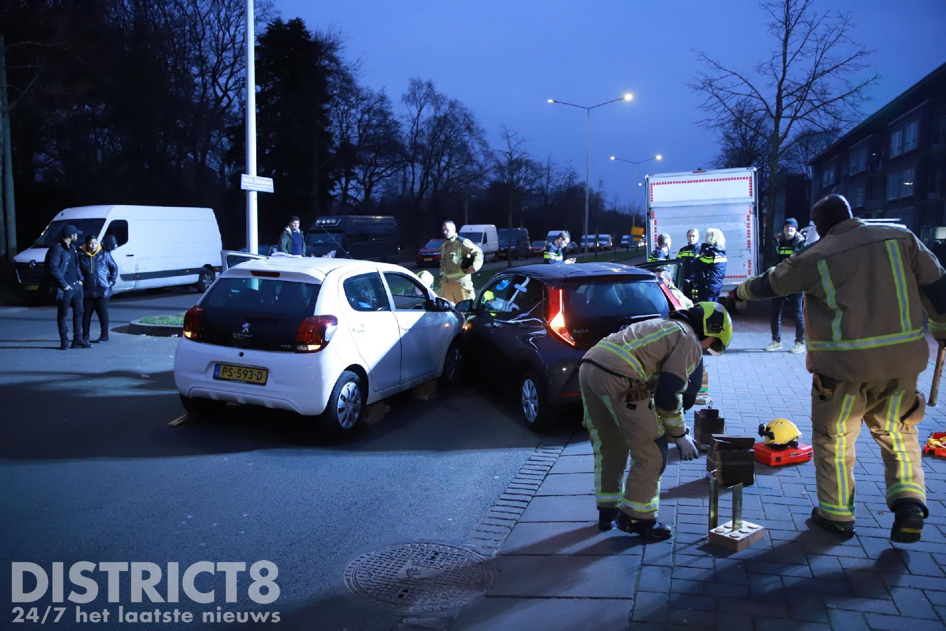 Twee voertuigen kwamen met elkaar in botsing. Door de aanrijding konden de bestuurder van de ene auto en de bijrijder van het andere voertuig niet zelfstandig uitstappen. Omdat zij aangaven dat zij mogelijk letsel hadden werd besloten om de brandweer te alarmeren.