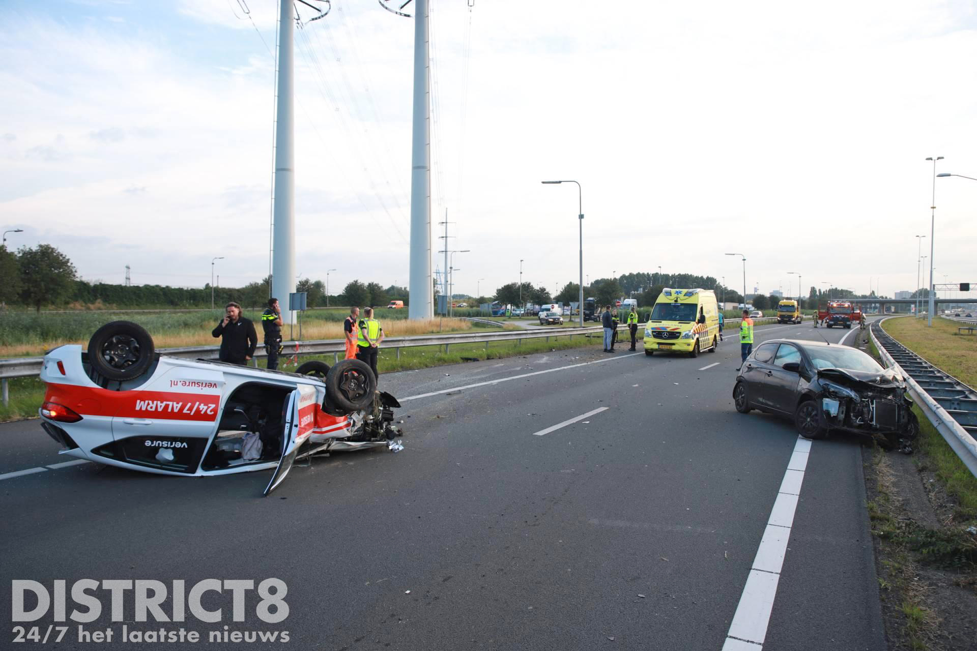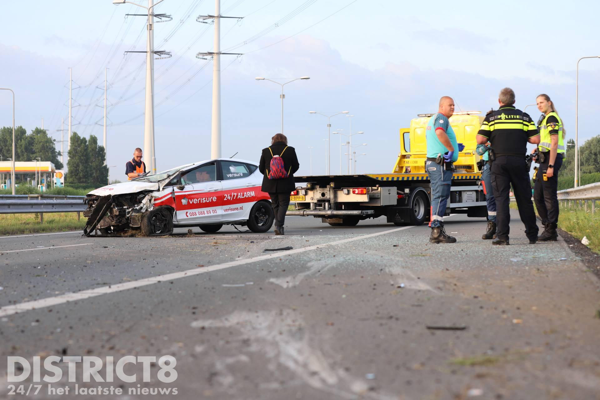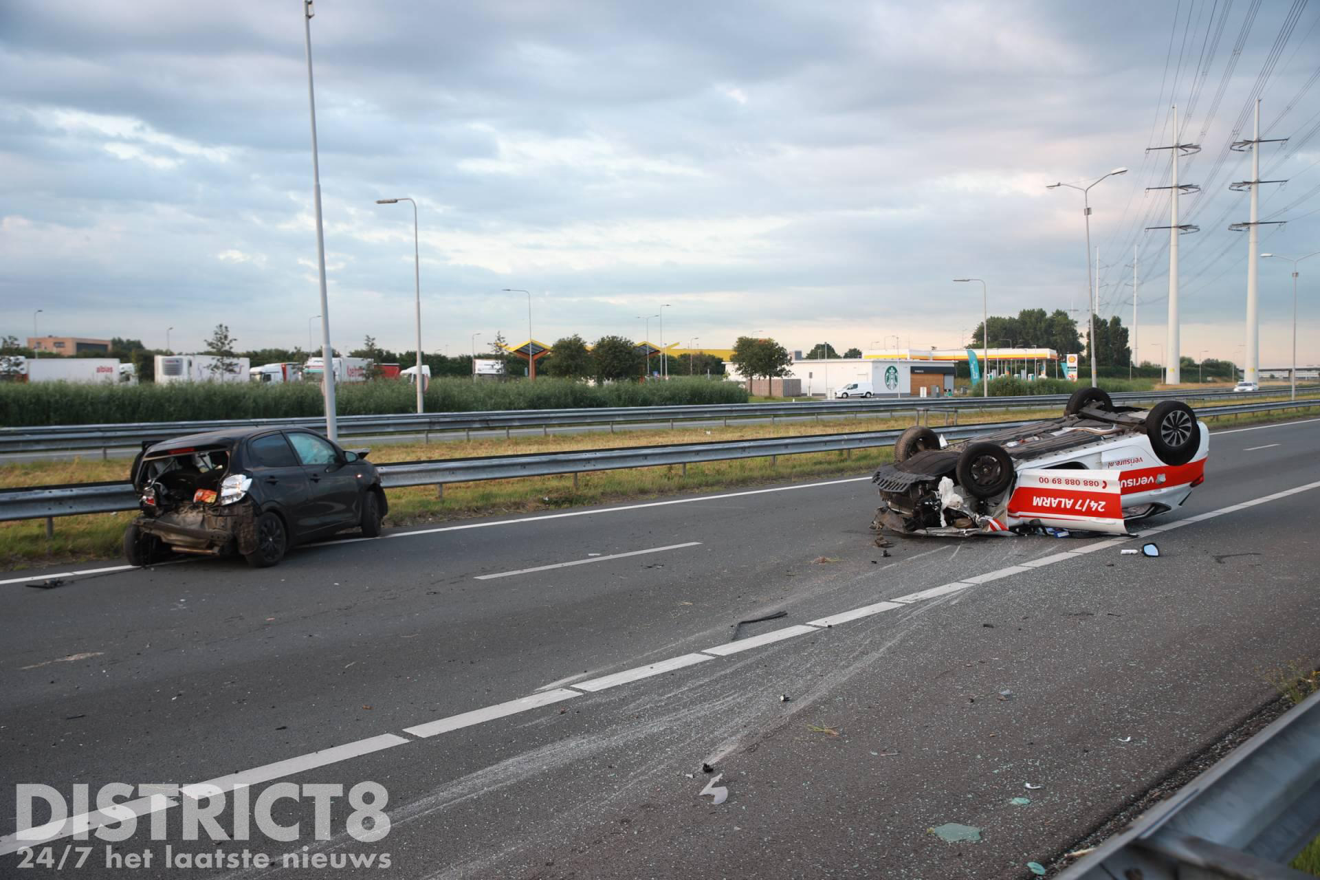 Een van de voertuigen klapte na de aanrijding met hoge snelheid tegen de vangrail waarna de auto over de kop vloog en op z’n dak nog enkele tientallen meters doorschoof. De andere auto kwam met een harde klap tot stilstand in de vangrail aan de andere kant van de weg.