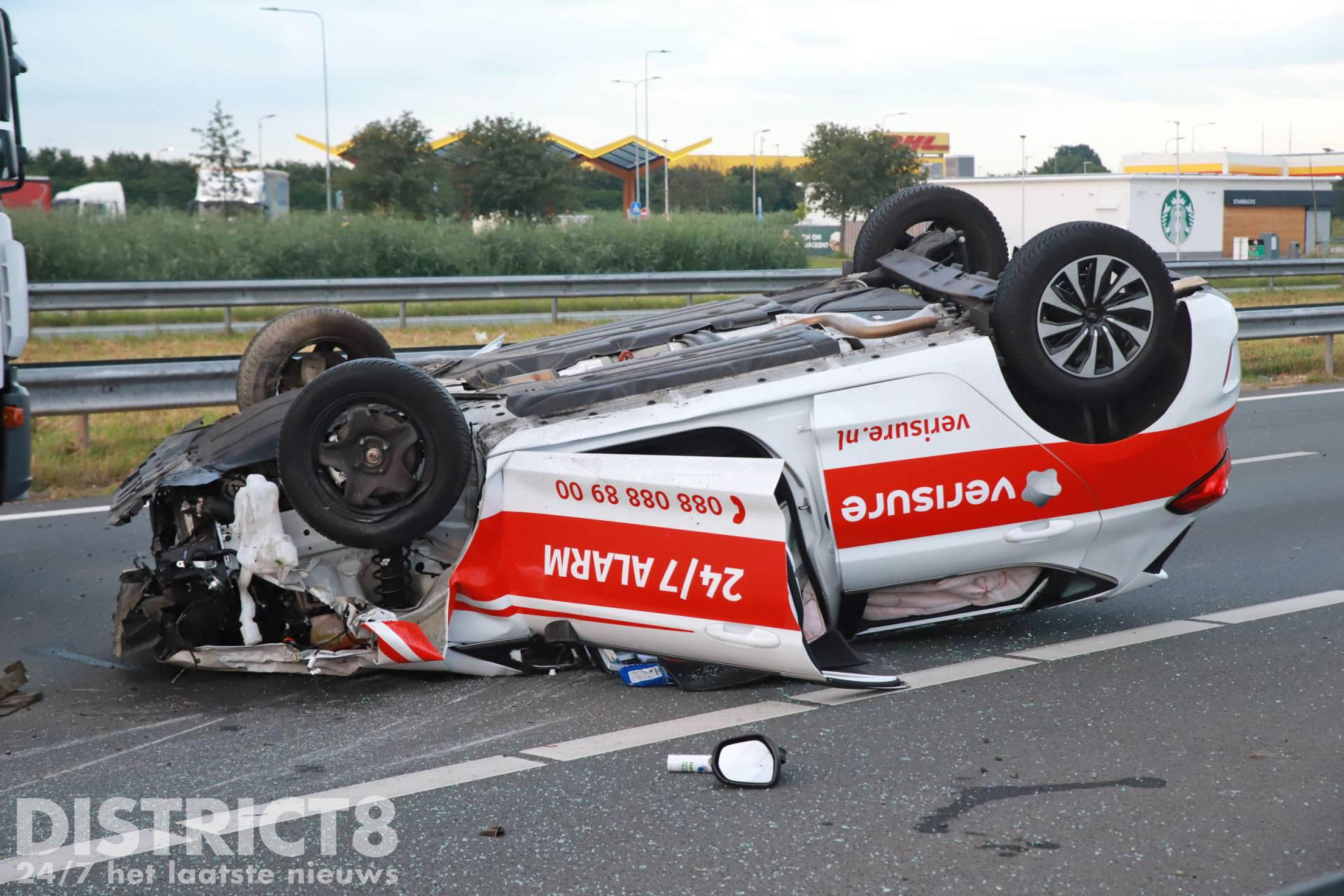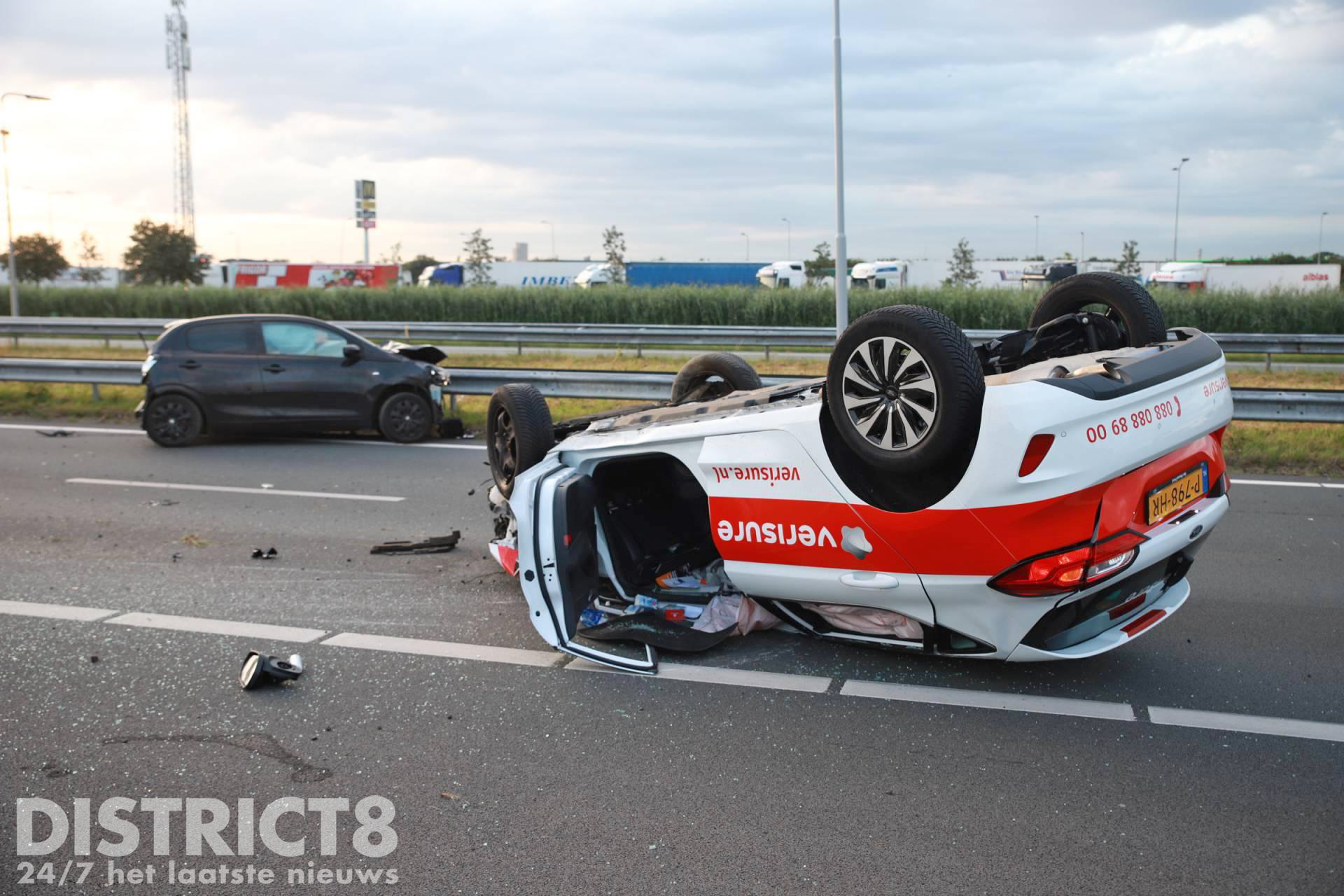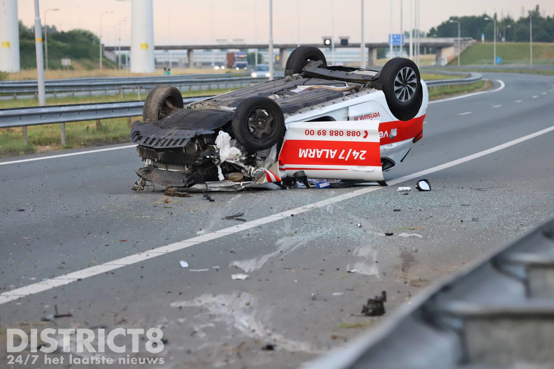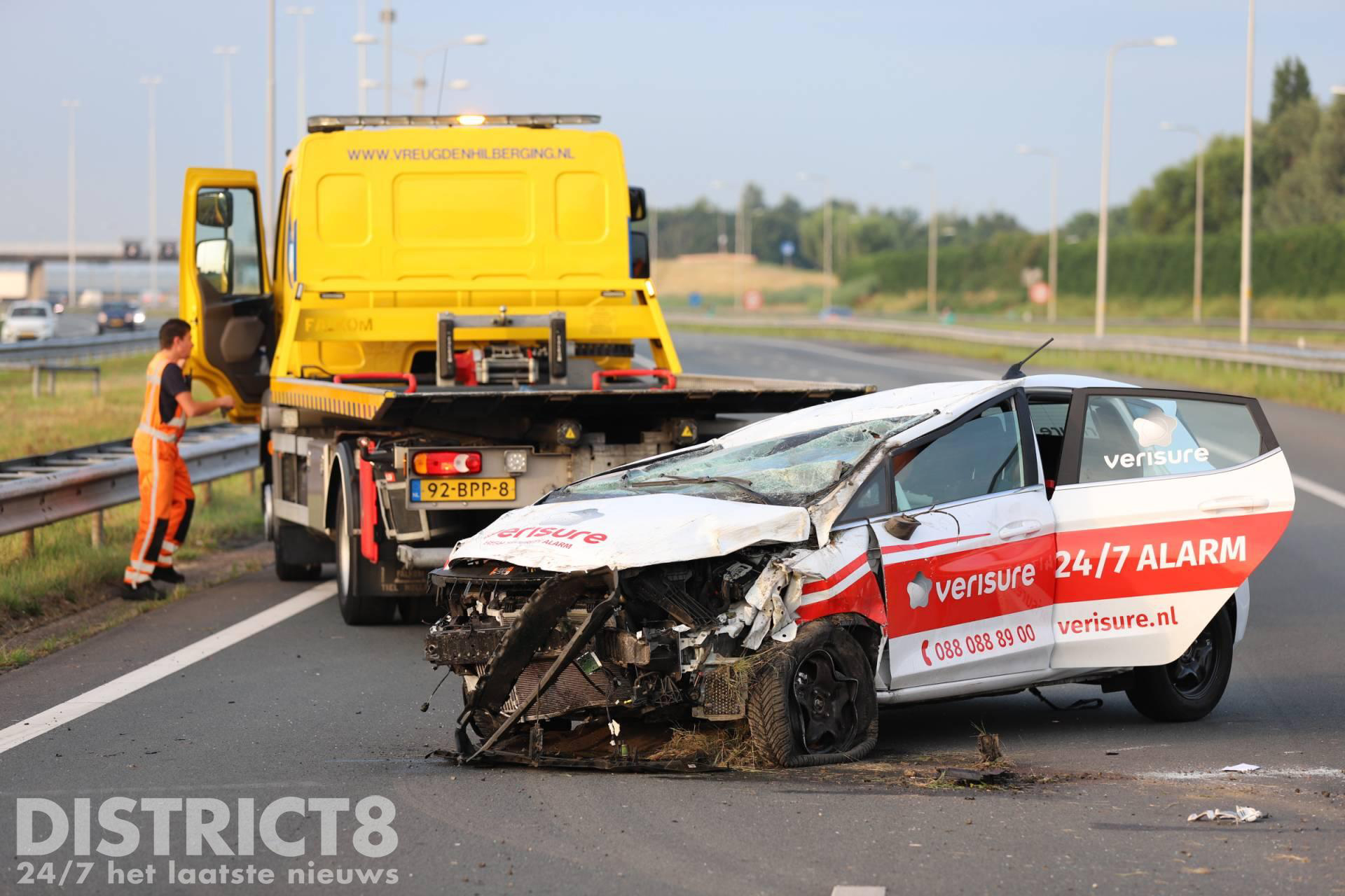 Een van de voertuigen klapte na de aanrijding met hoge snelheid tegen de vangrail waarna de auto over de kop vloog en op z’n dak nog enkele tientallen meters doorschoof. De andere auto kwam met een harde klap tot stilstand in de vangrail aan de andere kant van de weg.