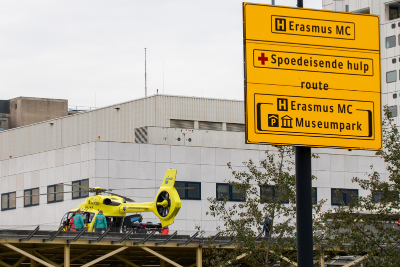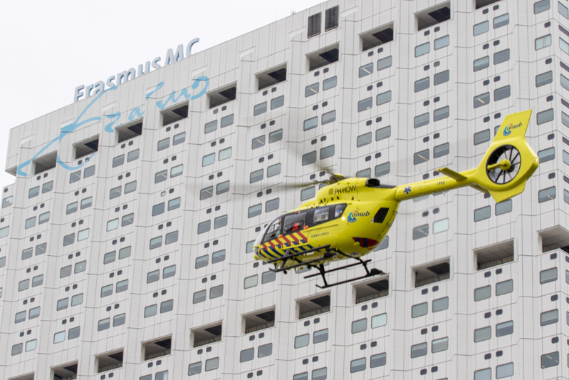 Rotterdam – De Coronahelikopter tijdelijk ook wel de Lifeliner 5 genoemd heeft vanmiddag zijn eerst patient overgevlogen van het Erasmus MC in Rotterdam naar een ander ziekenhuis