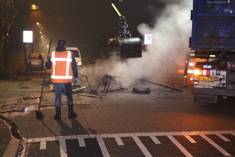 Rijswijk – Op de Handelskade in Rijswijk heeft een flinke buitenbrand gewoed. Pallets, kerstbomen en ander grof vuil was hier verzameld en in brand gestoken. De politie heeft gelijk een knijpwagen ter plaatse laten komen om al het grofvuil weg te laten knijpen.