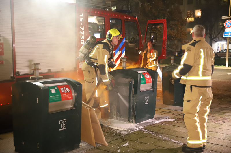 Den Haag – Aan de Markelostraat in de Haagse wijk Escamp hebben donderdagavond 31 december twee ondergrondse afvalcontainers in brand gestaan. De brandweer heeft beide containers vol laten lopen met water.