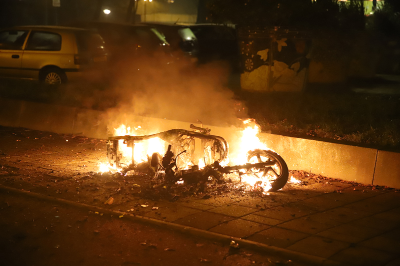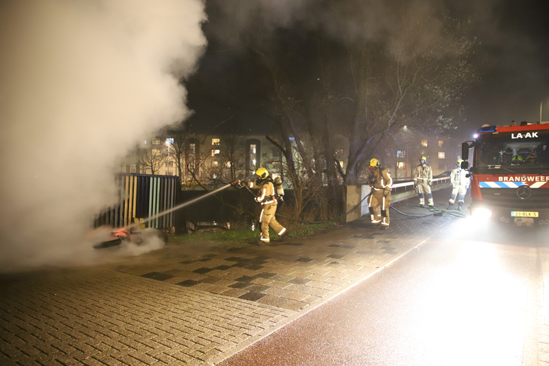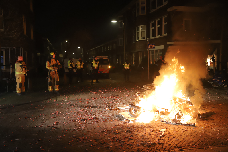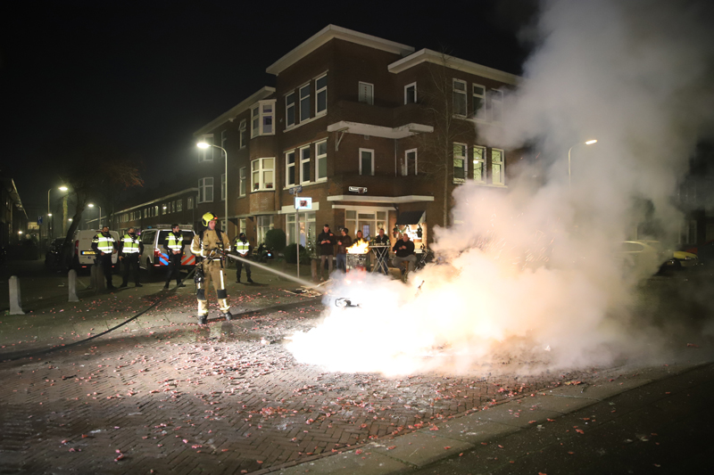 Den Haag – Op de kruising van de Rosseelsstraat en de Van Vlotenstraat in het Haagse Laakkwartier is brand gesticht. Hierbij is onder andere een scooter in vlammen op gegaan. De brandweer kwam ter plaatse om het vuur te blussen.