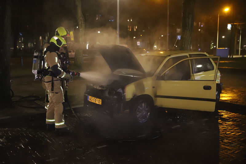 De brandweer kwam met spoed ter plaatse en kreeg de brandende auto snel onder controle met twee stralen hogedruk.