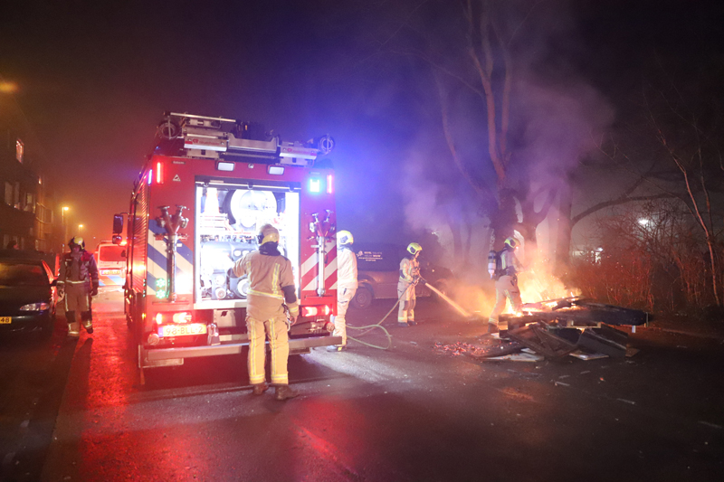 Den Haag – De brandweer is donderdagavond gealarmeerd voor een voertuigbrand aan de Betje Wolffstraat. Ter plaatse bleek er een bed en een kast in brand gestoken te zijn. Doordat de brand tussen geparkeerde auto’s woedde, is de brand aangezien als voertuigbrand. De brandweer kwam met spoed ter plaatse en heeft de brand geblust.
