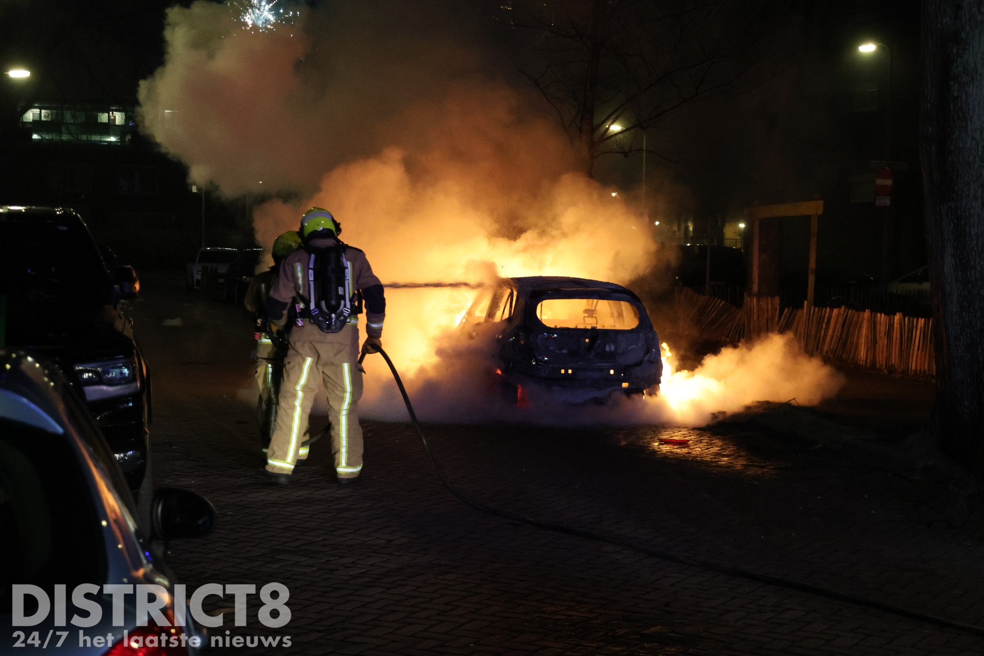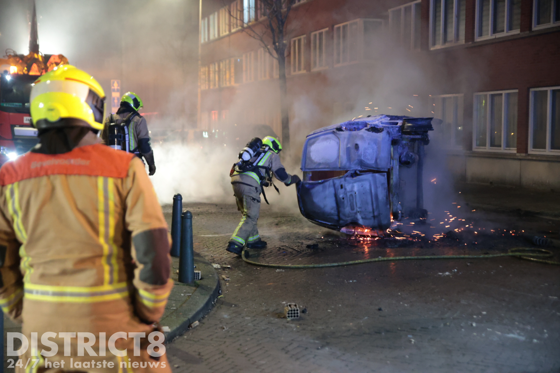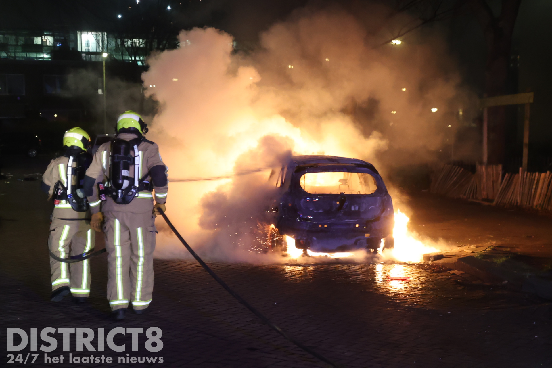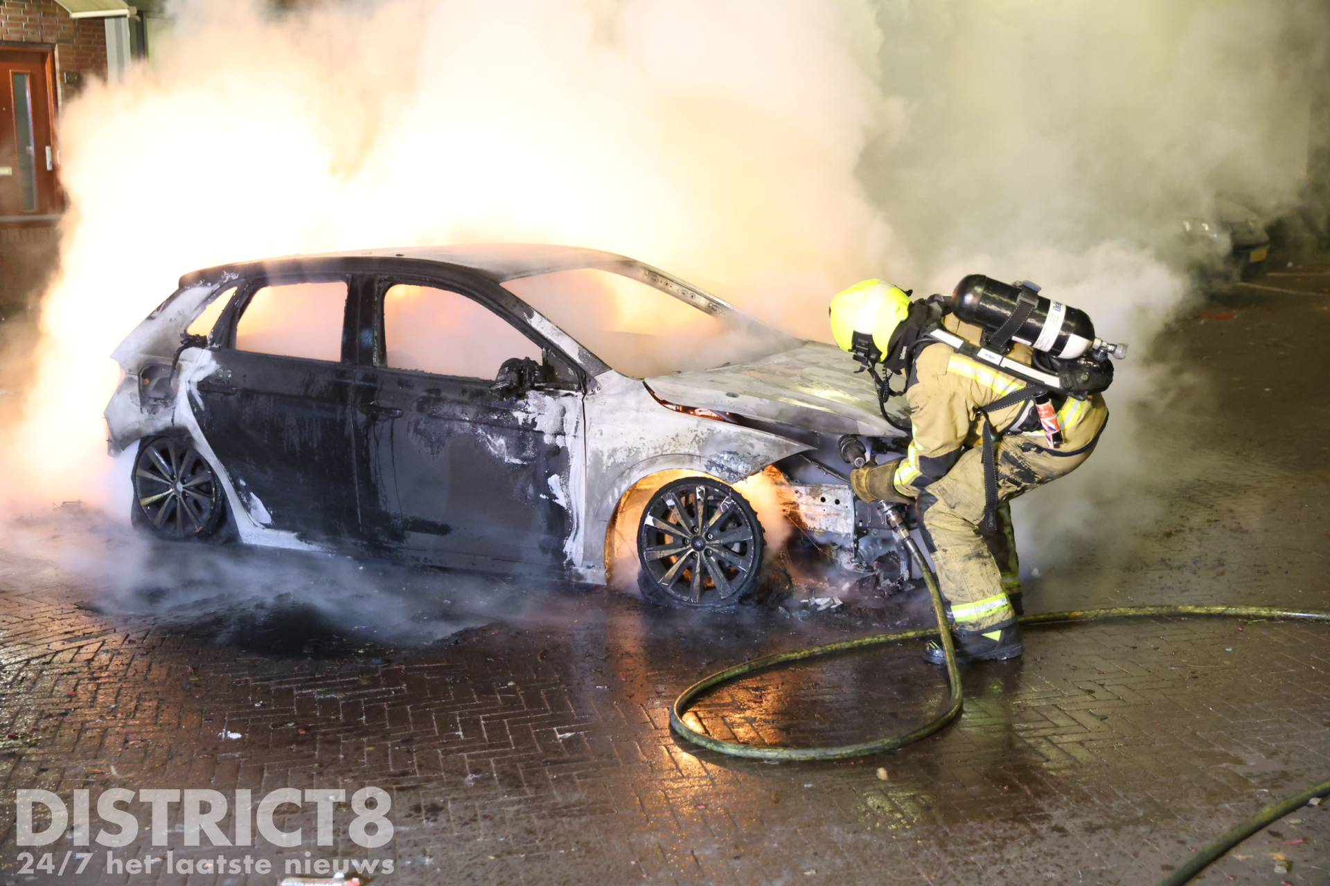Den Haag – Aan de Beetsstraat in Den Haag werd ook een auto in brand gestoken. De brandweer kon niet voorkomen dat het voertuig onherstelbaar beschadigd raakte.