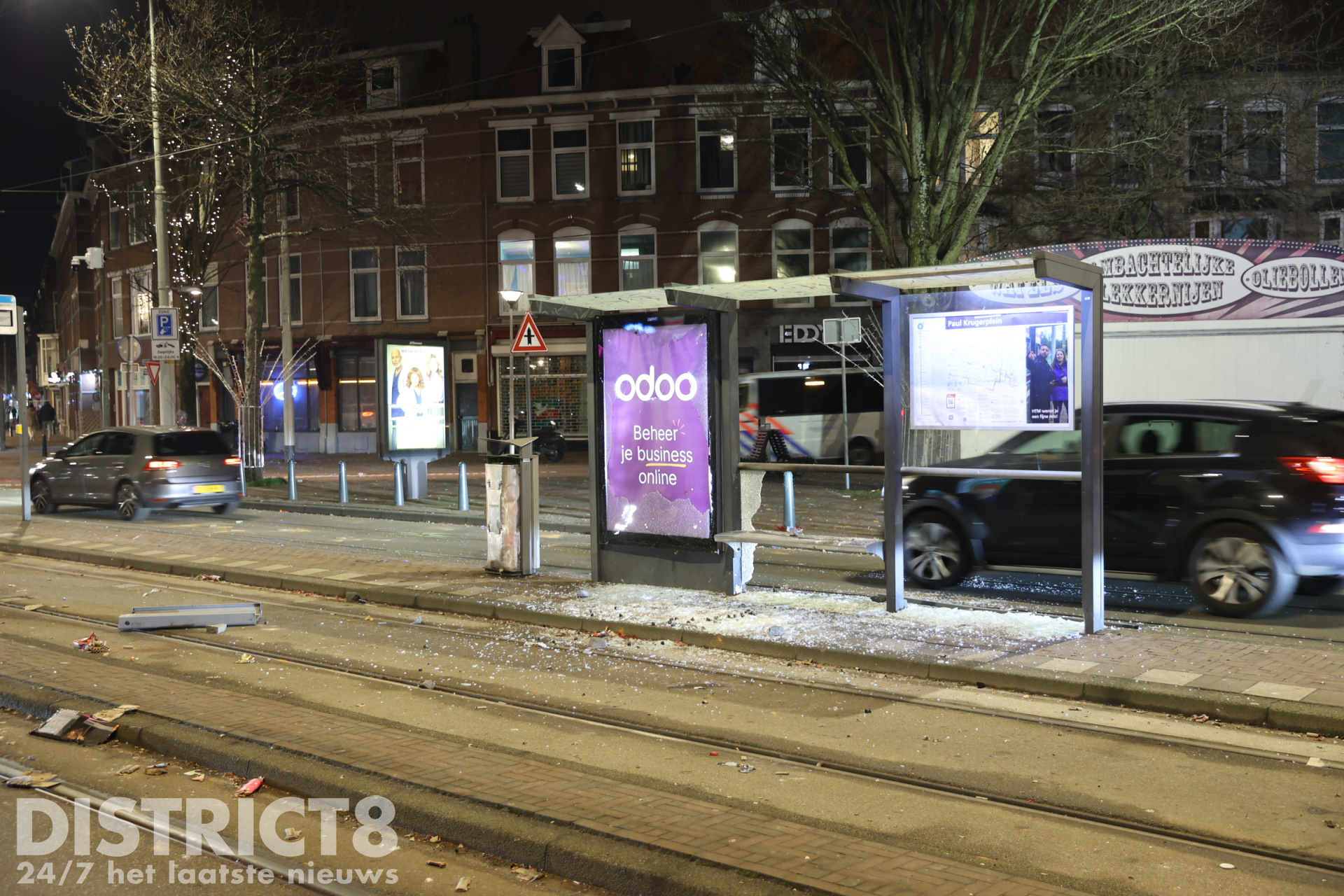 Den Haag – Een beetje beschut op de tram wachten zit er op het Paul Krugerplein in Den Haag niet meer in. Vandalen hebben de tramhalte volledig vernield.
