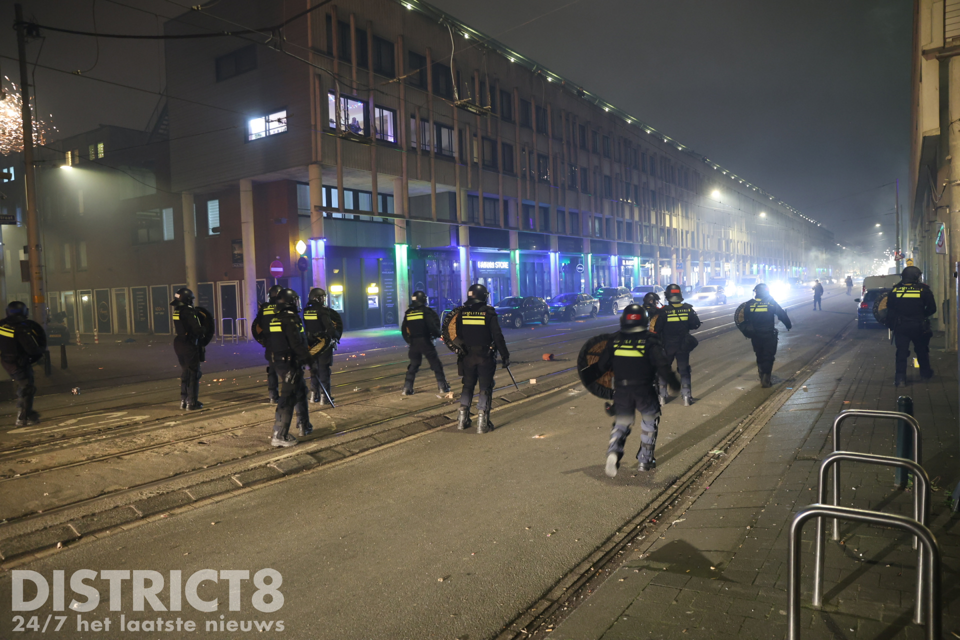Den Haag – Aan het Anna Blamanplein in Den Haag is het ook onrustig. De politie werd hier bekogeld met vuurwerk en heeft in ieder geval één aanhouding verricht.