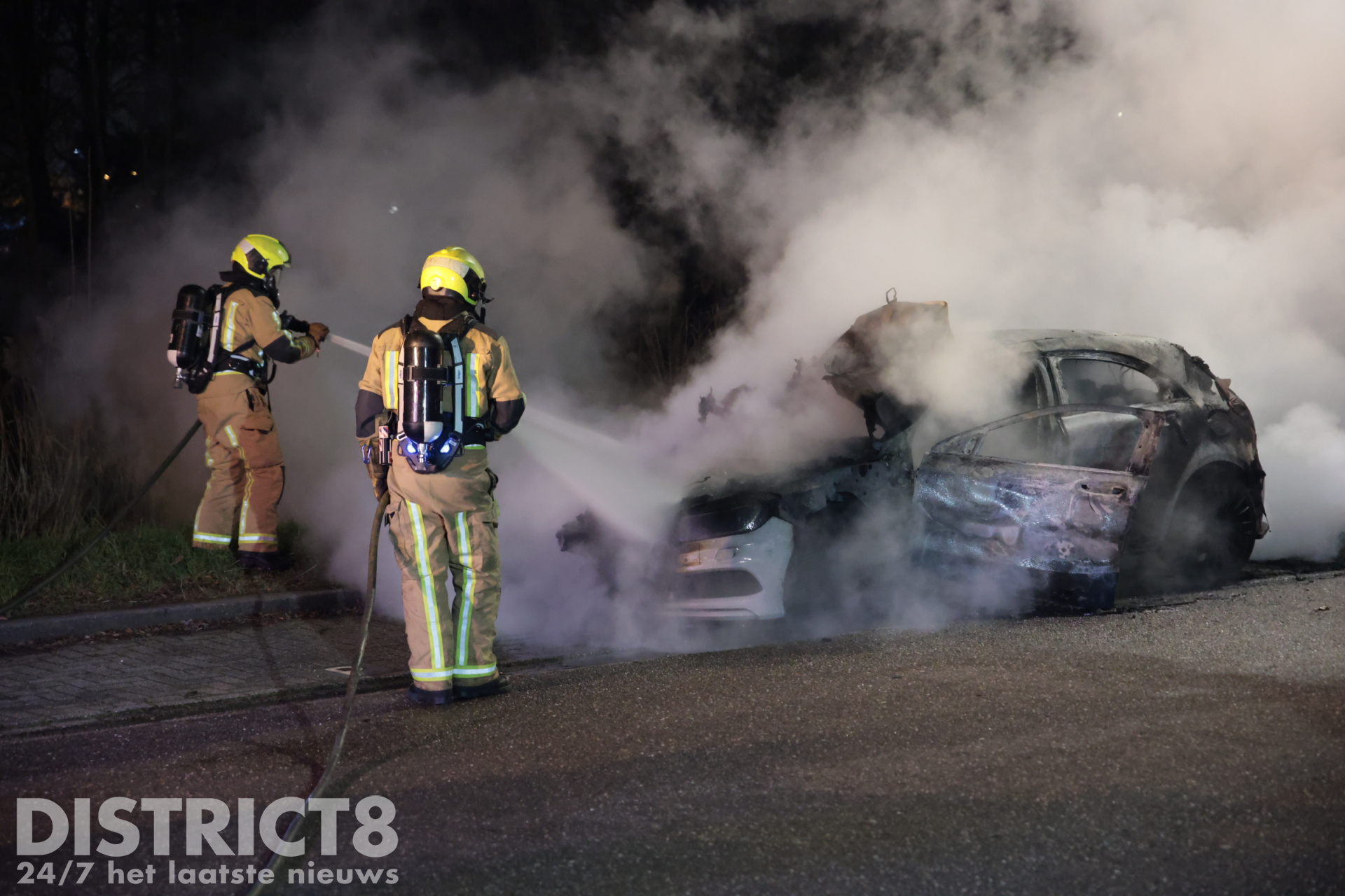 Nootdorp – Ook op de Sportparkweg ging een geparkeerde auto in vlammen op en ook deze was niet meer te redden. Het voertuig brandde volledig uit.