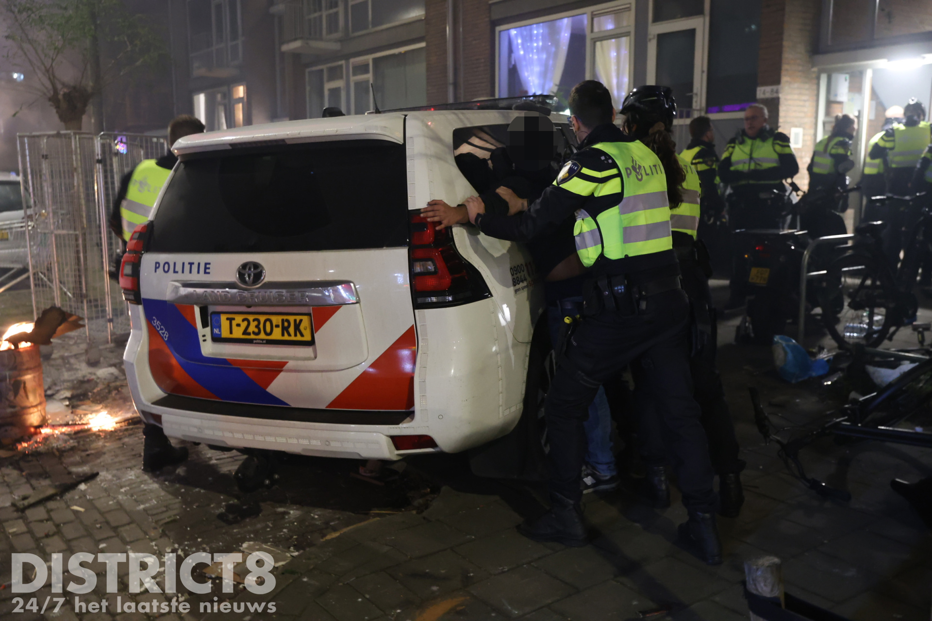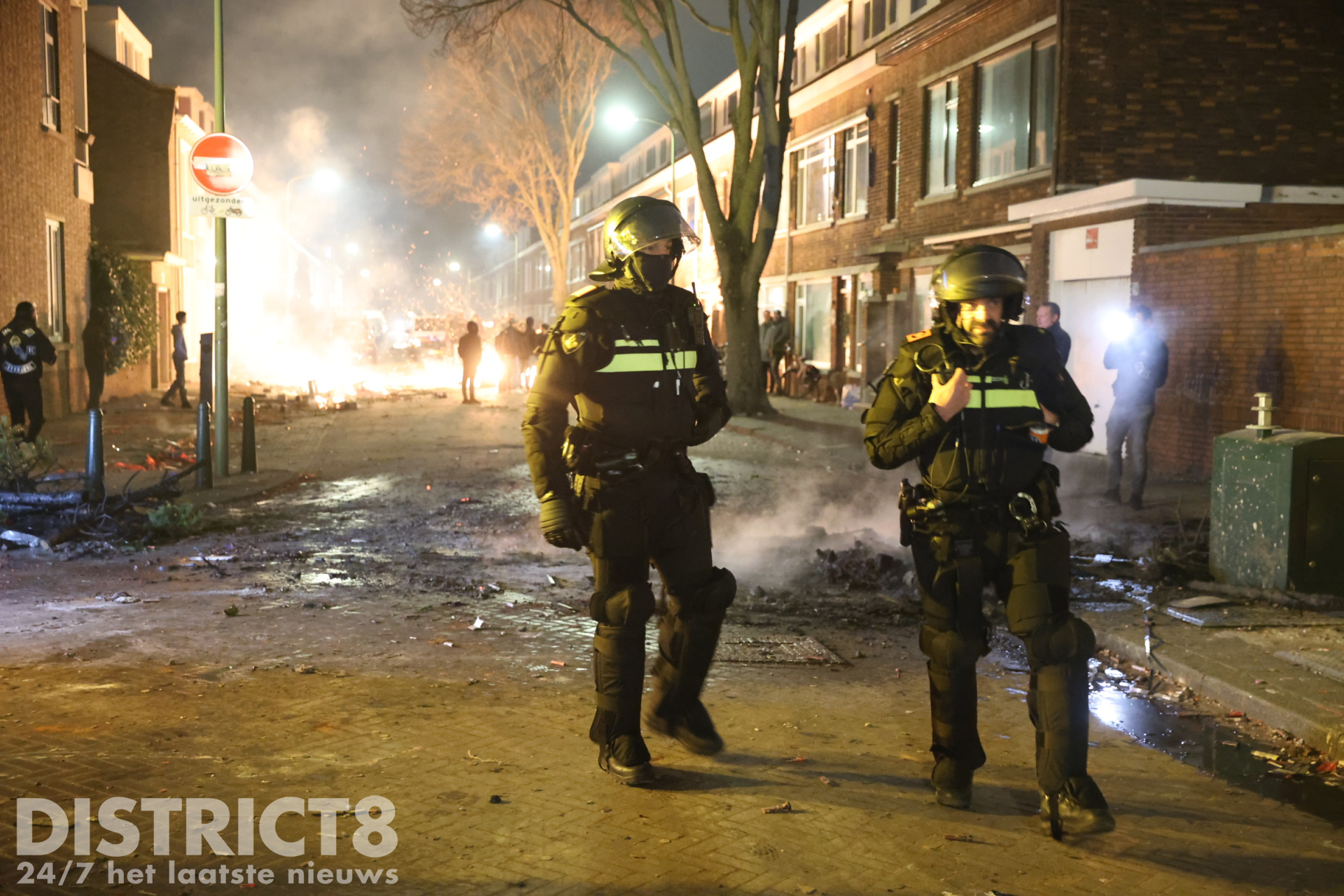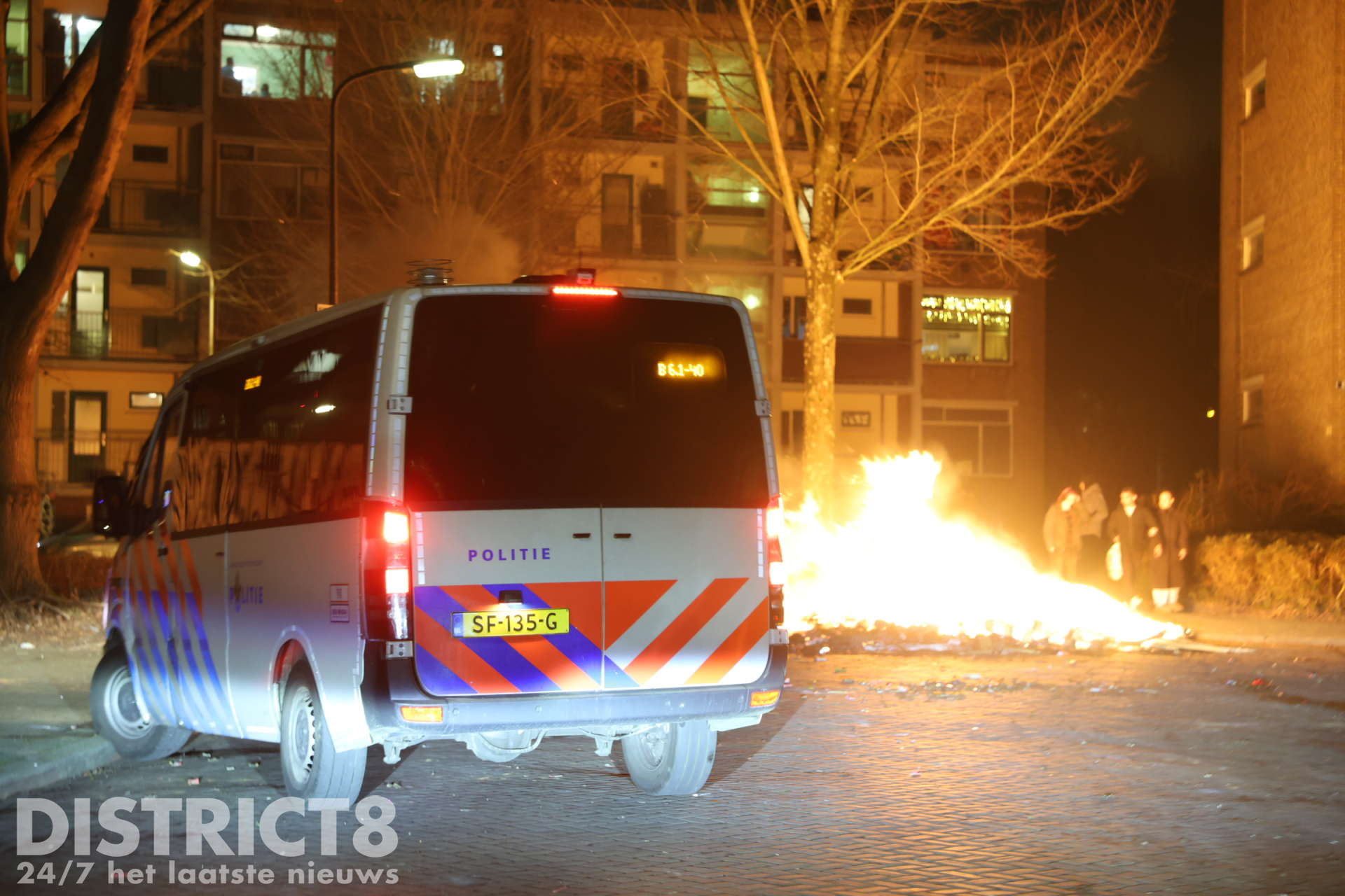 Den Haag – Nadat het al de hele avond onrustig is in de omgeving van de Hobbemastraat in Den Haag, heeft de politie precies rond middernacht een charge uitgevoerd. De groep jeugd was dusdanig groot en met vuurwerk aan het schieten, dat de politie ingreep. Ook waren inmiddels meerdere branden gesticht op straat die door de politie geblust zijn.