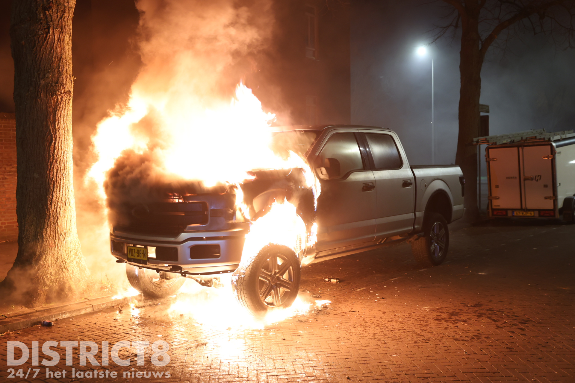 Den Haag – Een Ford pickup op de Erasmusweg werd volledig verwoest door brand. De brand ontstond aan de voorzijde van het voertuig, maar uiteindelijk ging het volledige voertuig verloren.