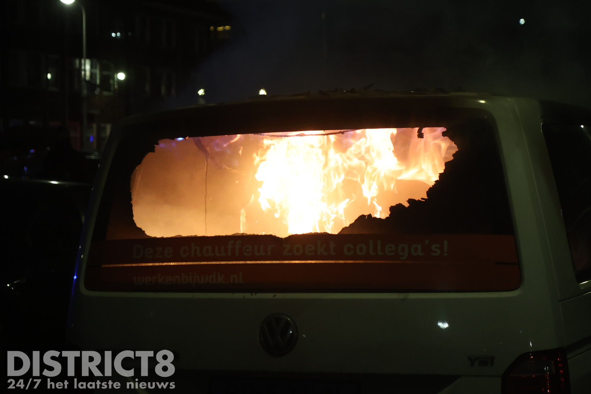 Den Haag – Een Pools busje van een uitzendbureau die geparkeerd stond op de Ferdinand Bolstraat werd in brand gestoken. Ook de ruit van een auto verderop in de straat werd ingeslagen, echter is dit voertuig (nog) niet in brand gestoken. De politie was in grote getalen aanwezig om brandstichting in dit voertuig te voorkomen.