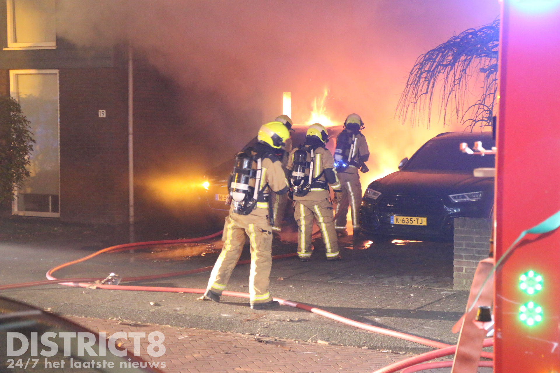 Den Haag – Twee geparkeerde auto’s onder de carports van twee woningen stonden in brand aan de Stavangerstraat in Den Haag. Hierdoor werden ook de twee woningen aangestraald door de vlammen. Na enige tijd sloeg de brand over op de woningen en moest de brandweer de nodige sloopwerkzaamheden verrichten om de brand volledig te kunnen blussen.