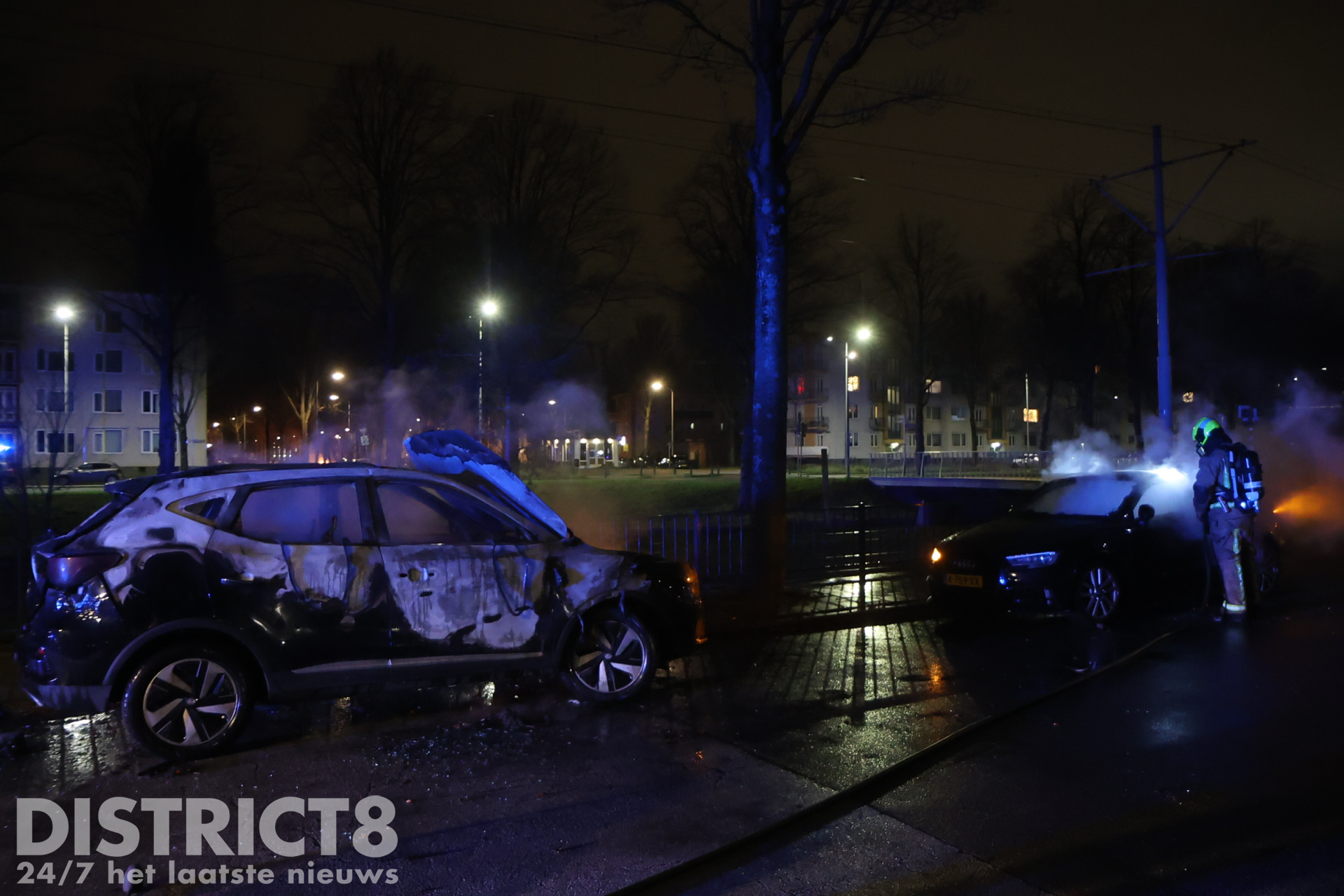 Den Haag – Wederom moesten auto’s aan de Erasmusweg het ontgelden, één voertuig werd in brand gestoken en het voertuig ervoor werd door de vlammen aangestraald. Hierdoor brandde dit voertuig ook uit. De brandweer kwam ter plaatse om beide auto’s te blussen.