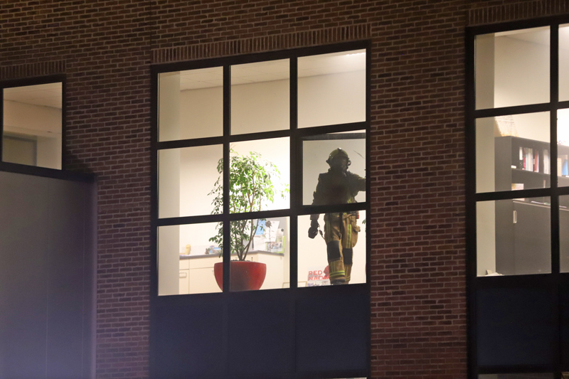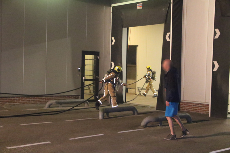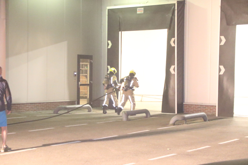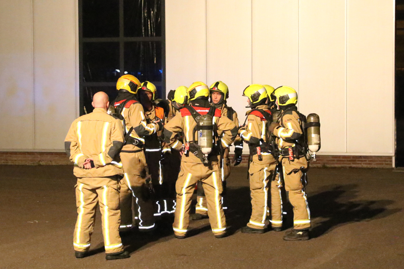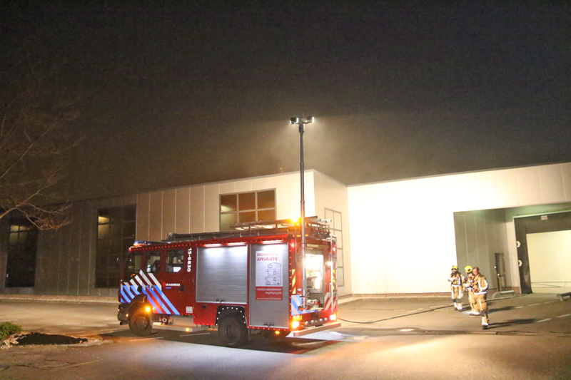 Toen de brandweer arriveerde stond de loods en het kantoorgedeelte vol met rook. De brandweer had enige tijd nodig om de brandhaard te vinden. Omdat het ging om een grote loods ging de brandweer van twee kanten naar binnen om te zoeken naar de brand.