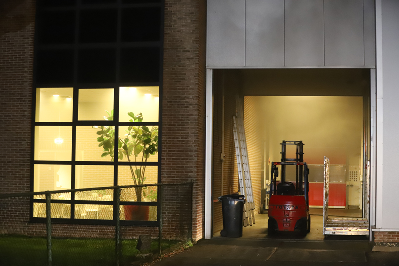 Nadat de brandweer zeker wist dat het vuur was gedoofd konden zij over gaan op het ventileren van de loods.
