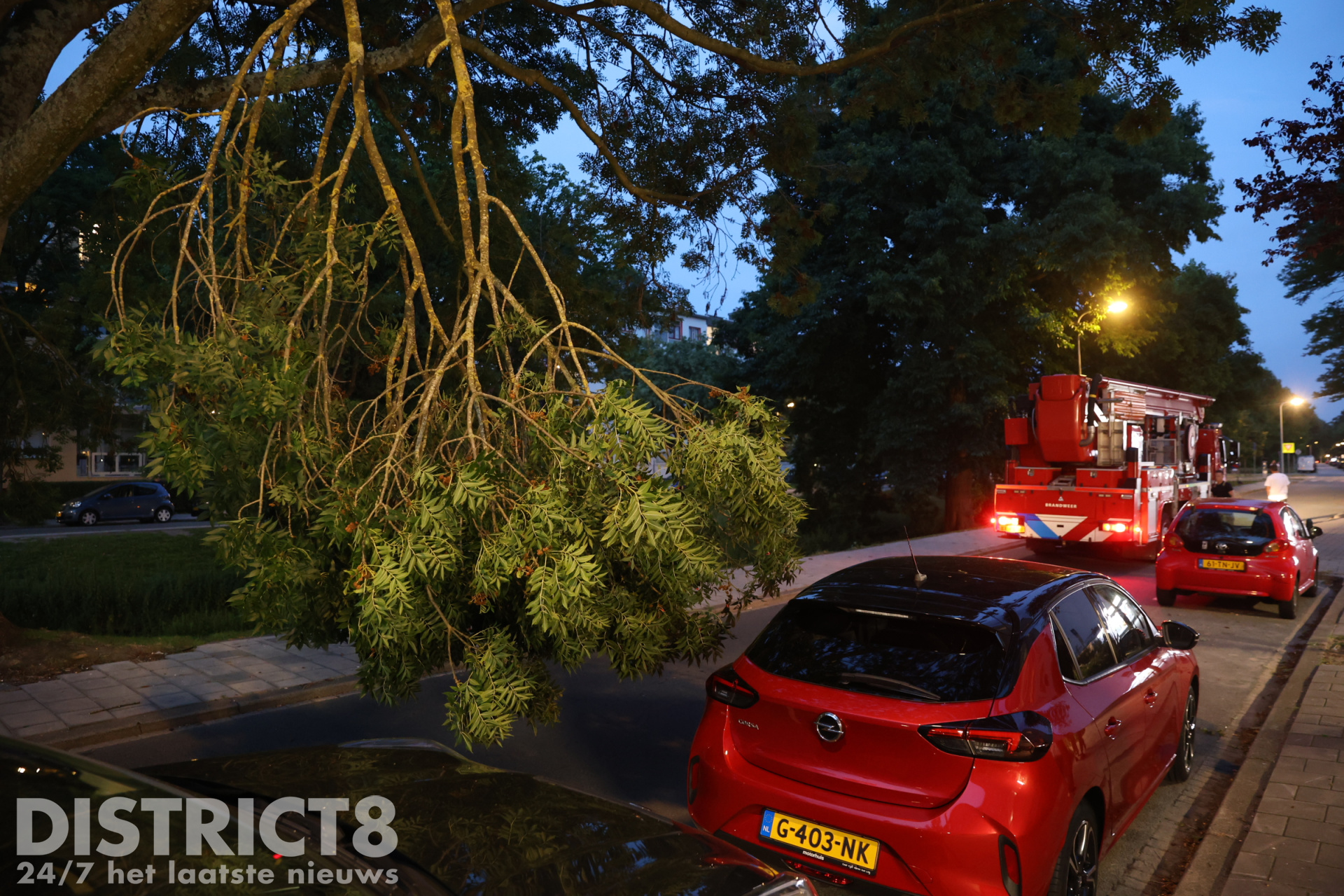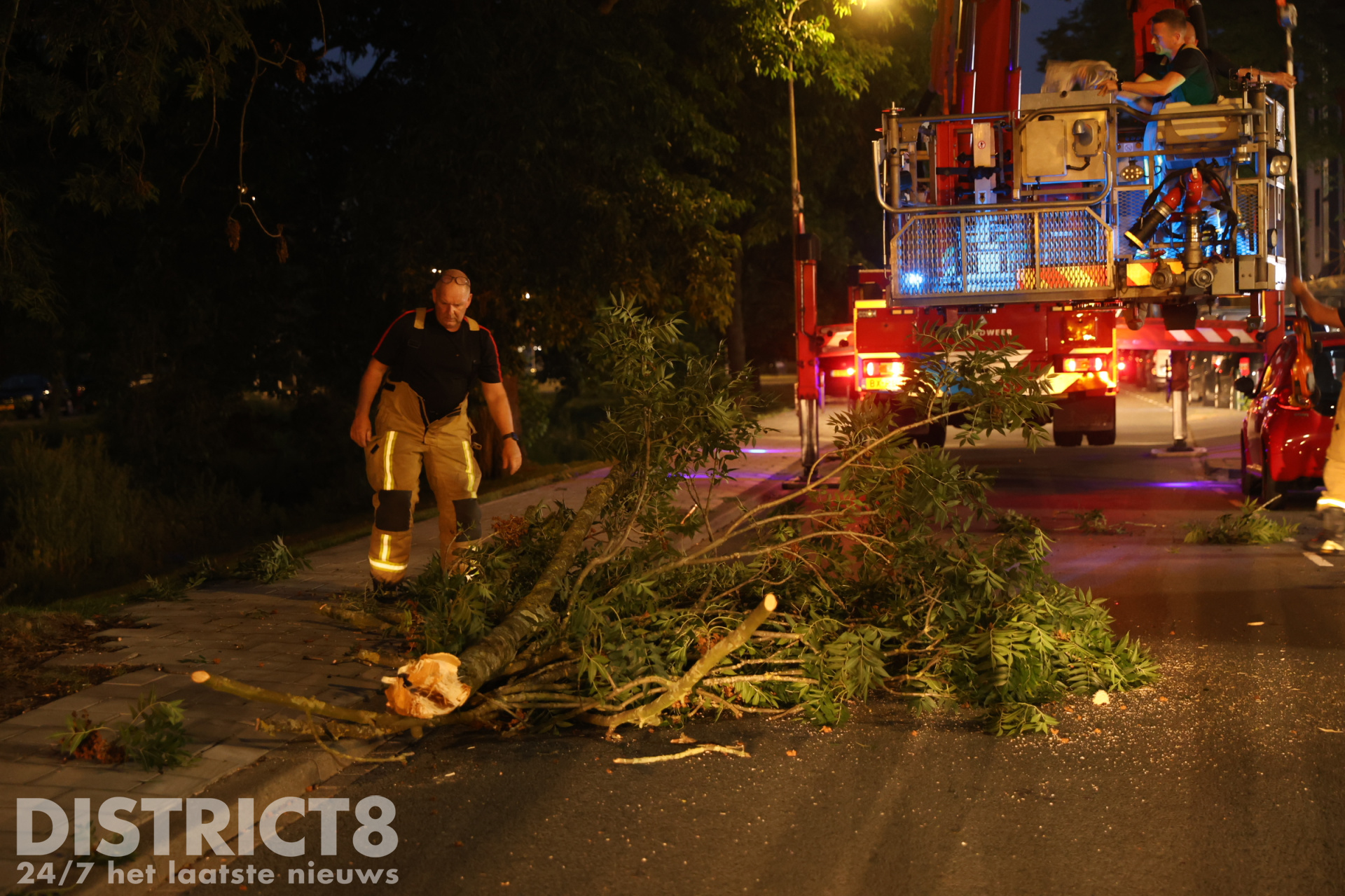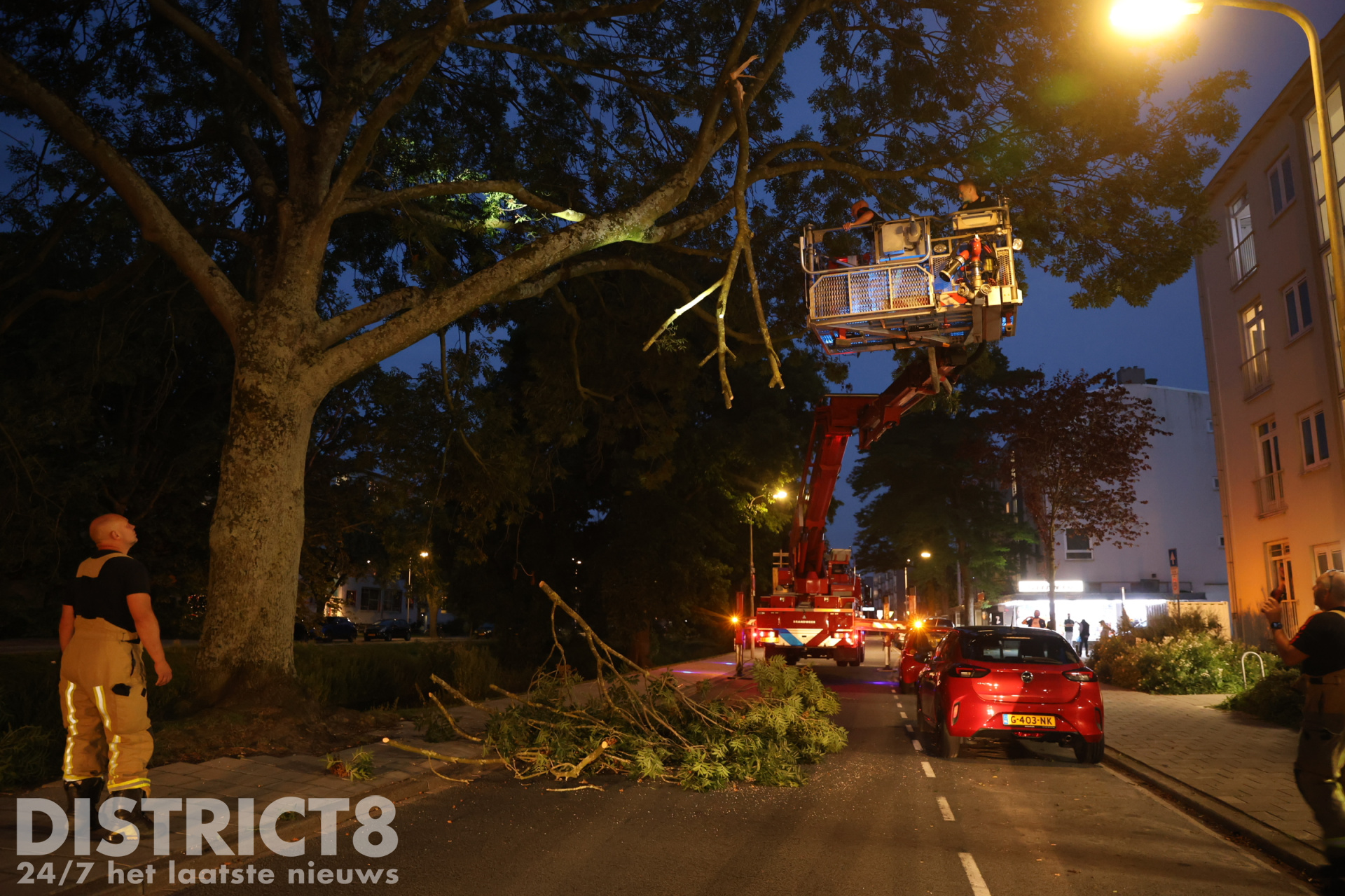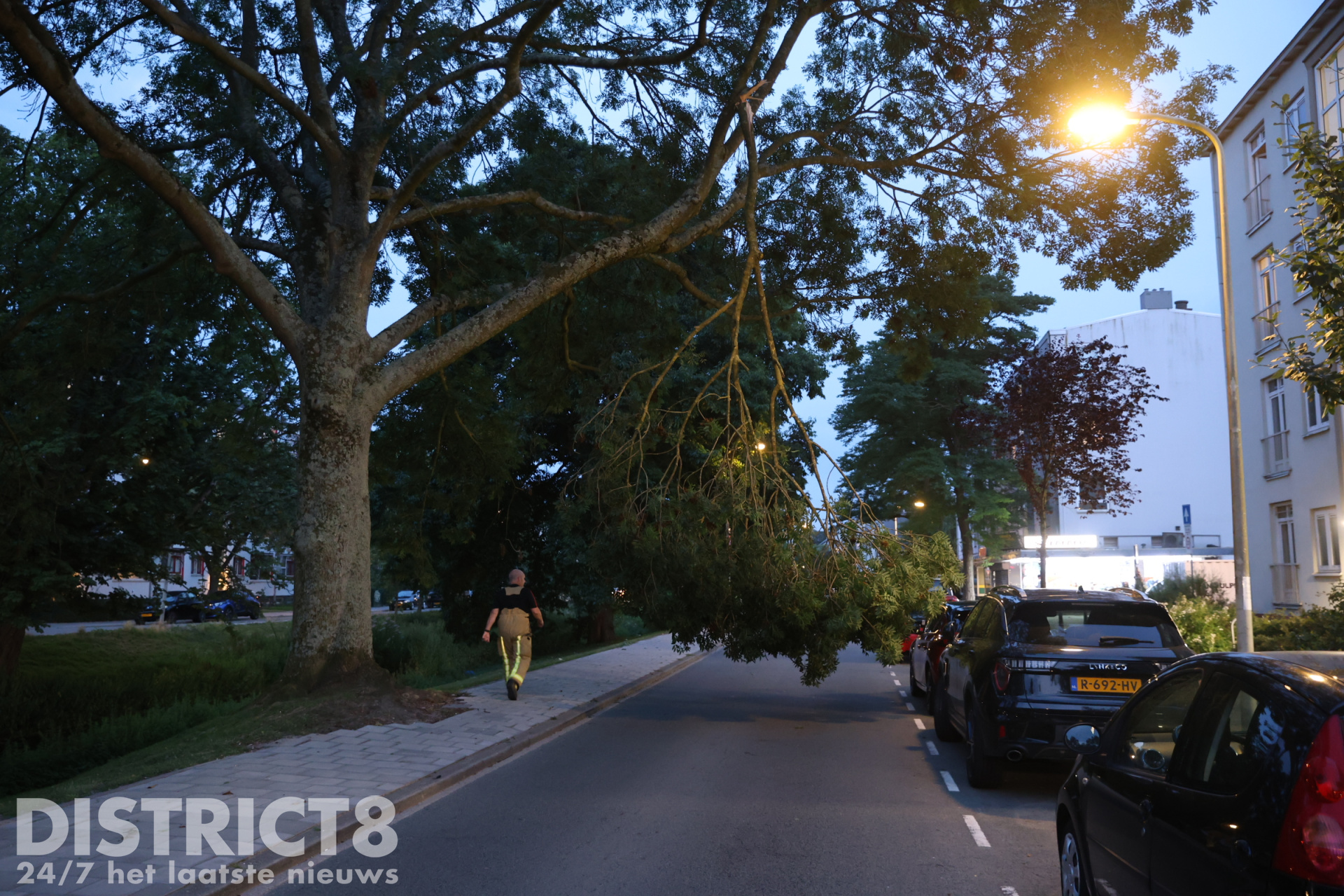 Den Haag – Door een half afgebroken tak was zaterdagavond 19 juli het verkeer enige tijd gestremd op de Maartensdijklaan in Den Haag. De brandweer moest eraan te pas komen om de tak te verwijderen.