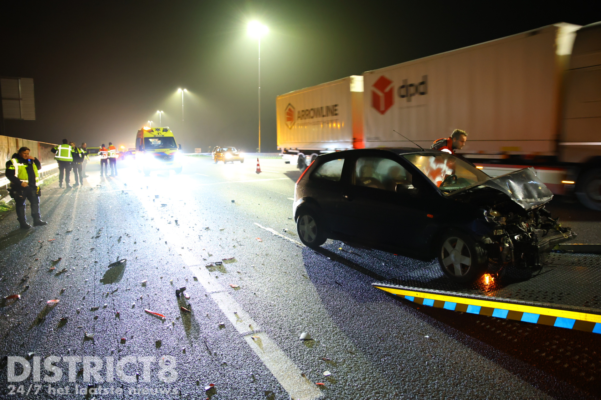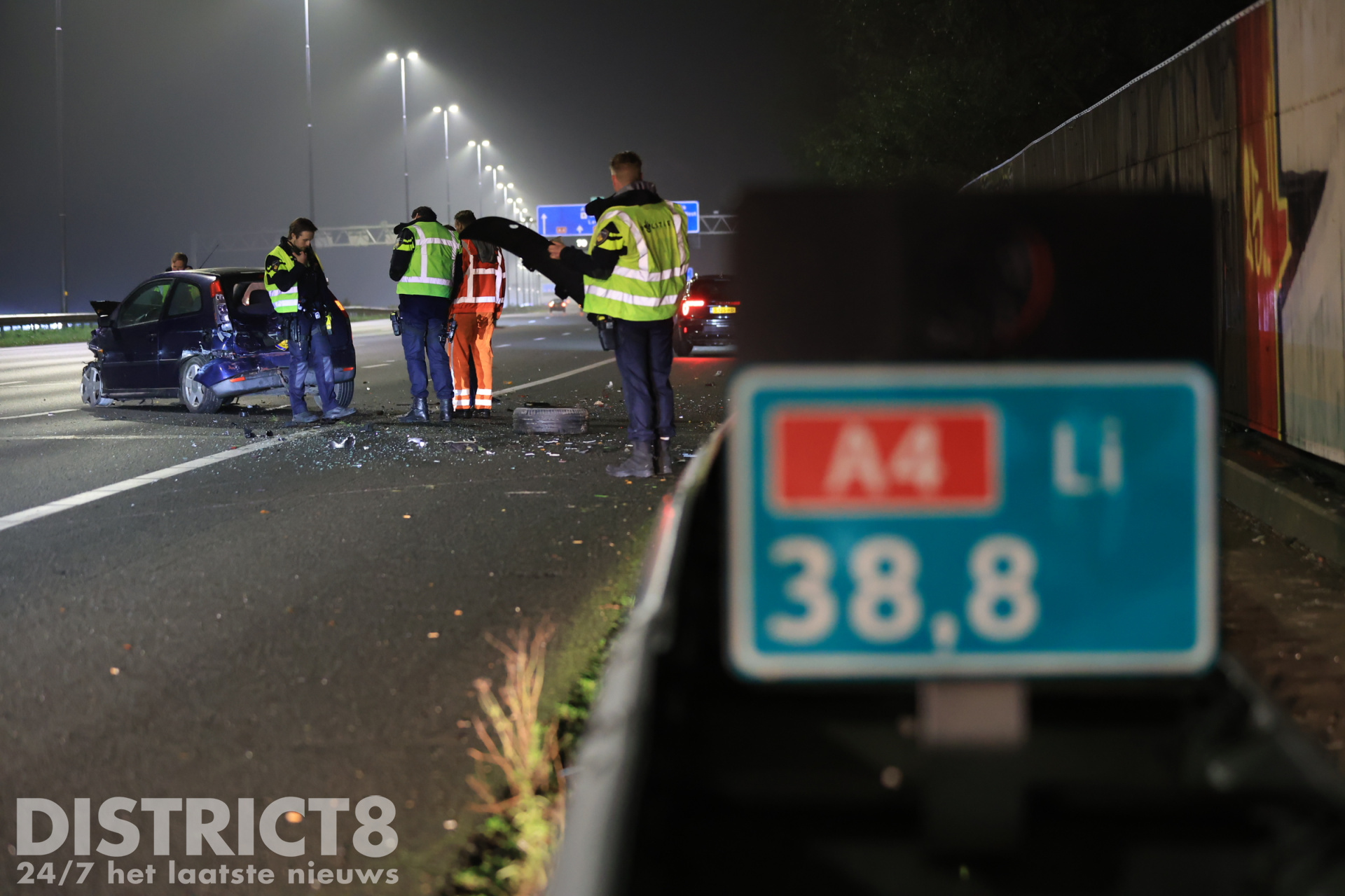Leidschendam – Op de A4 ter hoogte van Leidschendam in de richting van Amsterdam is een personenauto in de nacht van donderdag 20 november op vrijdag 21 november tegen een vangrail aangekomen na een uitwijkmanoeuvre.