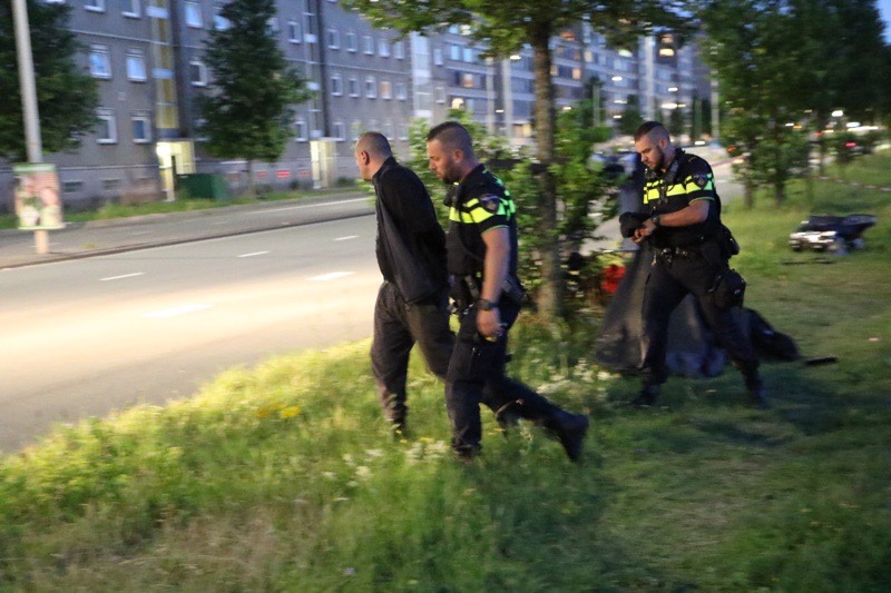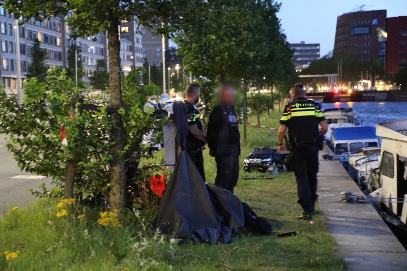 Langs de Neherkade bleek een boot in brand gestoken te zijn.