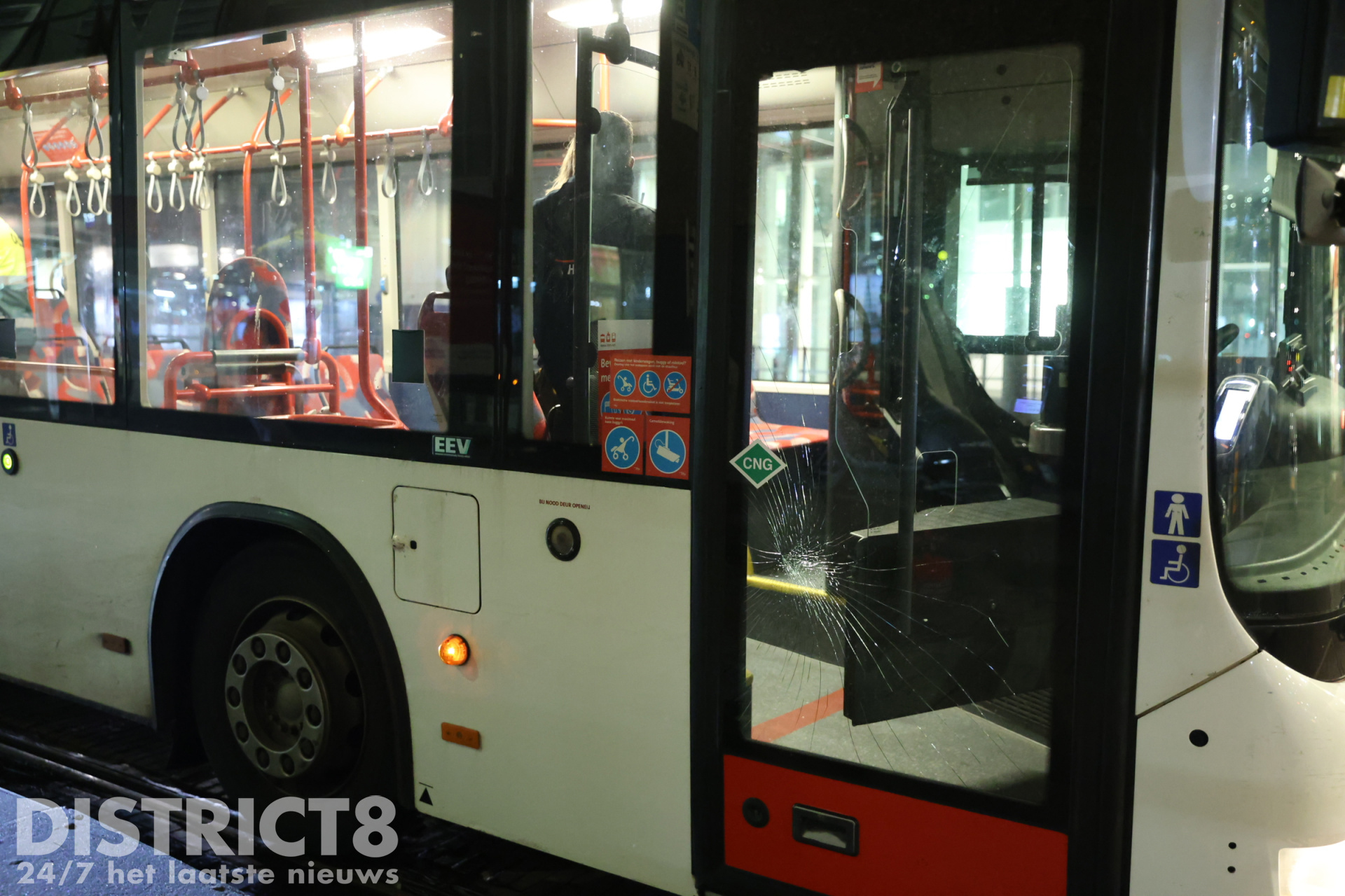 De man trapte om nog onbekende redenen tegen de deur van de bus, waardoor het glas kapotging.