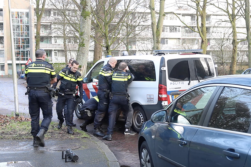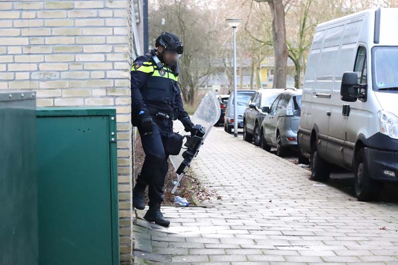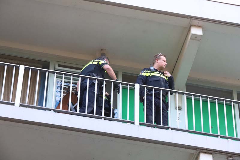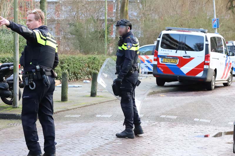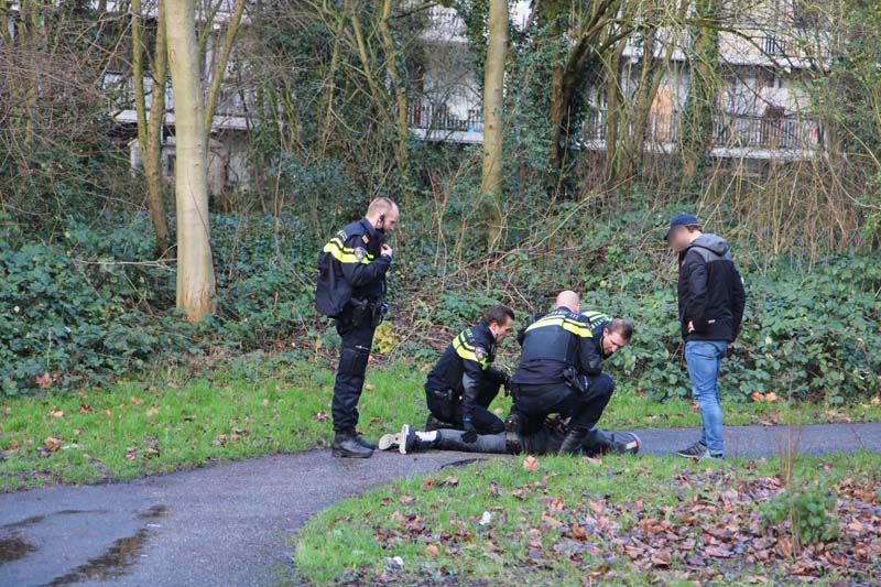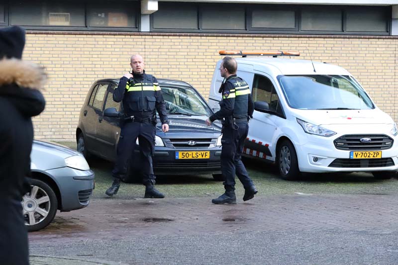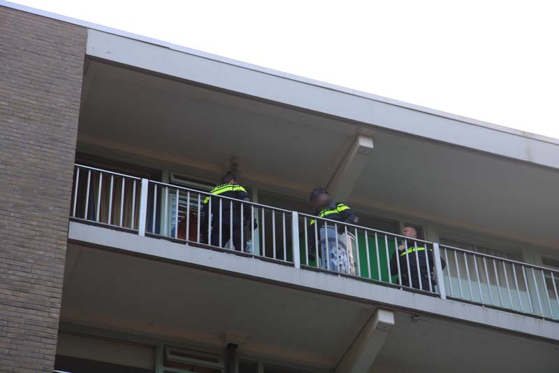Nadat de politie de melding ontving gingen er direct meerdere politie-eenheden ter plaatse. De melders konden de politie vertellen dat de man uit een woning kwam lopen op de Bachsingel.